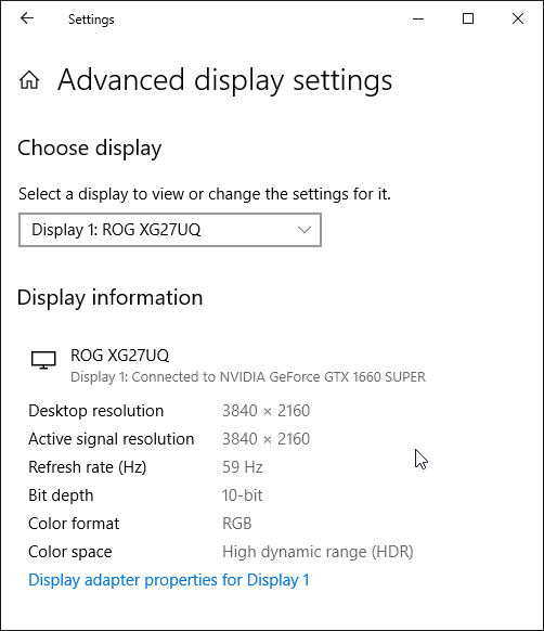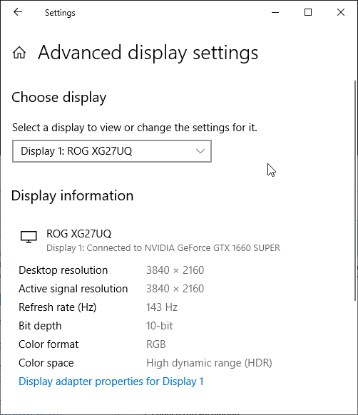 При подключении к компьютеру по DisplayPort поддерживалось разрешение до 3840×2160 при 144 Гц кадровой частоты на вход, и вывод изображения на экран также осуществлялся с этой частотой. В случае HDMI — до 3840×2160 при 60 Гц, а максимальную частоту обновления в 120 Гц можно получить в разрешении 2560×1440.