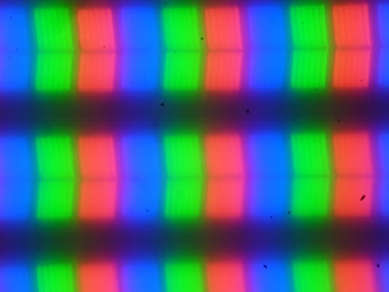 Изображение структуры пикселей из-за матовой поверхности чуть размыто, но IPS распознать можно: