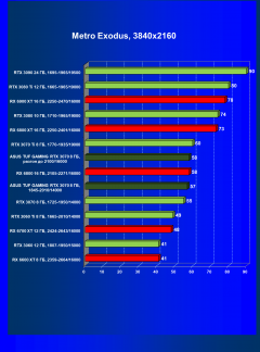 Картинка очевидна с RT: конечно же, более дорогой и мощный экземпляр из серии AMD проигрывает (собственно, оба соперника отстали). Тут уже каждый выбирает сам: если имеются средства на покупку подобных флагманов, то наверно уже есть смысл тщательно выбрать продукт, предназначенный для 4К и который, если и будет терять скорость при трассировке лучей,но не так убийственно.