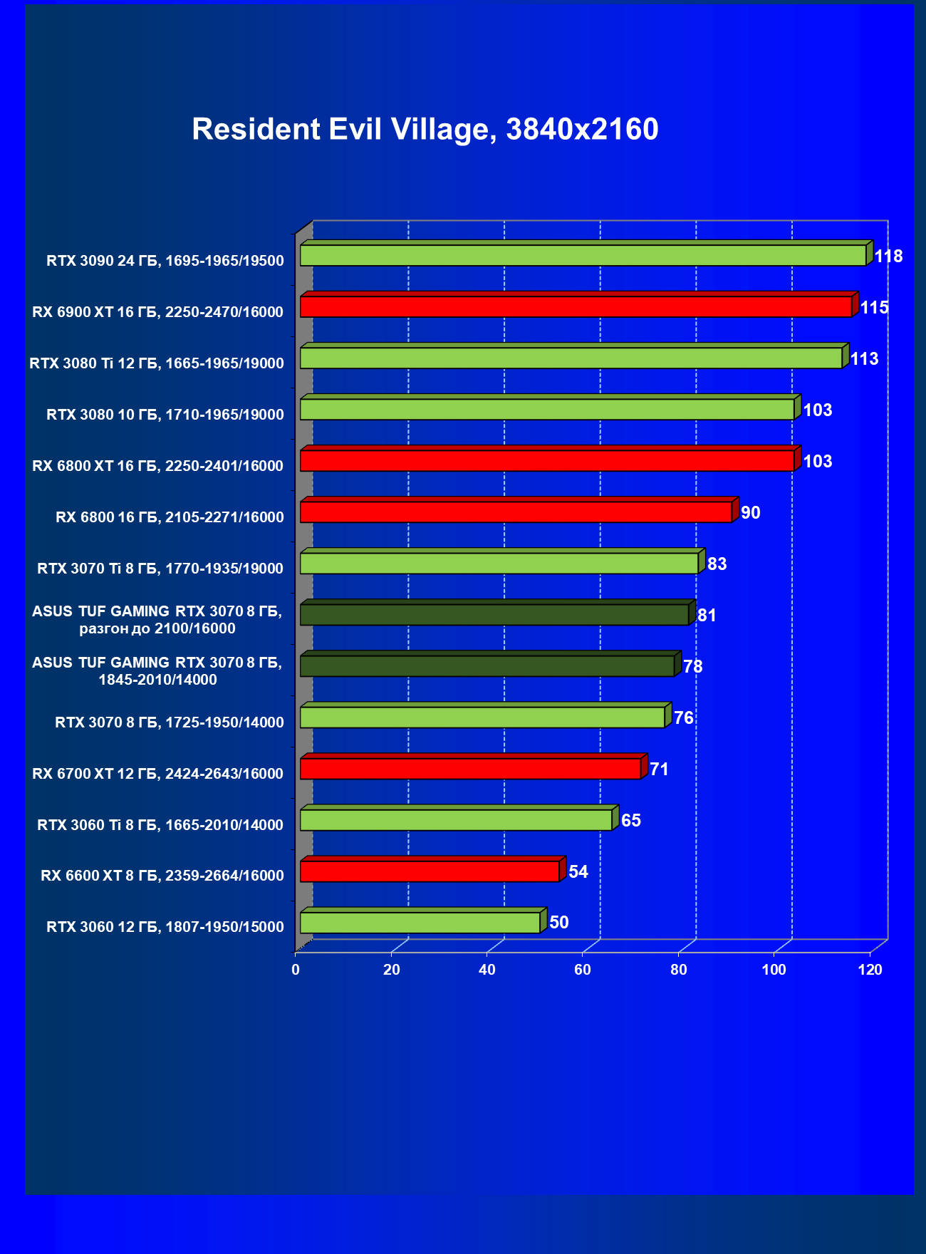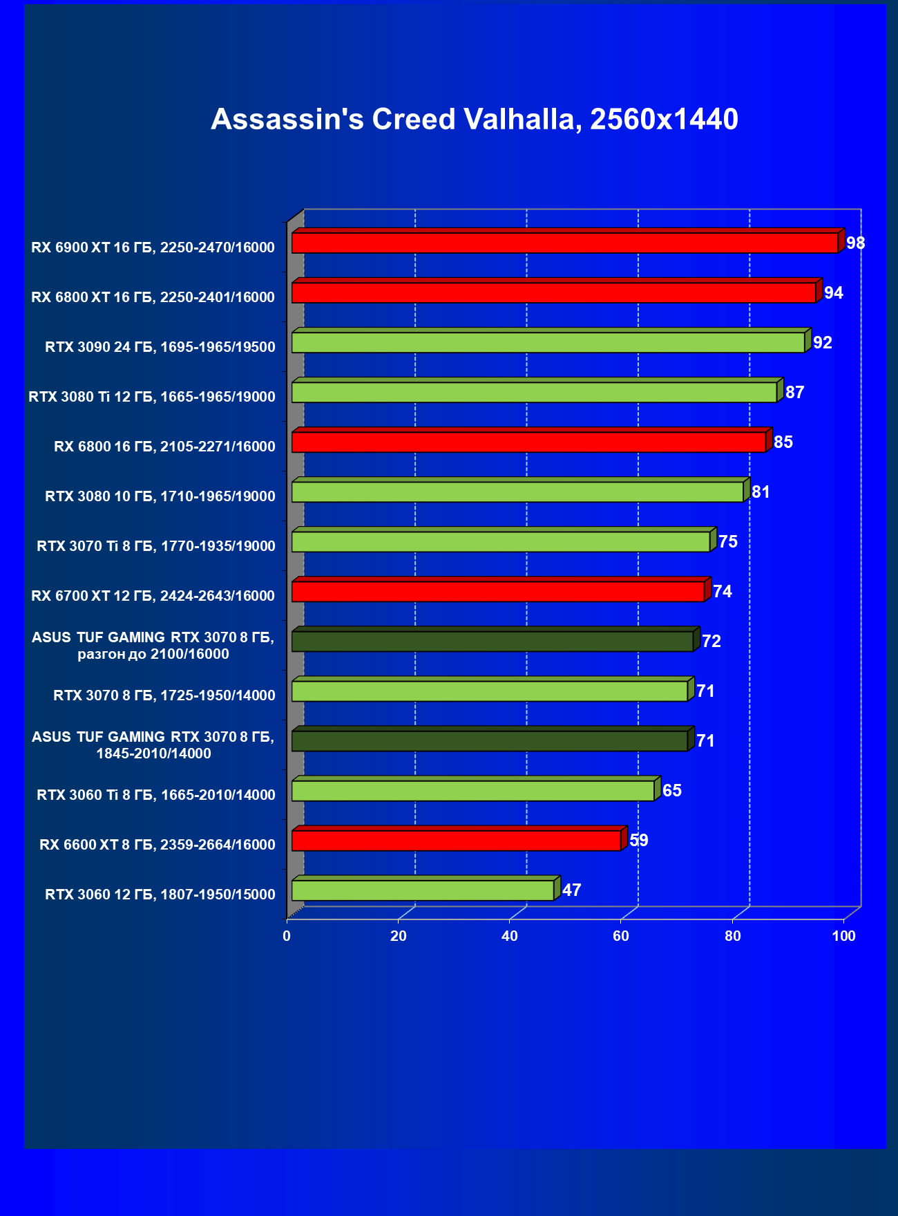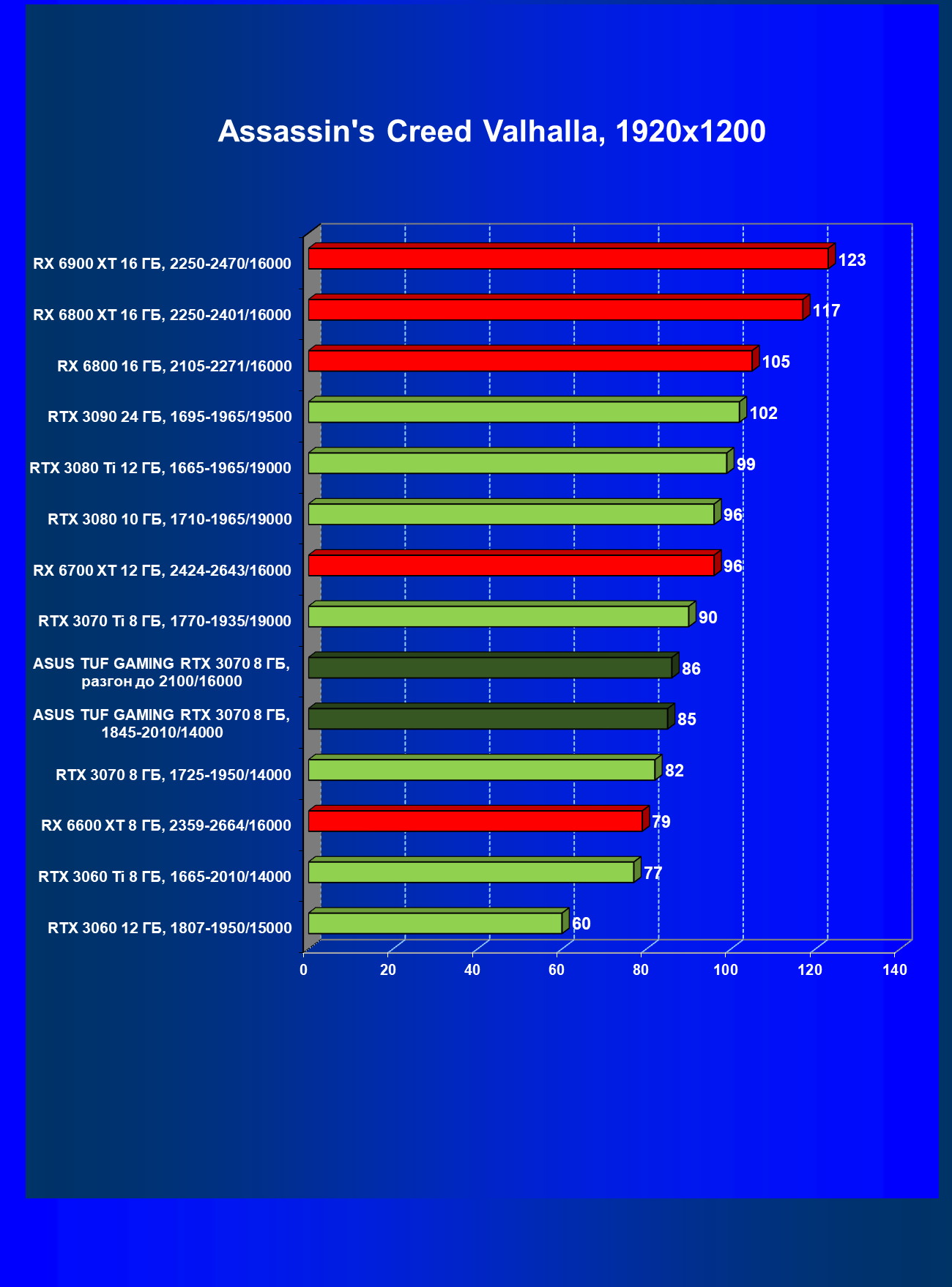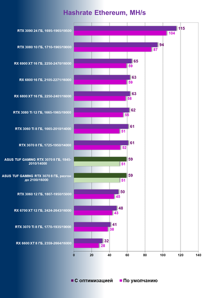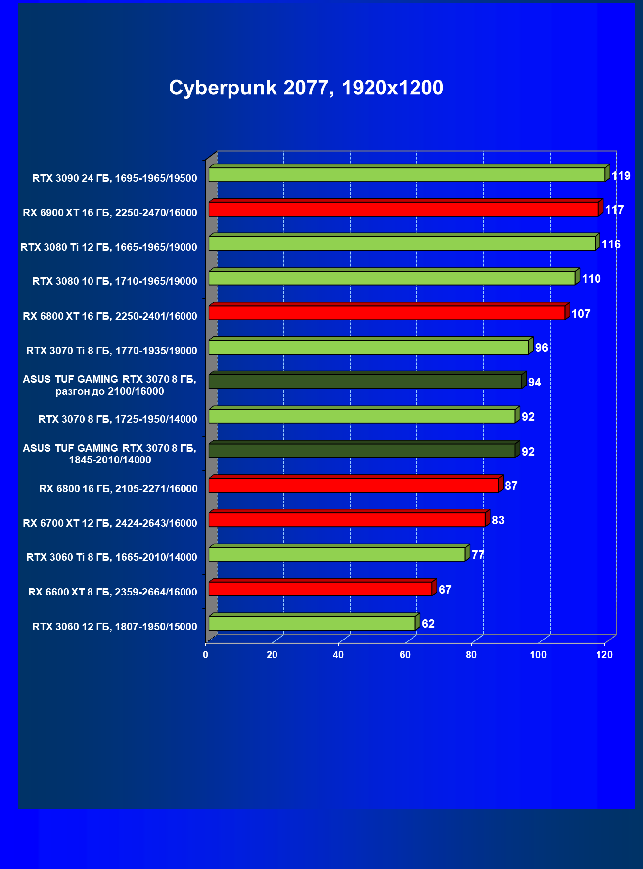 | 06 | Asus TUF Gaming RTX 3070 8 ГБ, разгон до 2100/16000 | 160 | 13 | 123 000 |