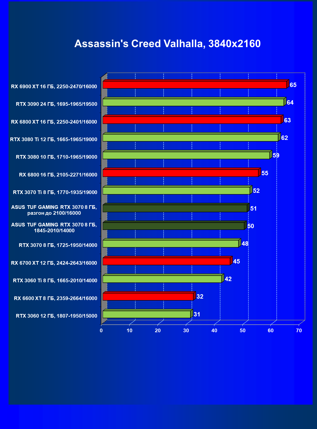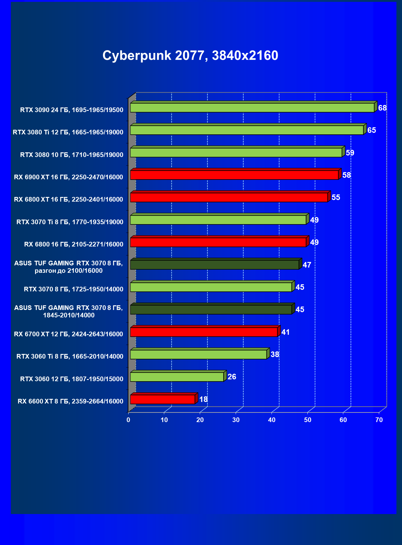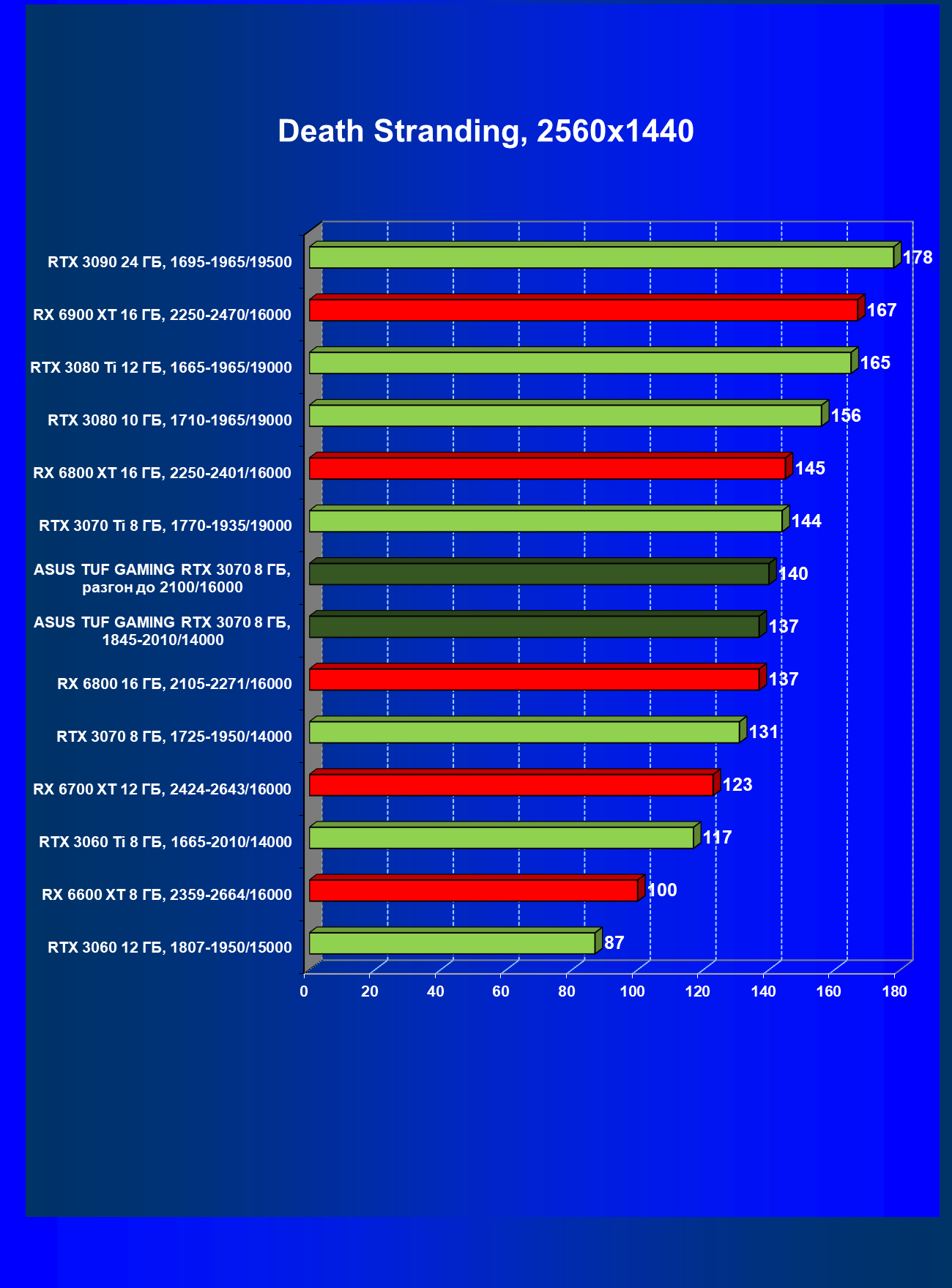| 05 | Asus TUF Gaming RTX 3070 8 ГБ, разгон до 2100/16000 | 13 | 160 | 123 000 |