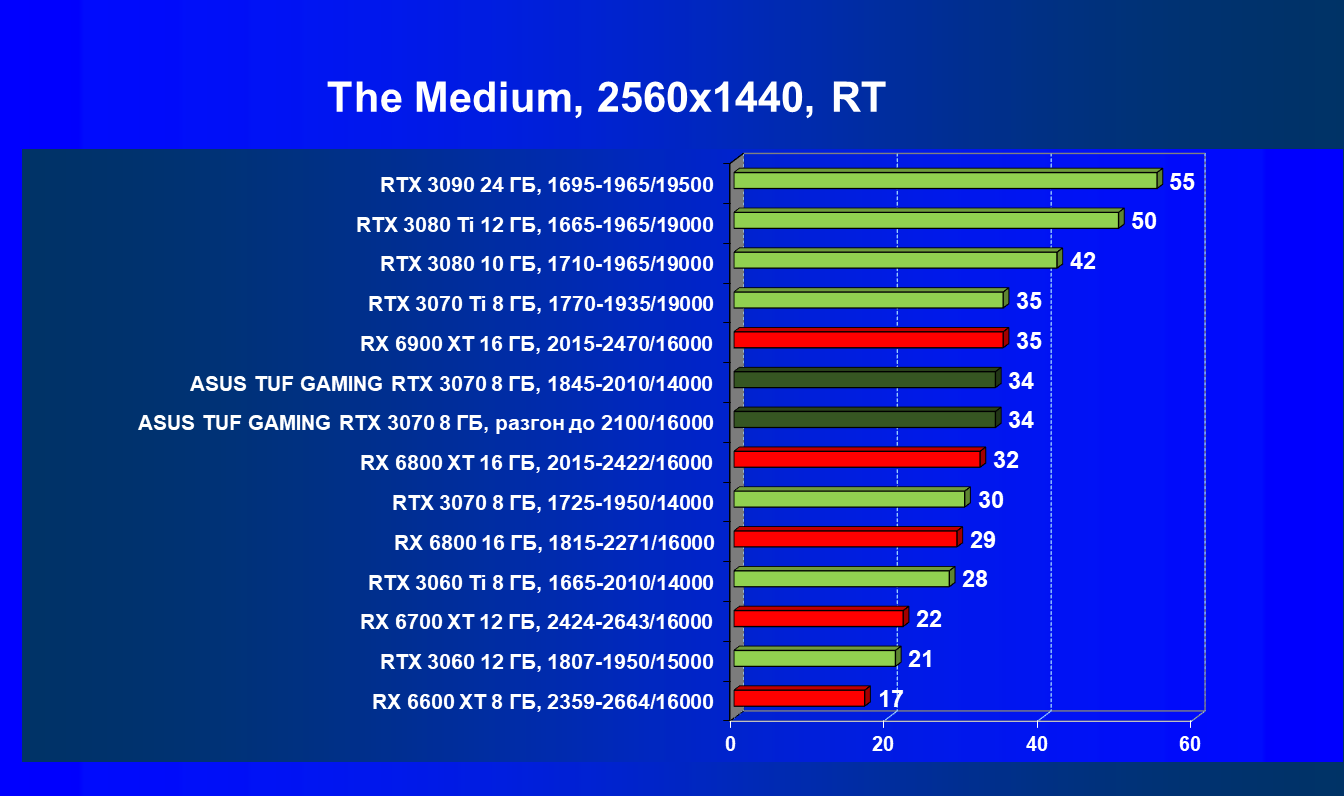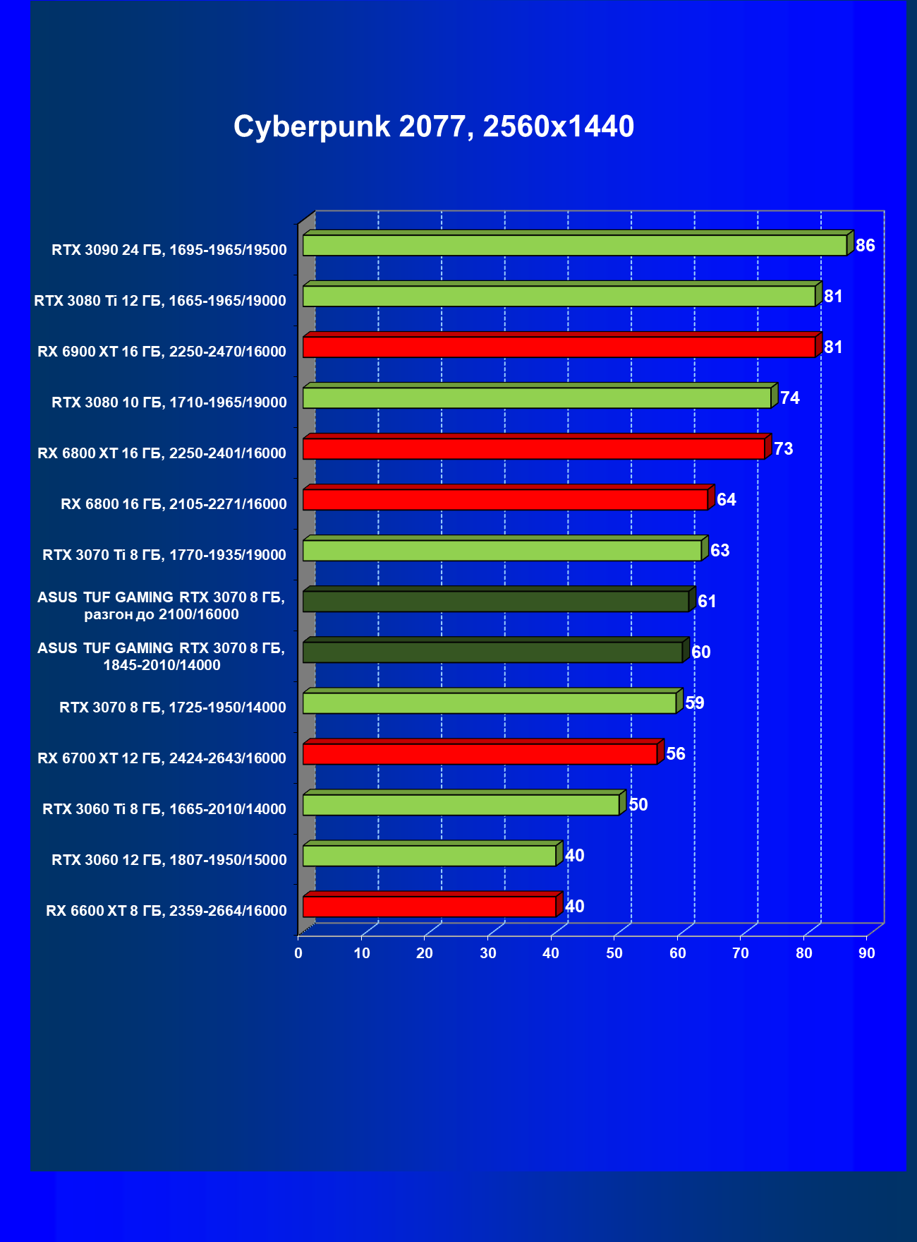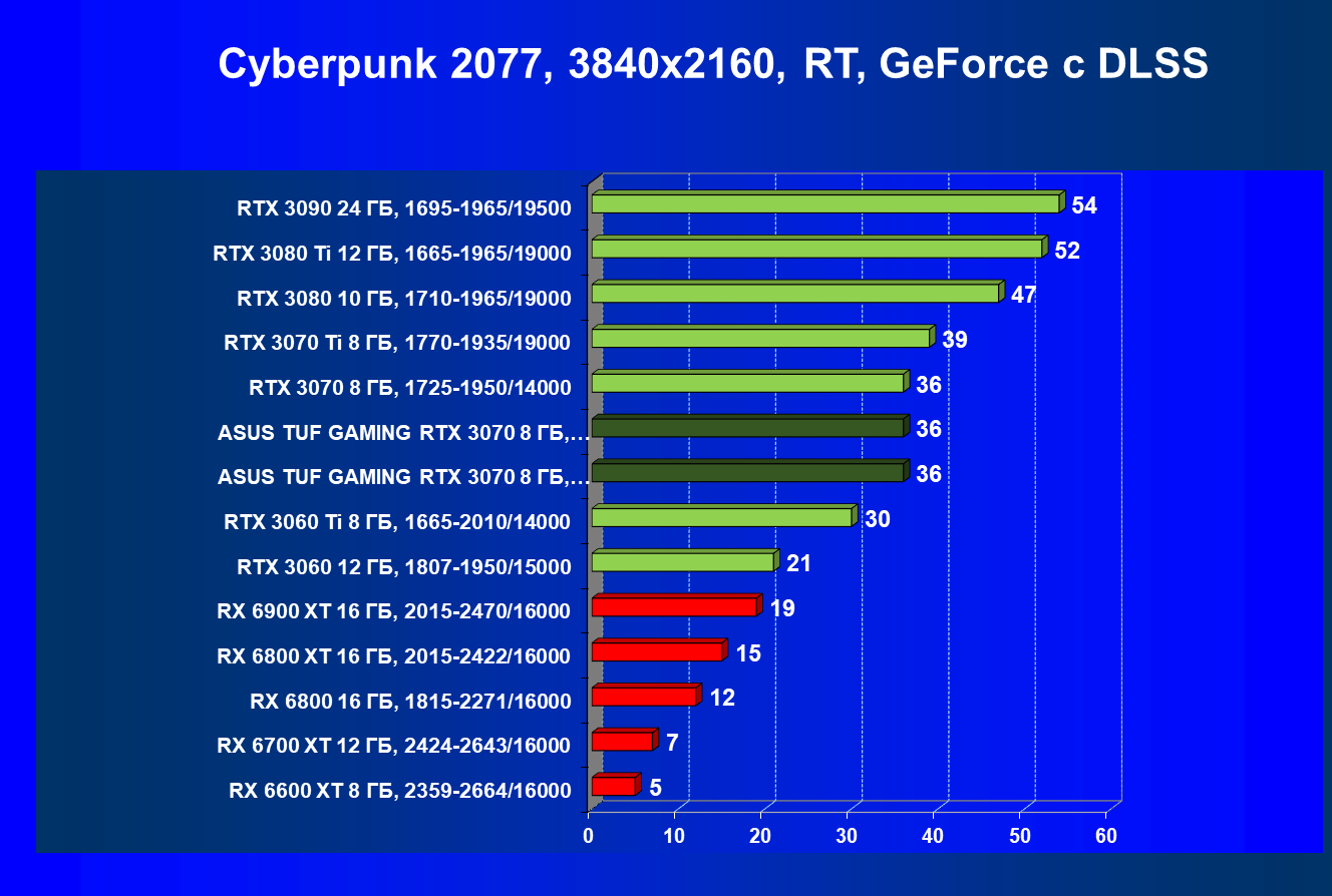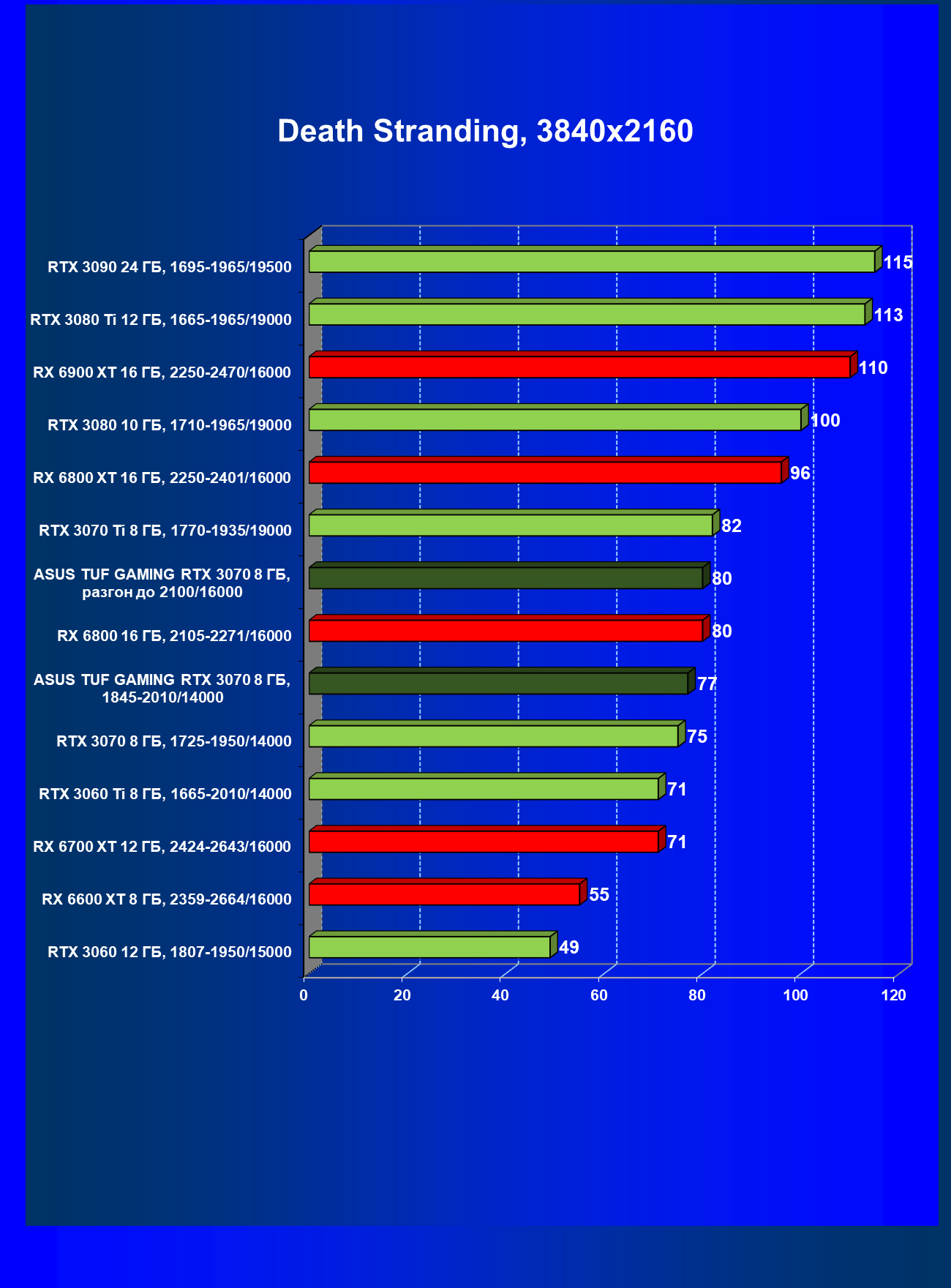 | 05 | Asus TUF Gaming RTX 3070 8 ГБ, разгон до 2100/16000 | 13 | 160 | 123 000 |