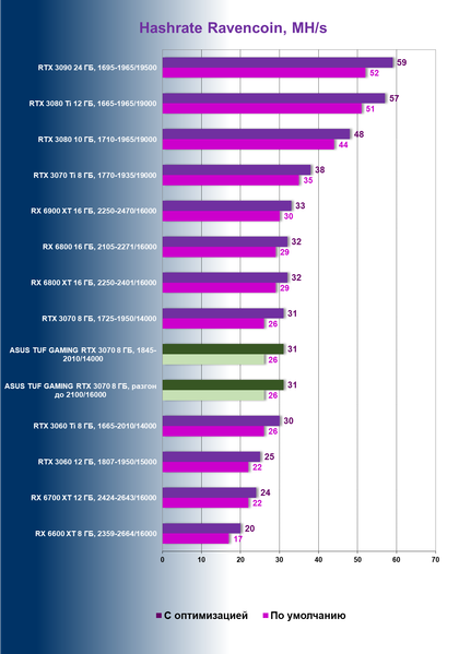 | 08 | Asus TUF Gaming RTX 3070 8 ГБ, разгон до 2100/16000 | 150 | 12 | 123 000 |