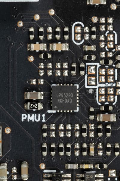 Также имеется еще один контроллер uS5650Q (uPI Semiconductor), однако он уже следит за напряжением и температурой на всей карте.