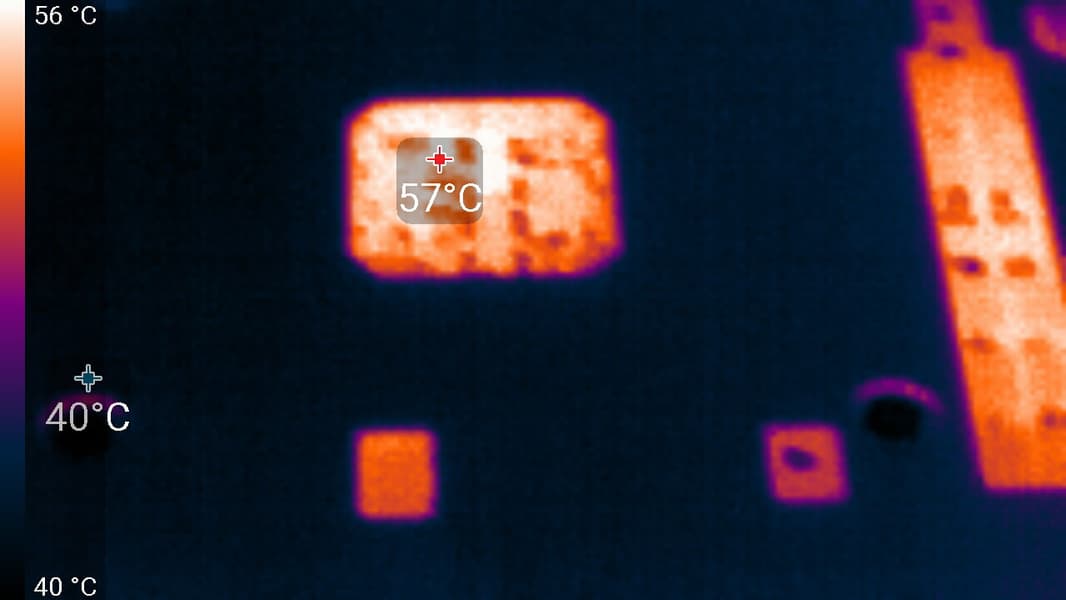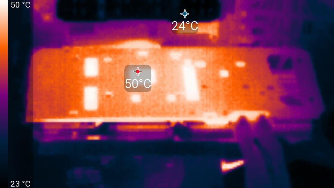 В режиме максимальной нагрузки в 3D температура в BIOS 1 (Performance) достигала 64 °C. Вентиляторы при этом раскручивались до 1790 оборотов в минуту, шум вырастал до 30,7 дБА. Потребление — до 254 Вт.