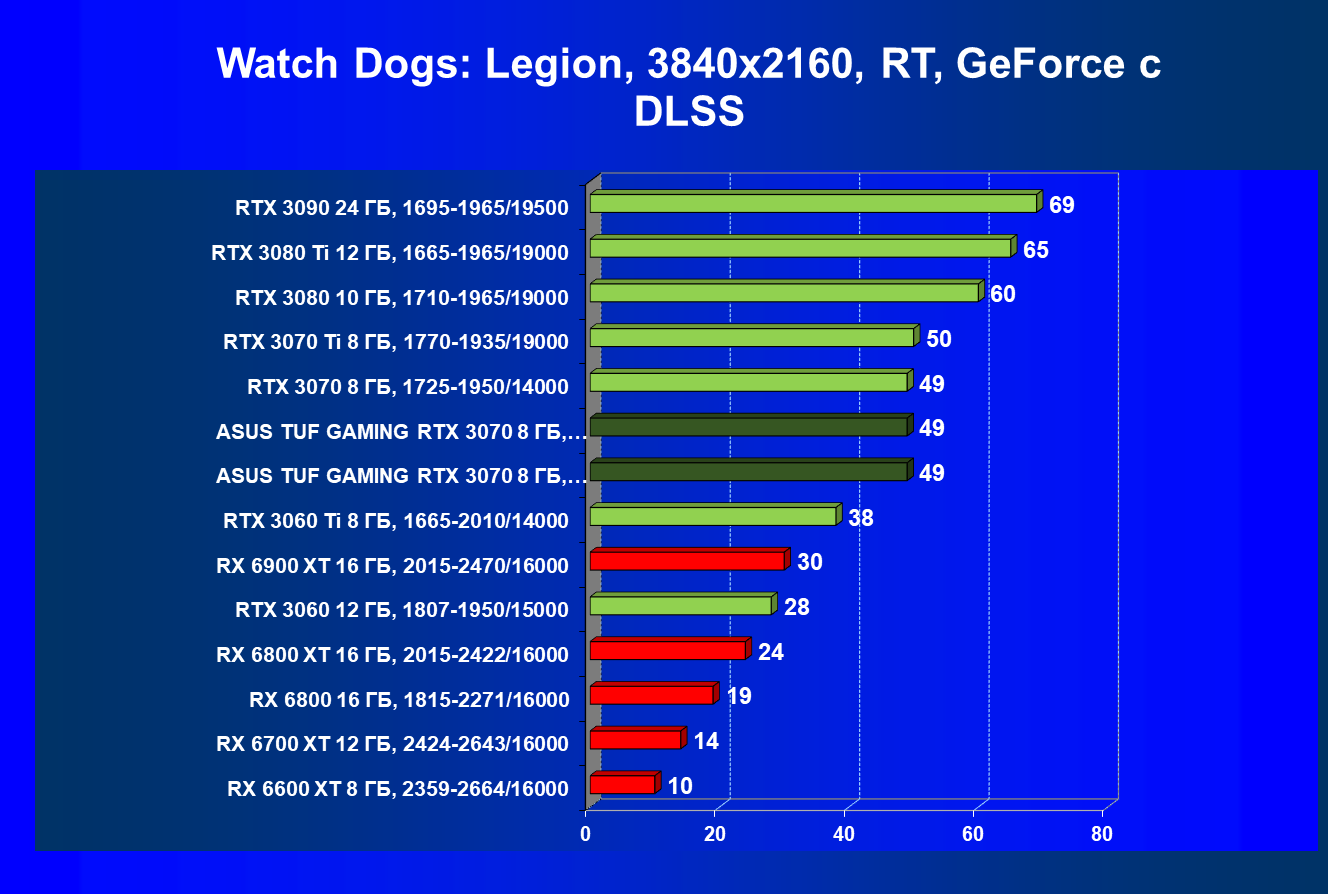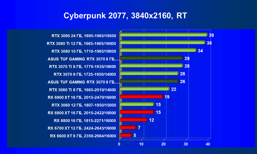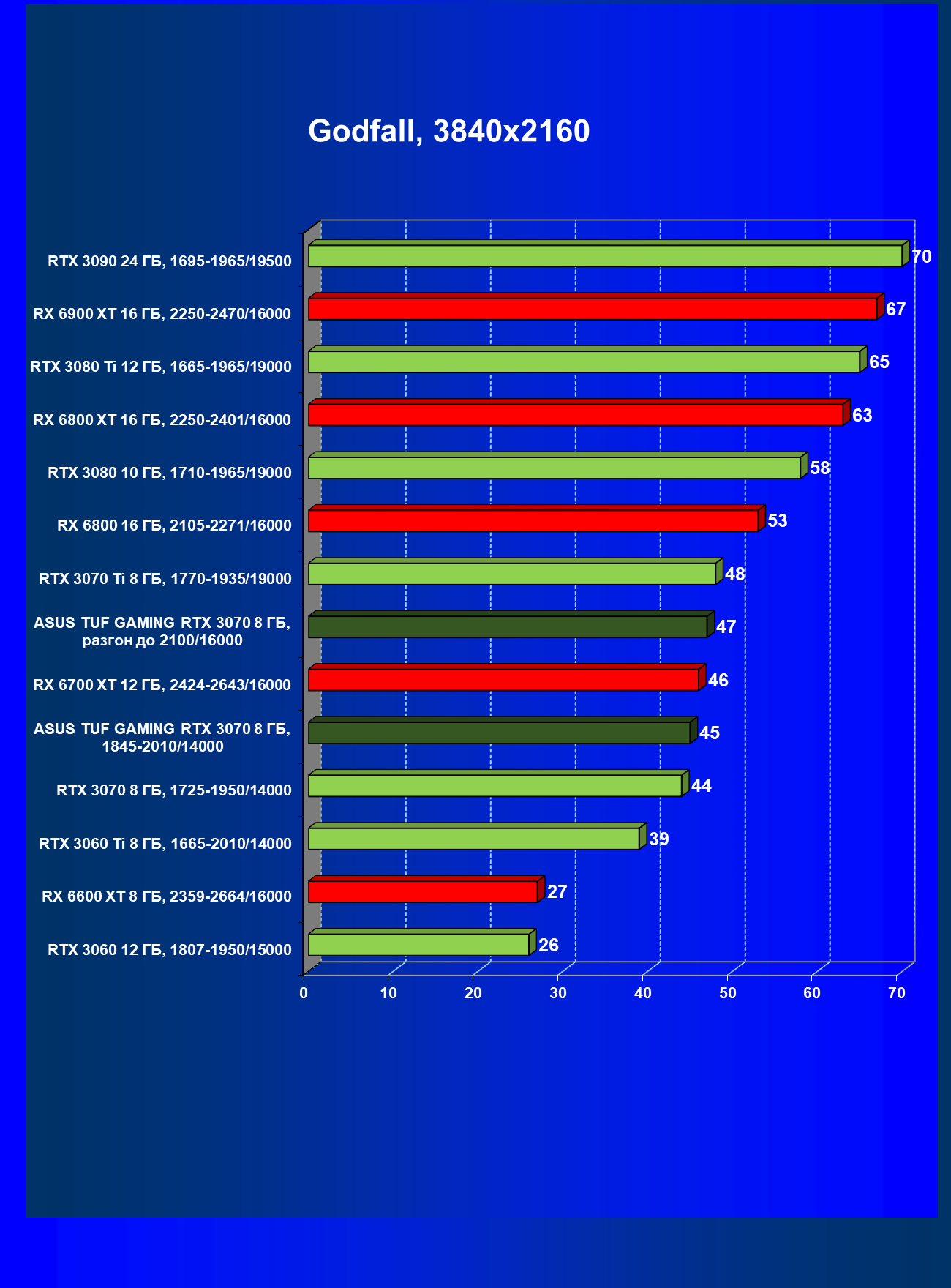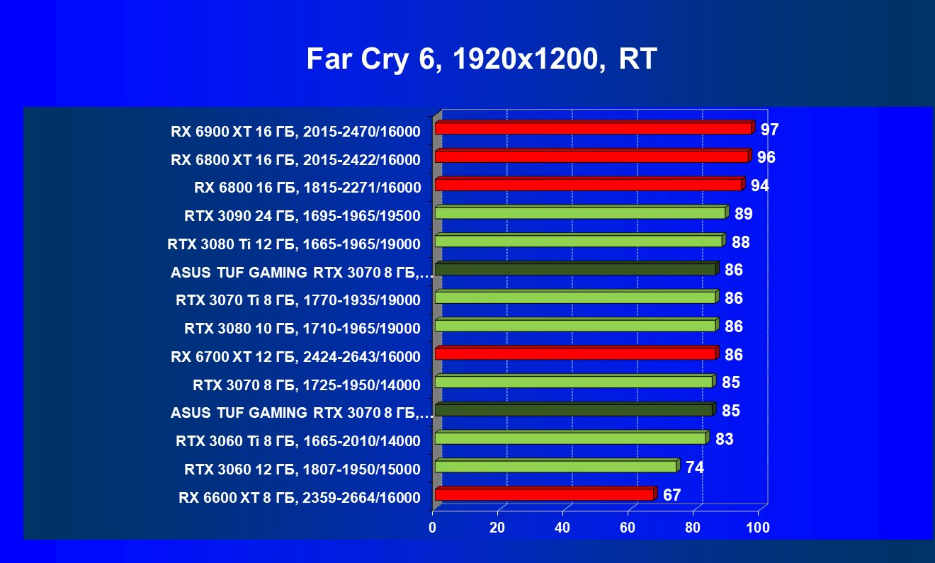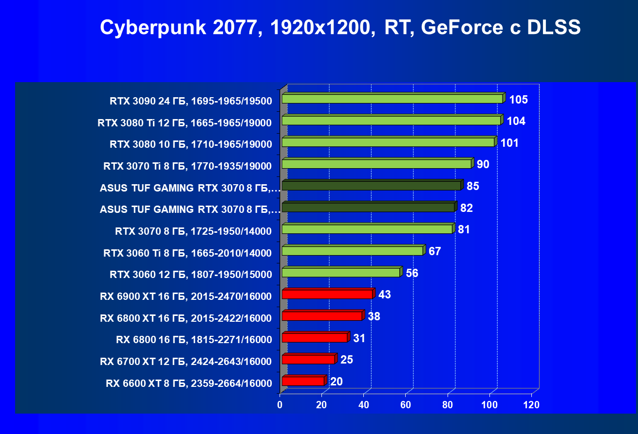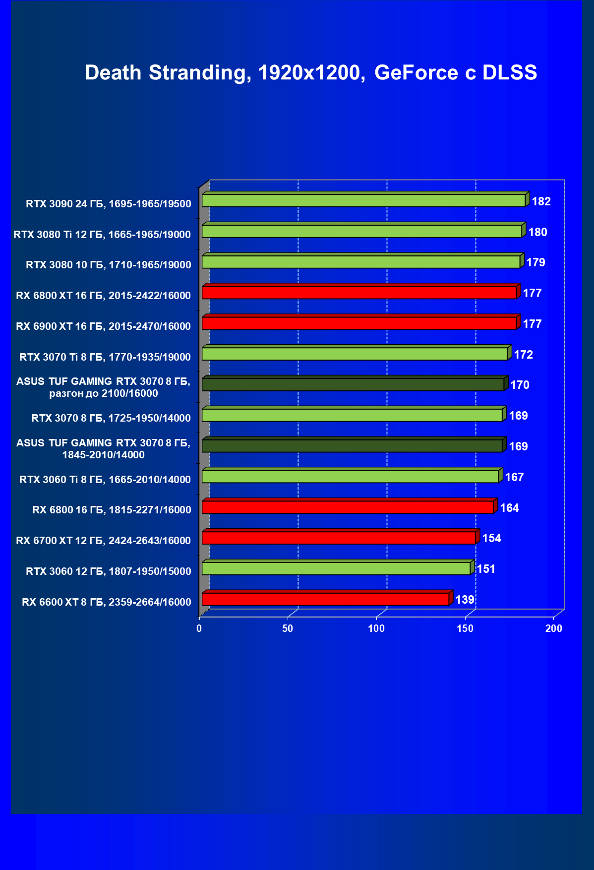 | 11 | Asus TUF Gaming RTX 3070 8 ГБ, 1845—2010/14000 | 12 | 150 | 123 000 |