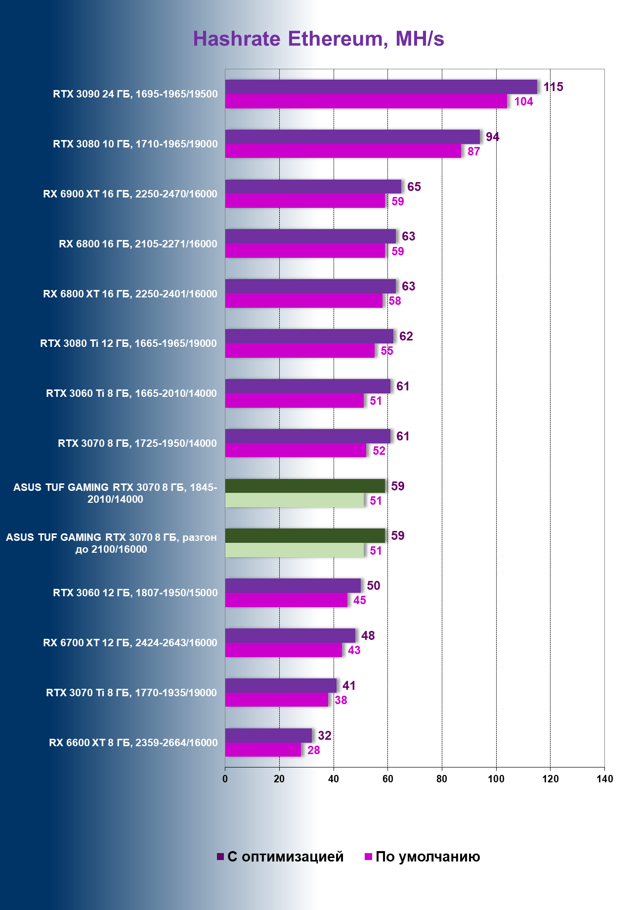 | 10 | Asus TUF Gaming RTX 3070 8 ГБ, разгон до 2100/16000 | 12 | 150 | 123 000 |