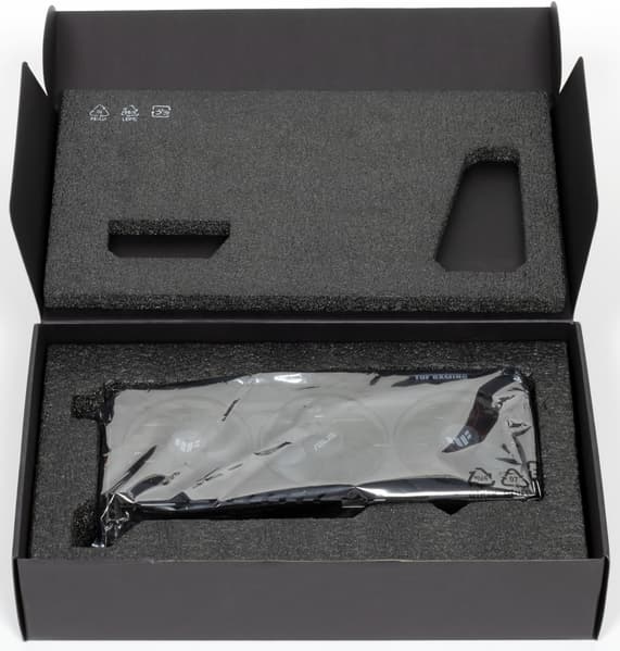 Комплект минимальный : сама карта, пара листовок — инструкций и фирменная карточка члена клуба TUF Gaming.
