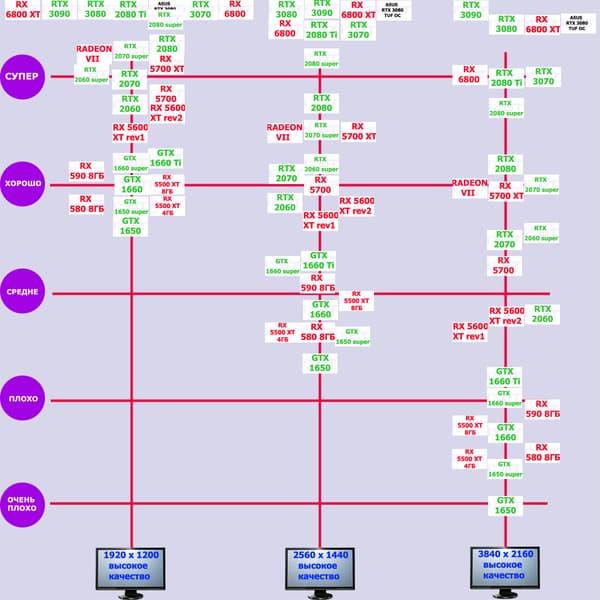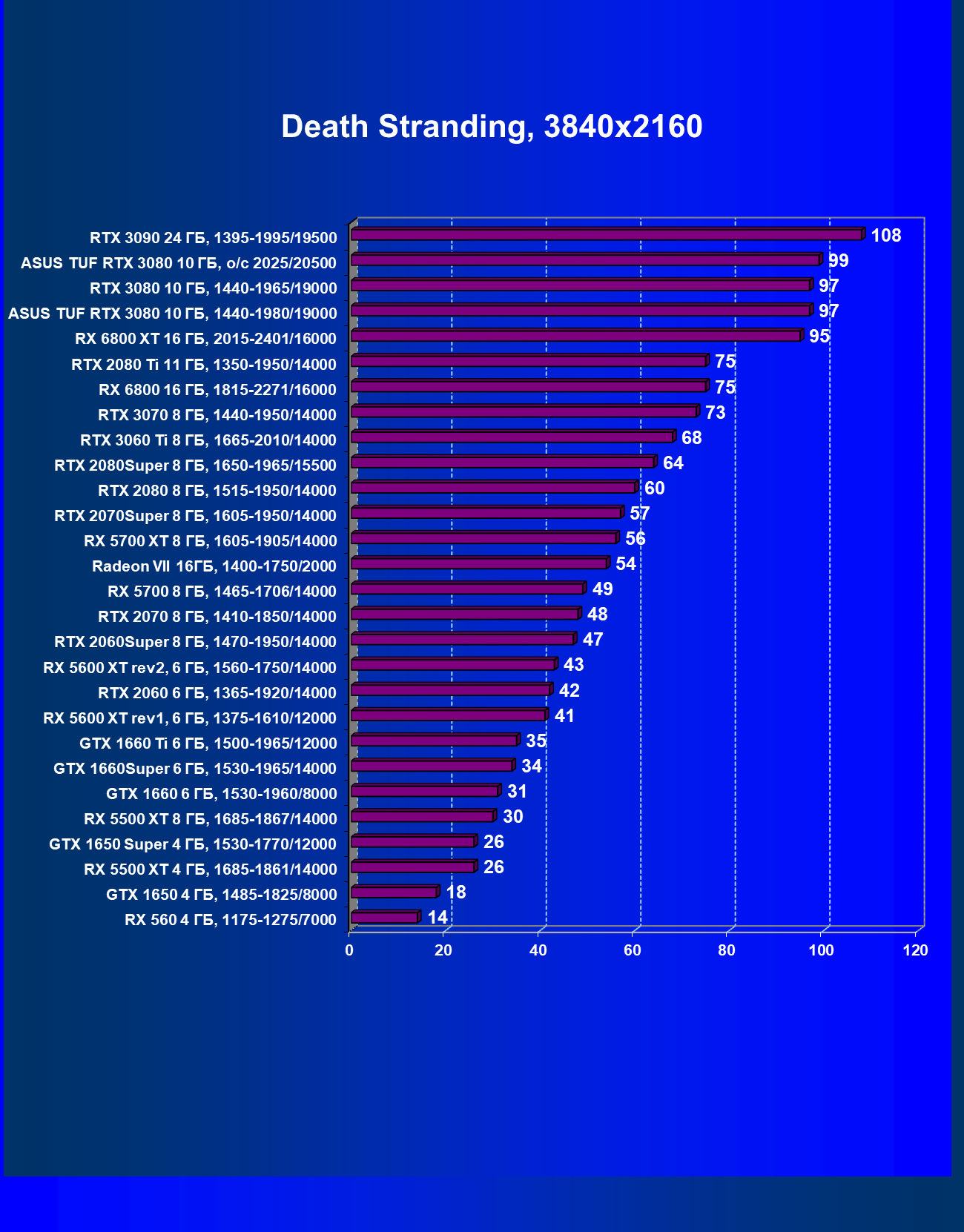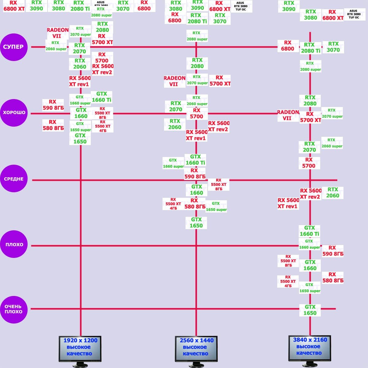 | 07 | Asus TUF RTX 3080 10 ГБ, 1440—1980/19000 | 23 | 234 | 99 000 |