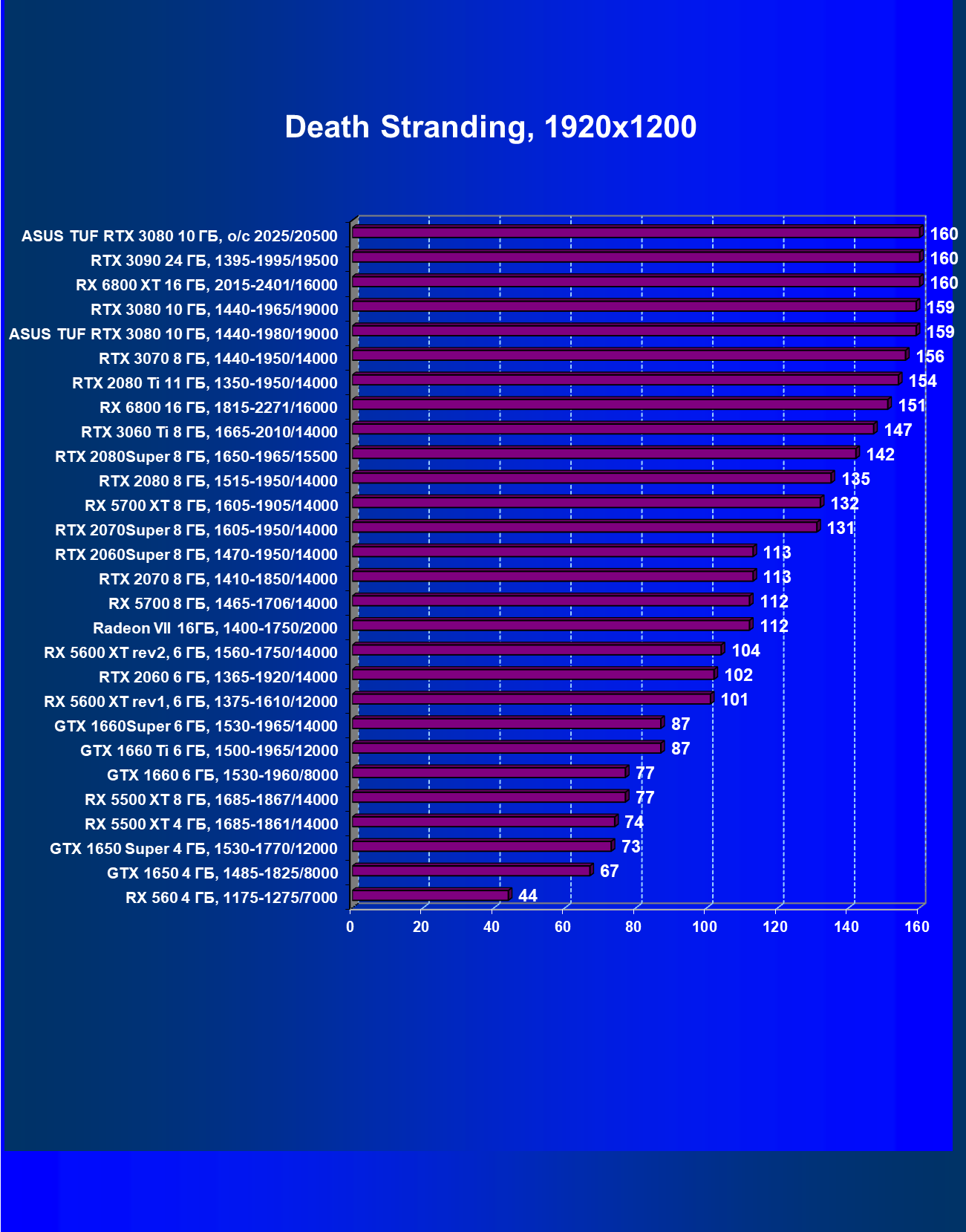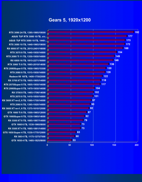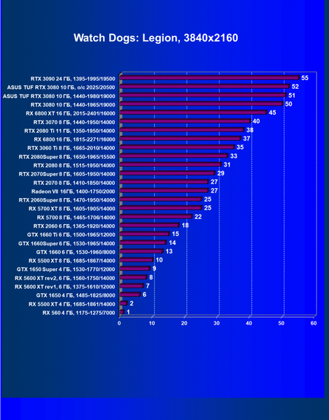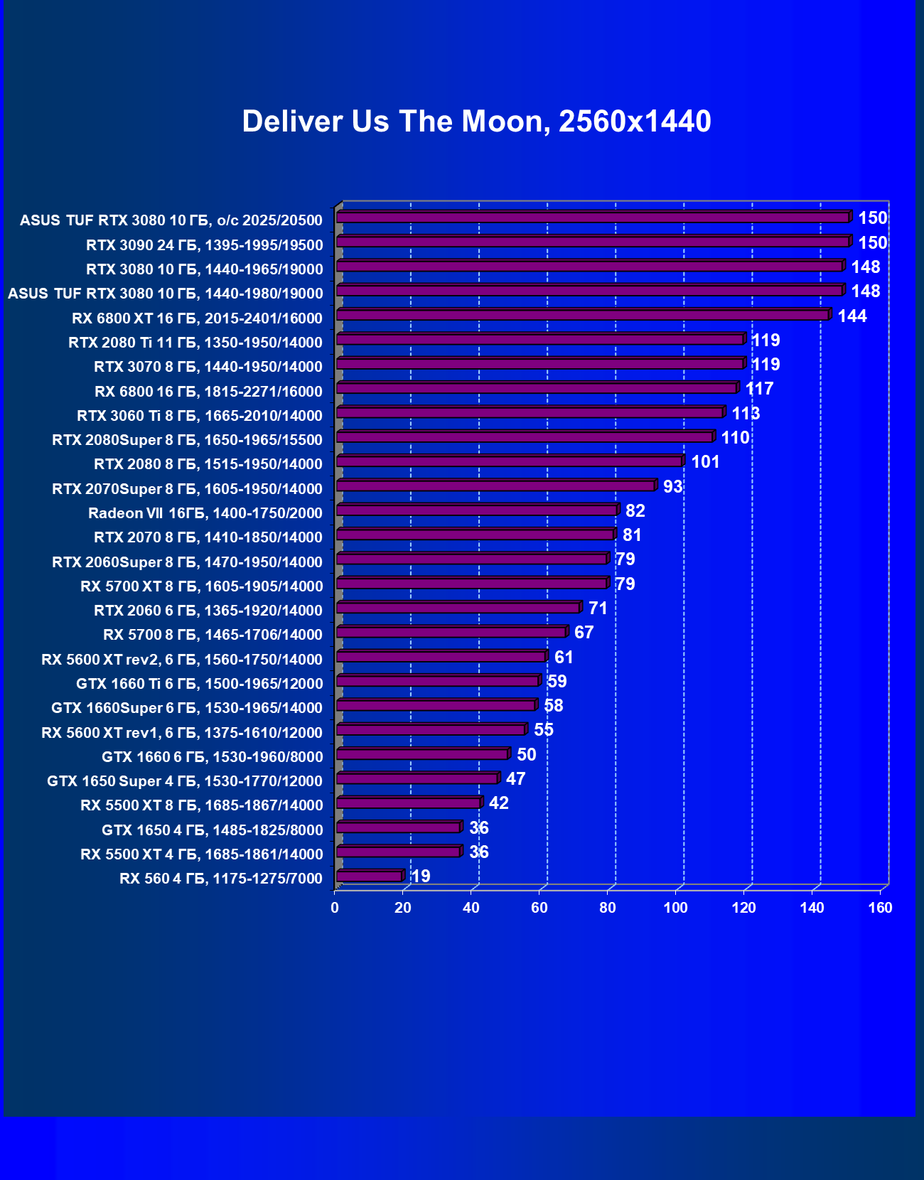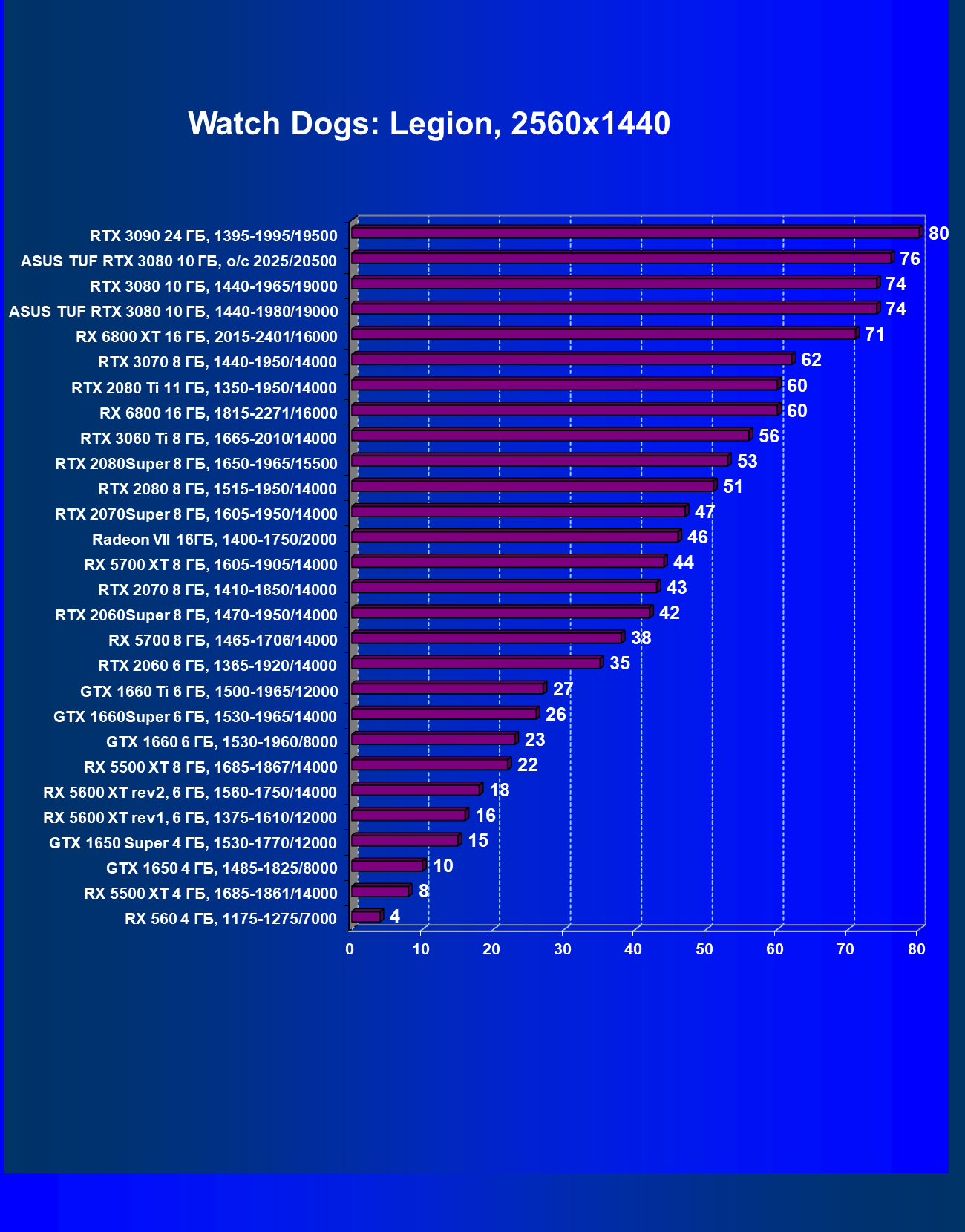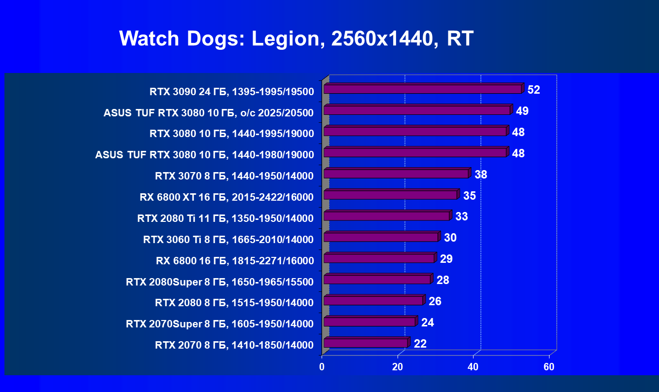 | 12 | Asus TUF RTX 3080 10 ГБ, 1440—1980/19000 | 178 | 1762 | 99 000 |