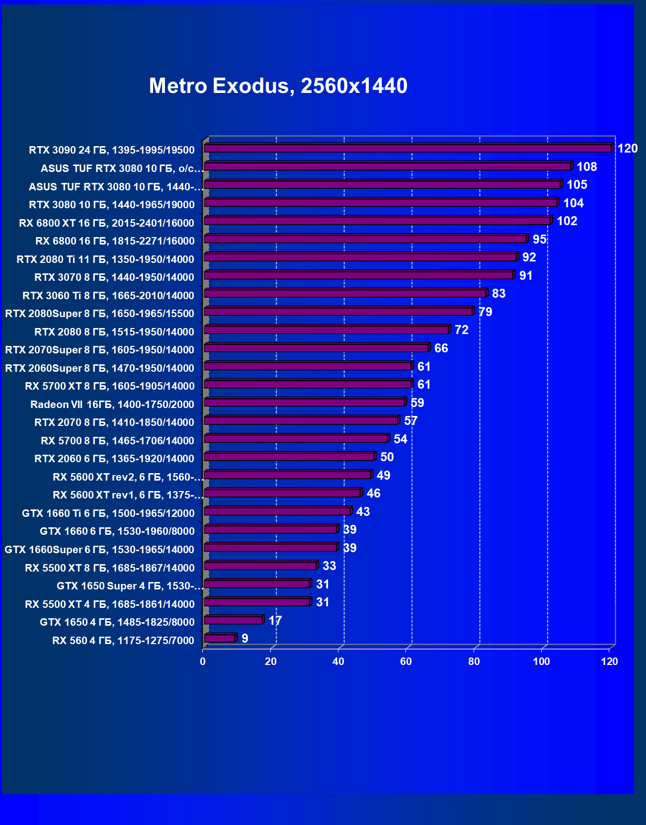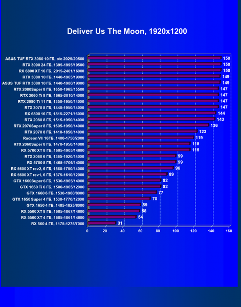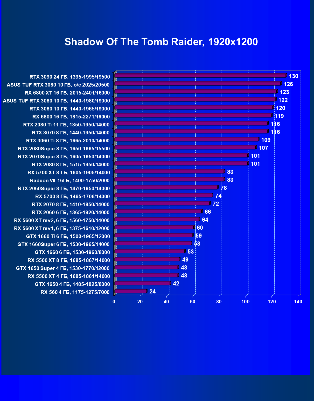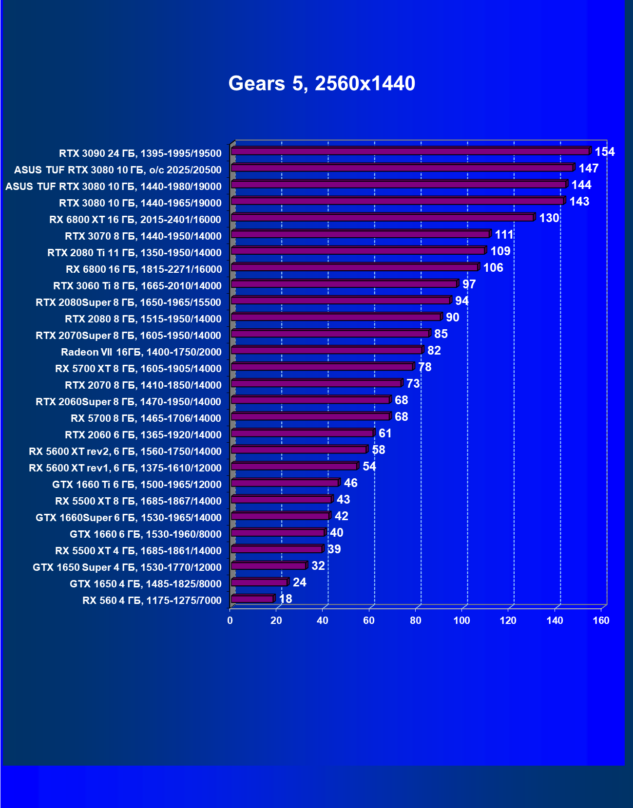 | 11 | RX 6800 XT 16 ГБ, 2015—2401/16000 | 20 | 140 | 70 000 |