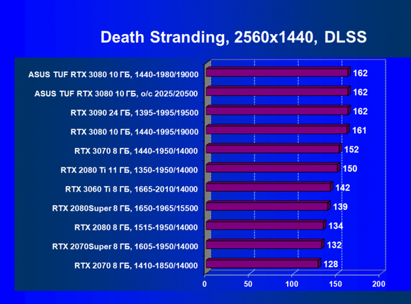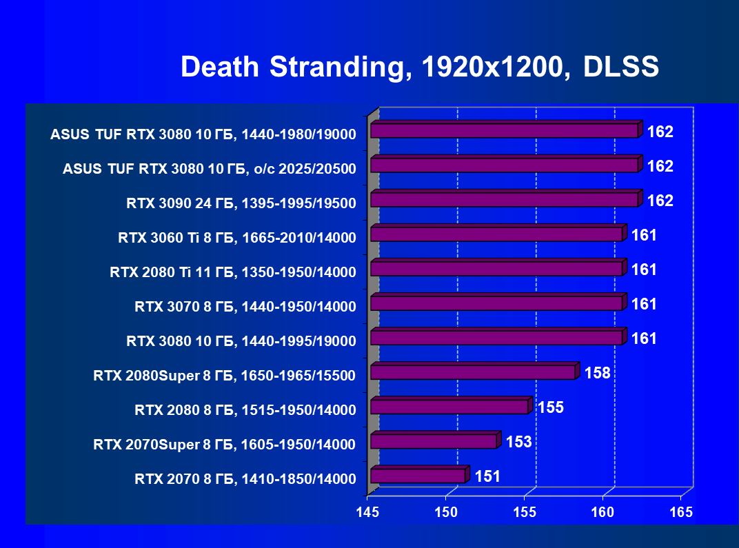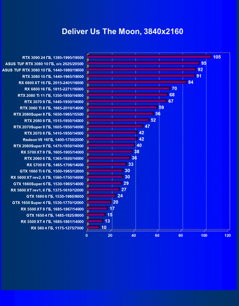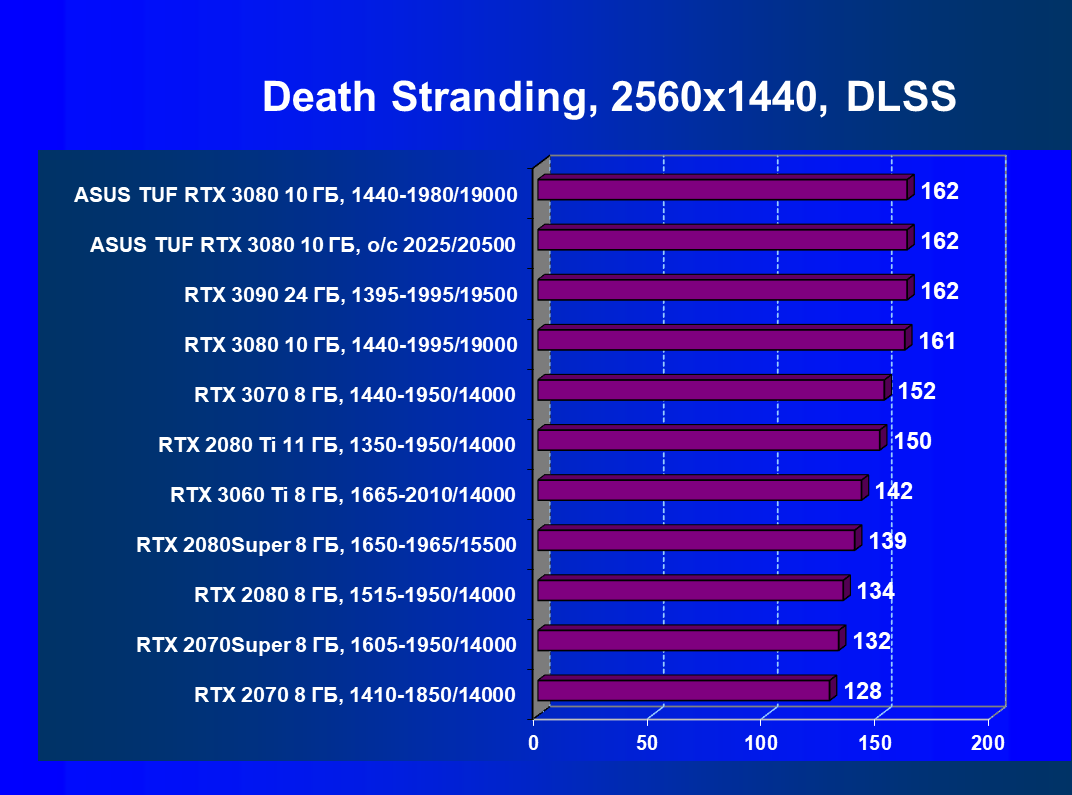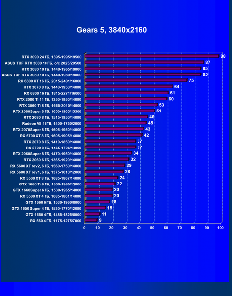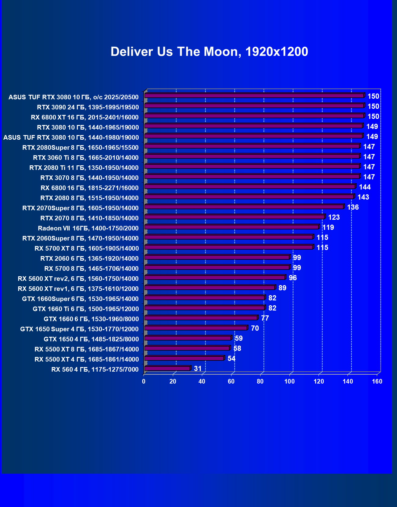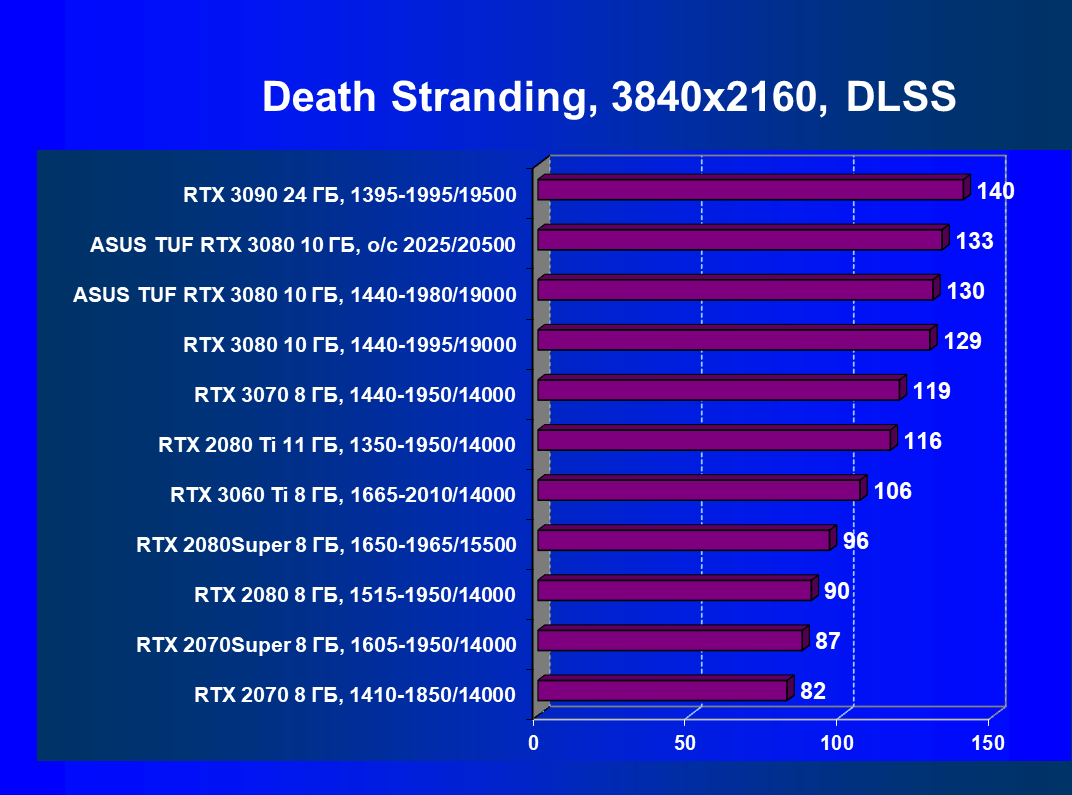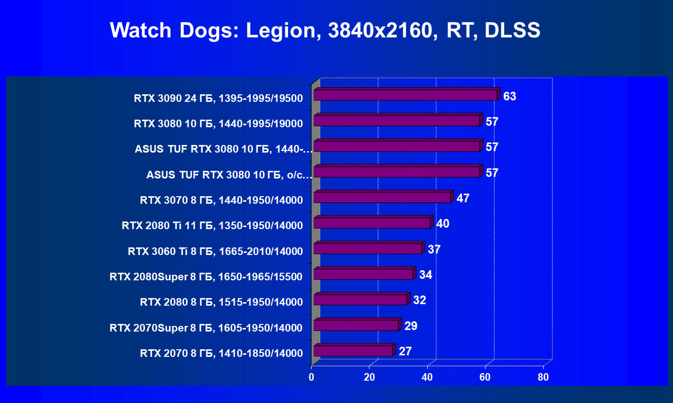 | 09 | Asus TUF RTX 3080 10 ГБ, разгон до 2025/20500 | 182 | 1805 | 99 000 |