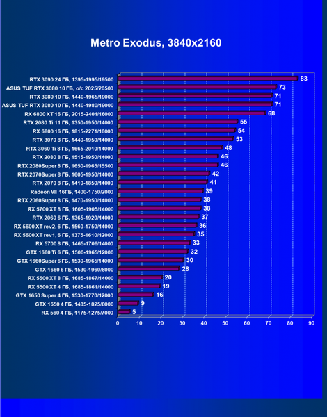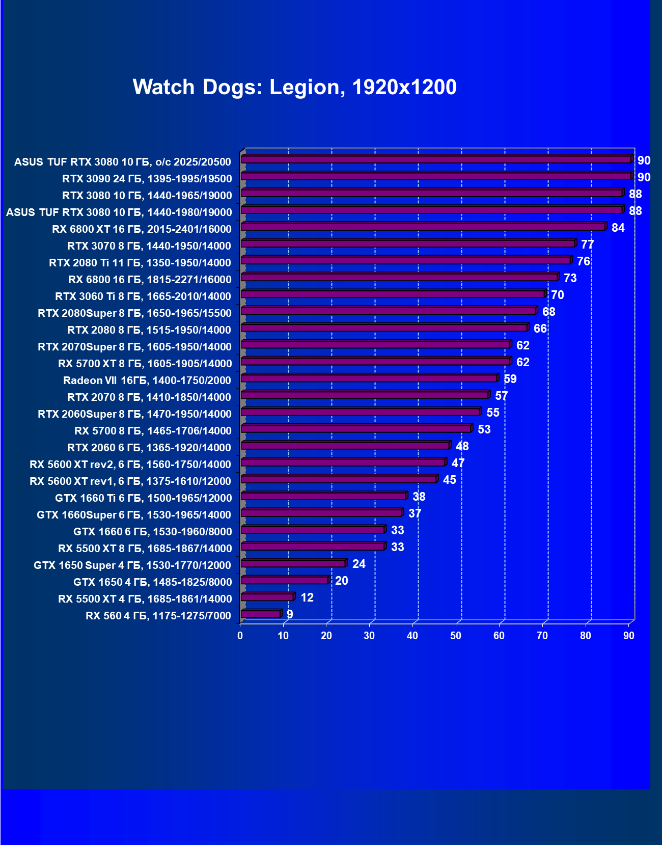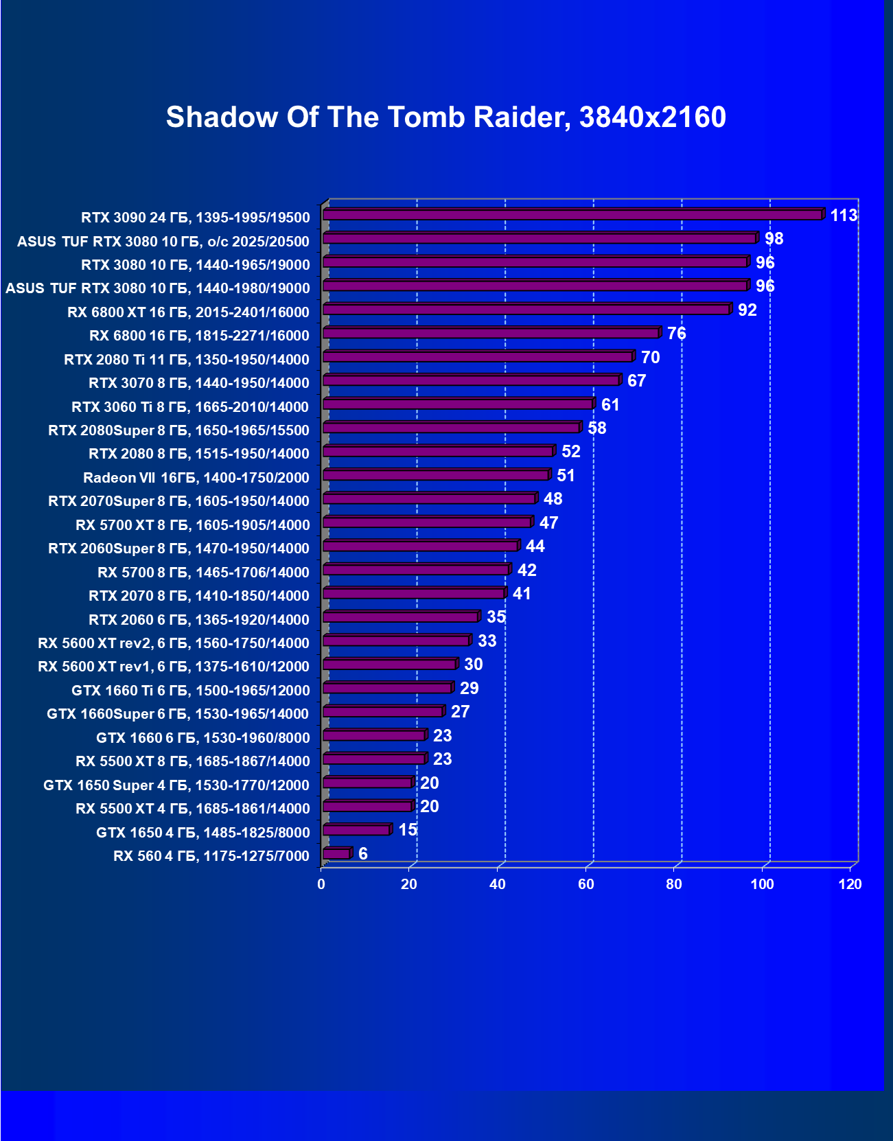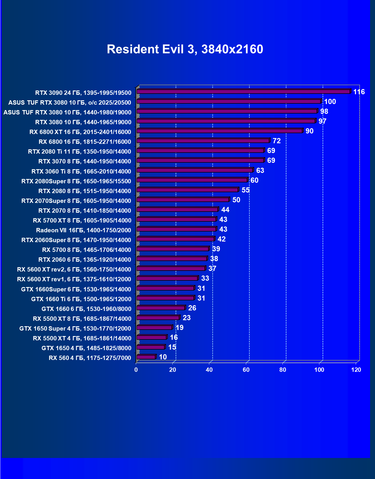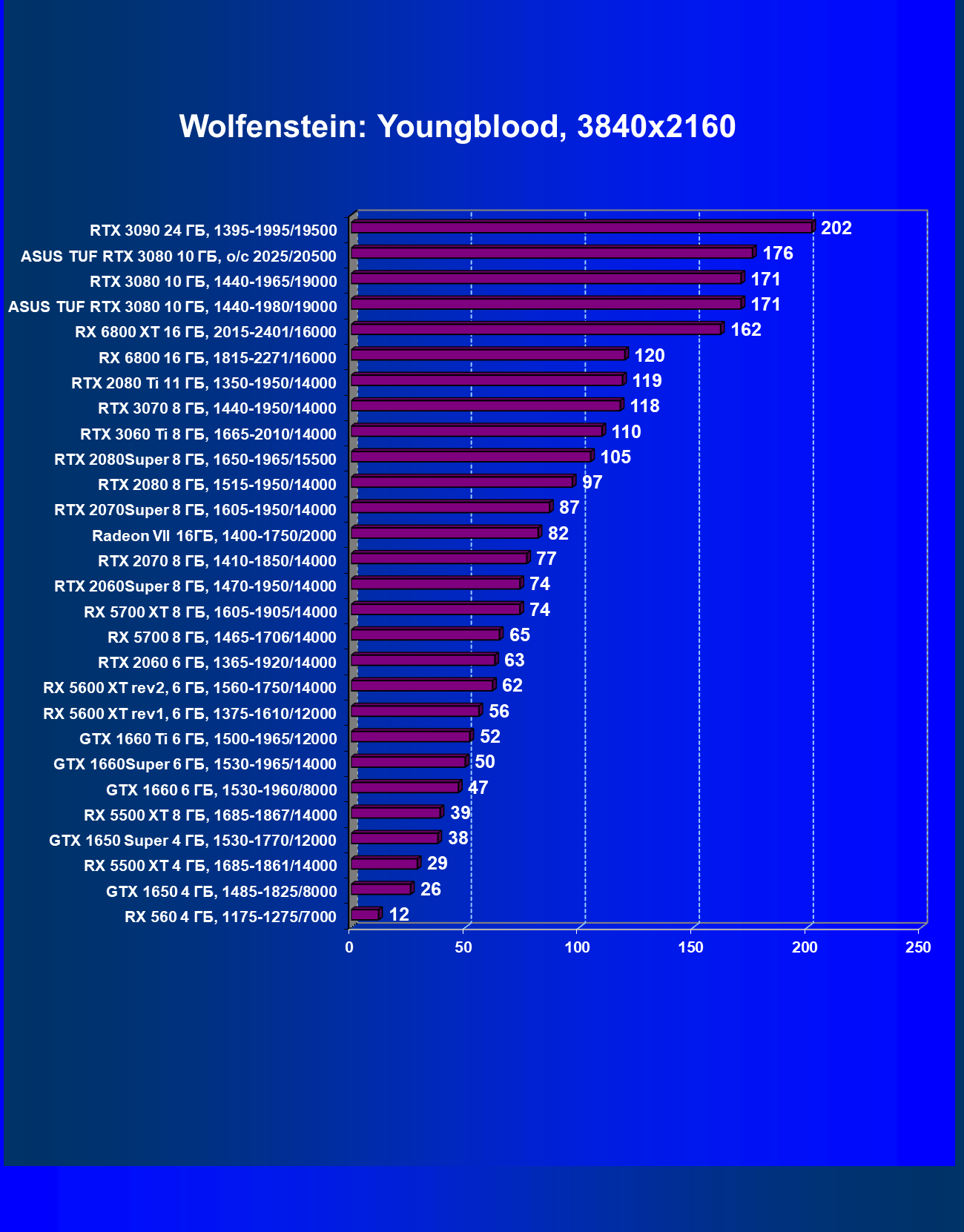 | 09 | Asus TUF RTX 3080 10 ГБ, разгон до 2025/20500 | 182 | 1805 | 99 000 |