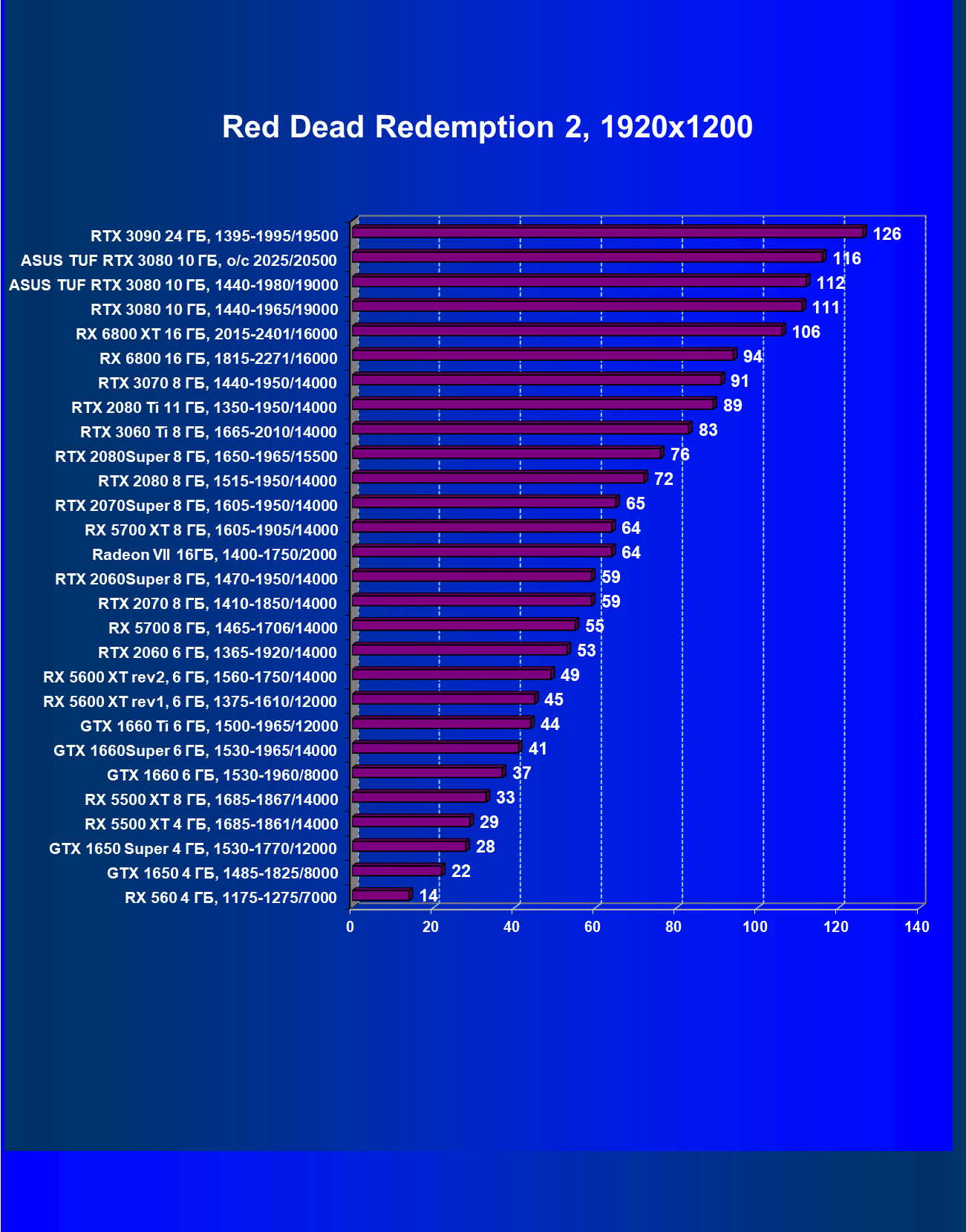 | 03 | Asus TUF RTX 3080 10 ГБ, 1440—1980/19000 | 230 | 23 | 99 000 |