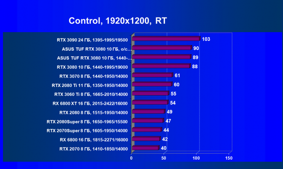 | 03 | Asus TUF RTX 3080 10 ГБ, 1440—1980/19000 | 1040 | 105 | 99 000 |