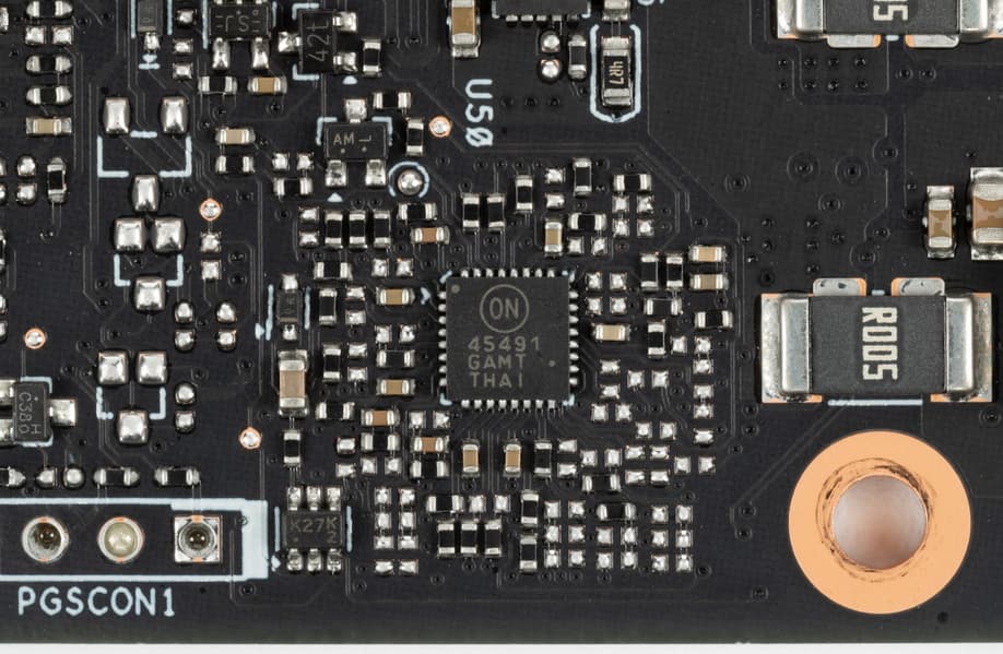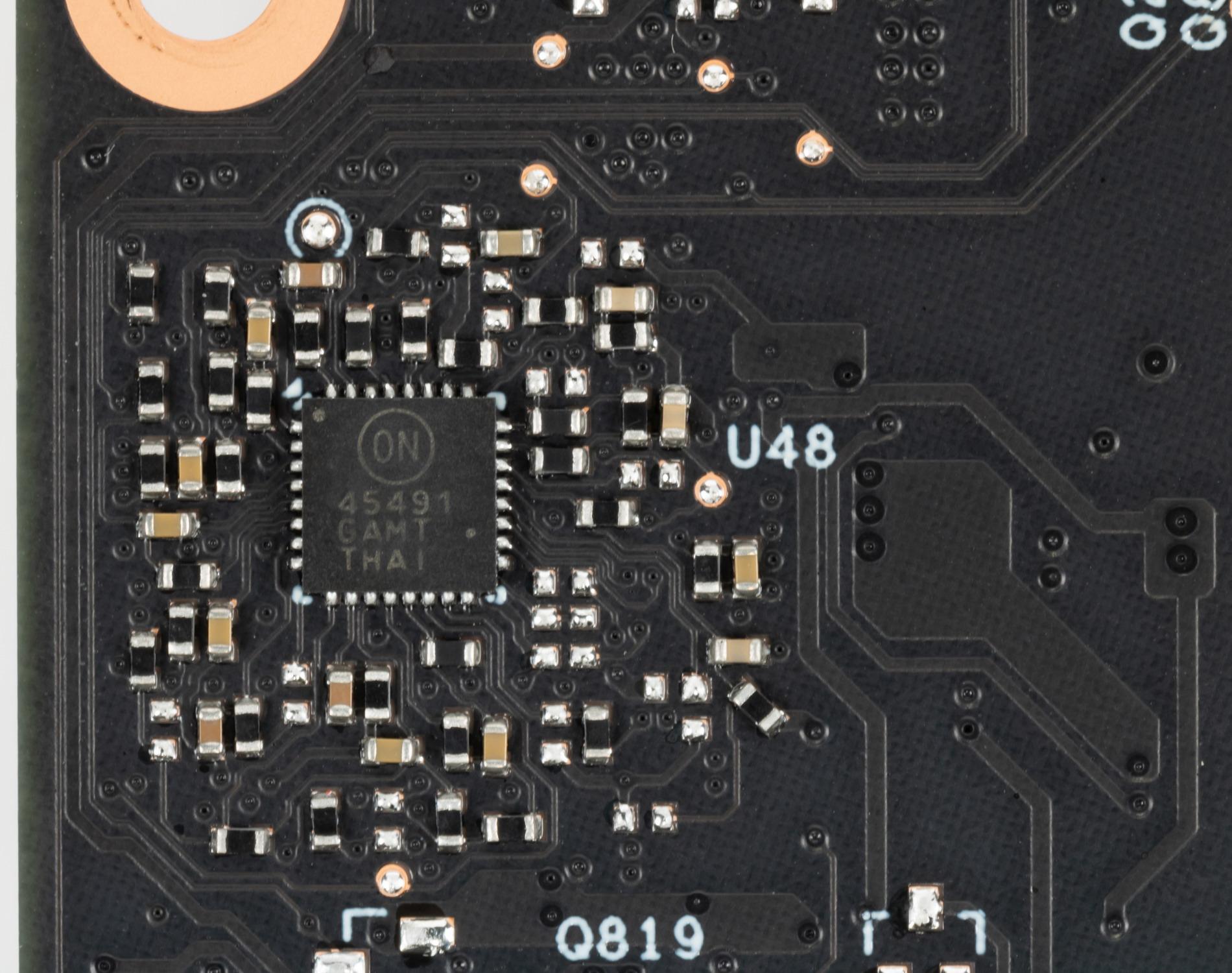 Также есть два контроллера NCP45491 (On Semiconductor), отвечающие за мониторинг карты (отслеживание напряжений и температуры), они расположены на разных сторонах PCB.