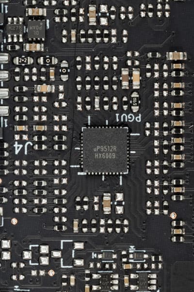 На той же лицевой стороне имеется другой ШИМ-контроллер uPI, uP9512S, который управляет 4-фазной схемой питания микросхем памяти.