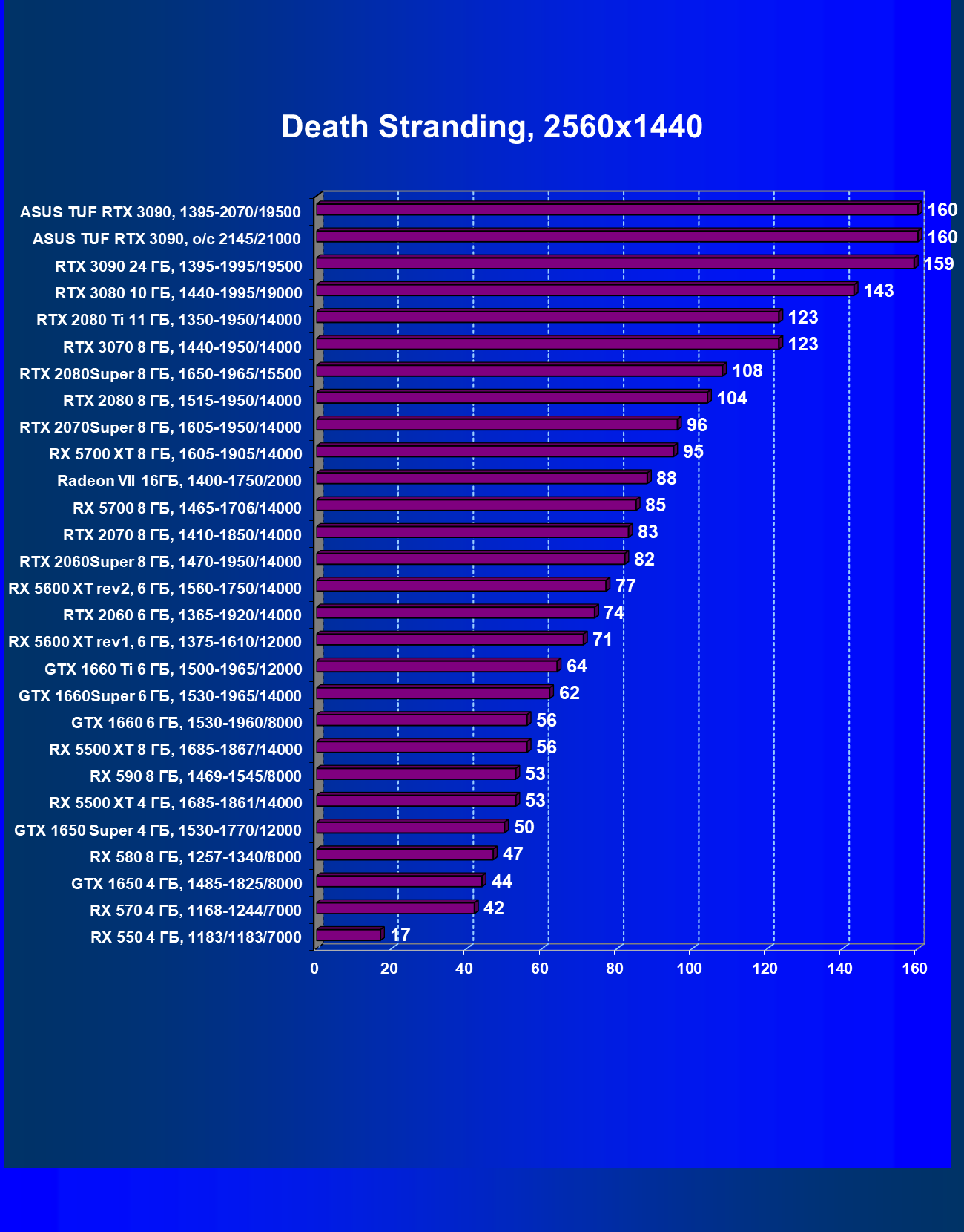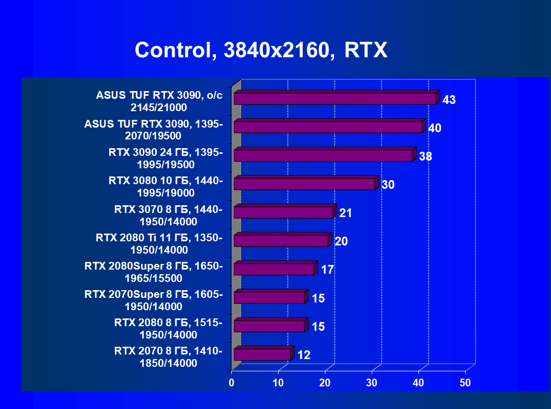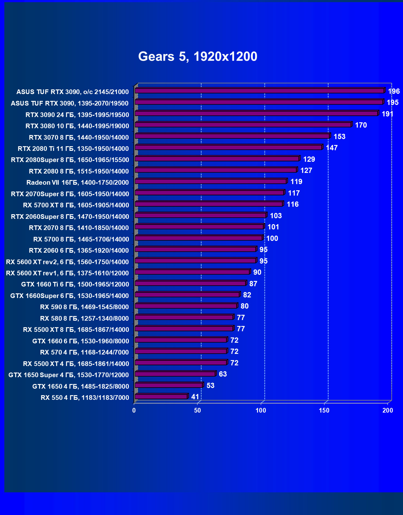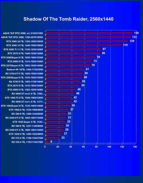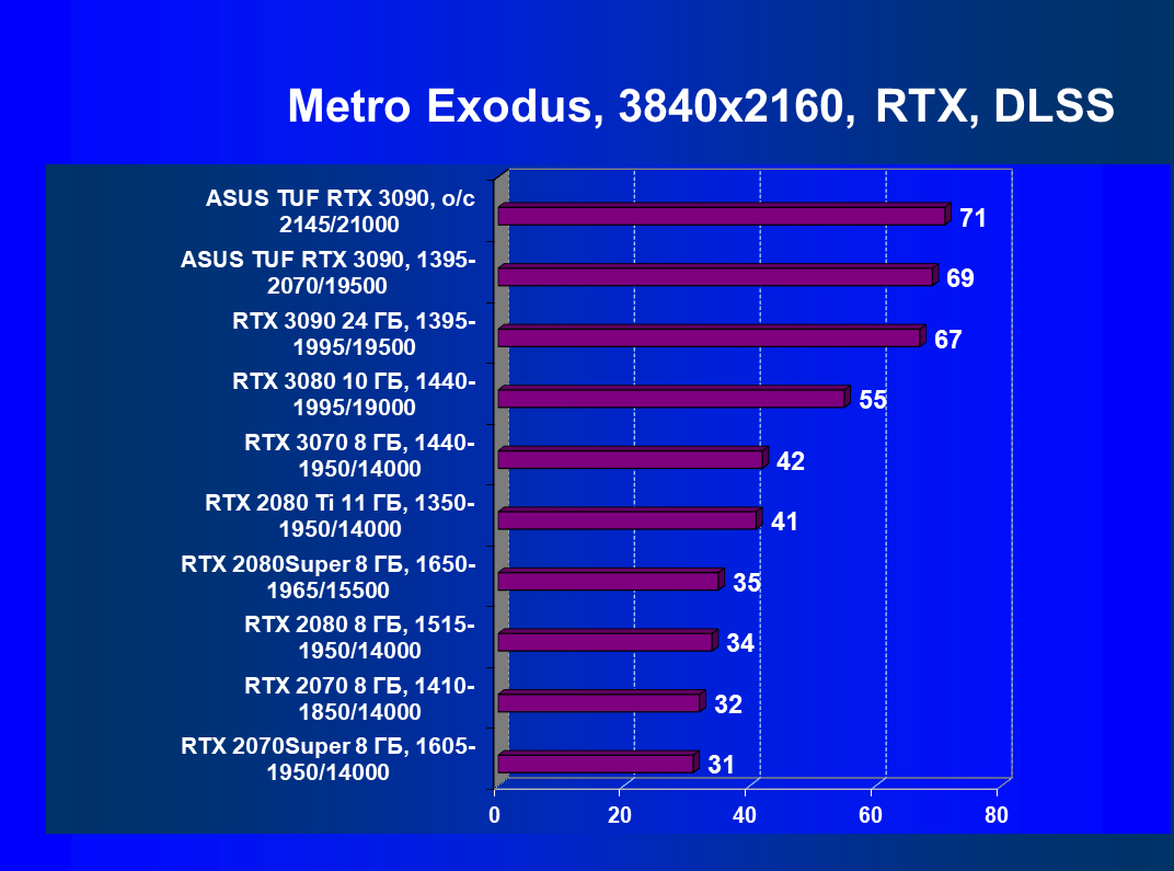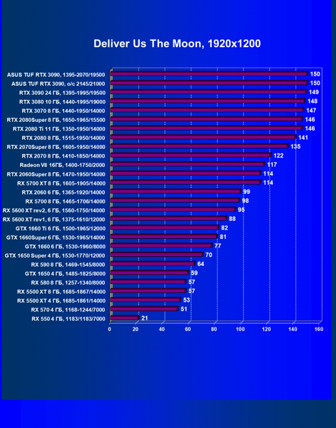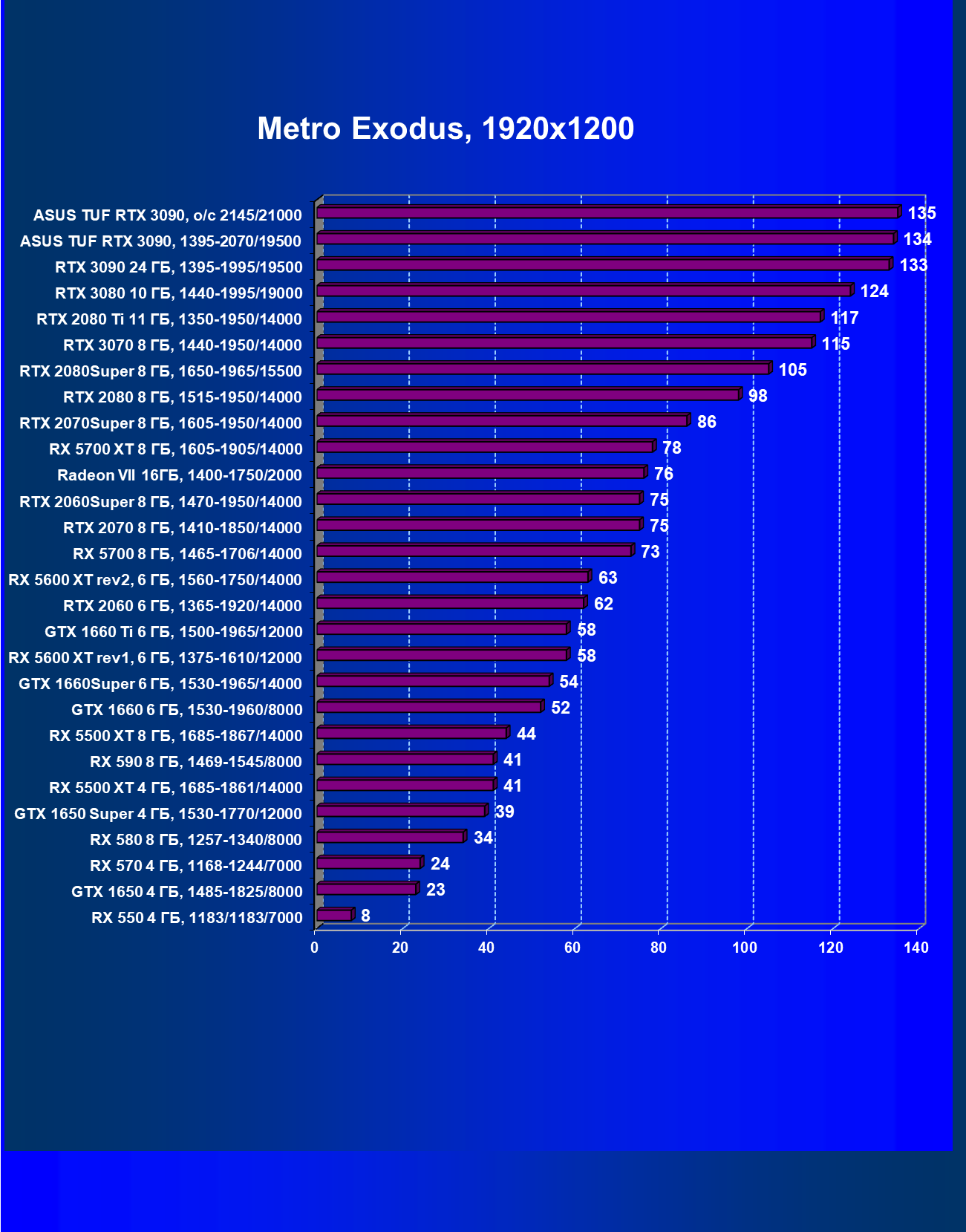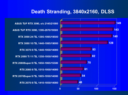 | 11 | Asus TUF RTX 3090, 1395—2070/19500 | 344 | 5164 | 150 000 |