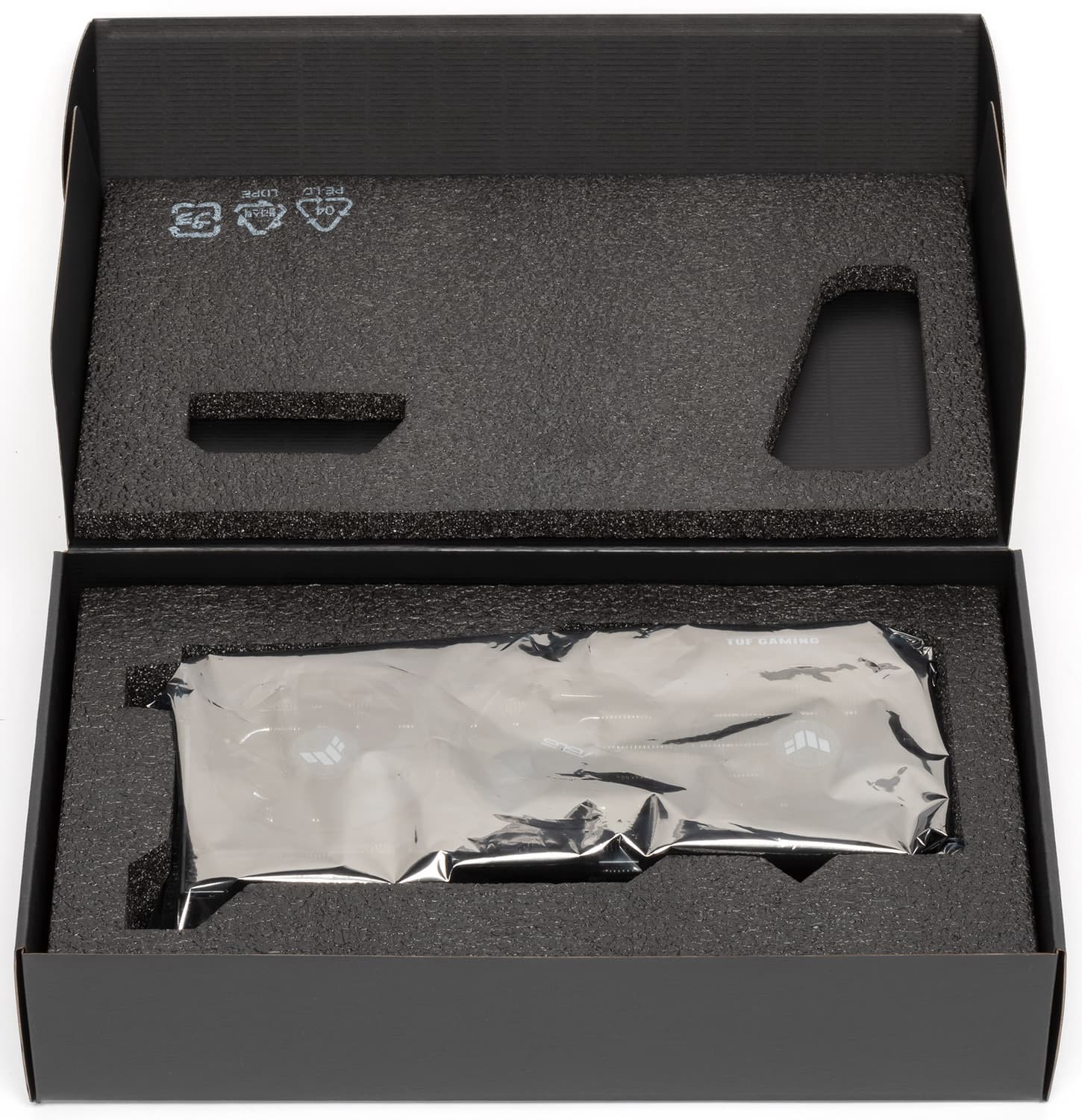 Серия TUF — не самая топовая, однако для флагмана можно было придумать что-то интересное в комплекте. Кстати, кронштейна для поддержки карты здесь тоже нет, но в данном случае сама конструкция платы очень жесткая (задняя пластина соединена с крепежной планкой), что позволяет обходиться без подобной подставки.