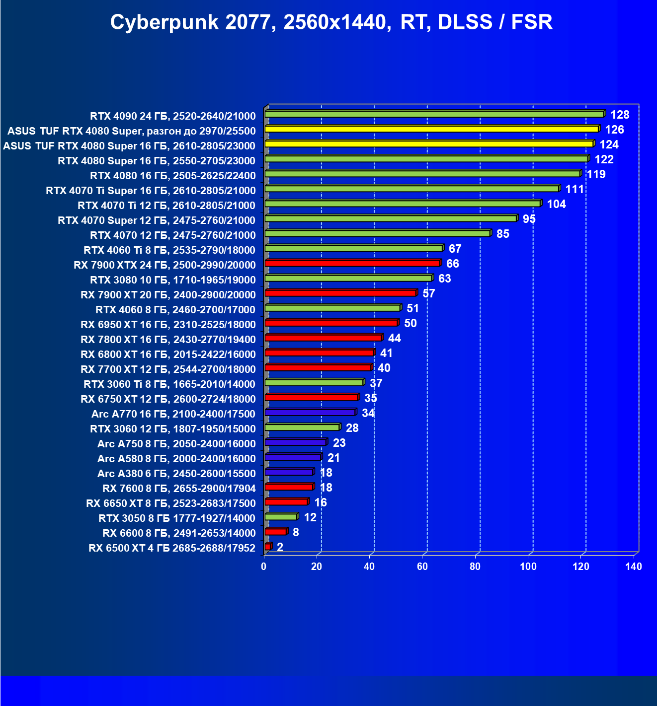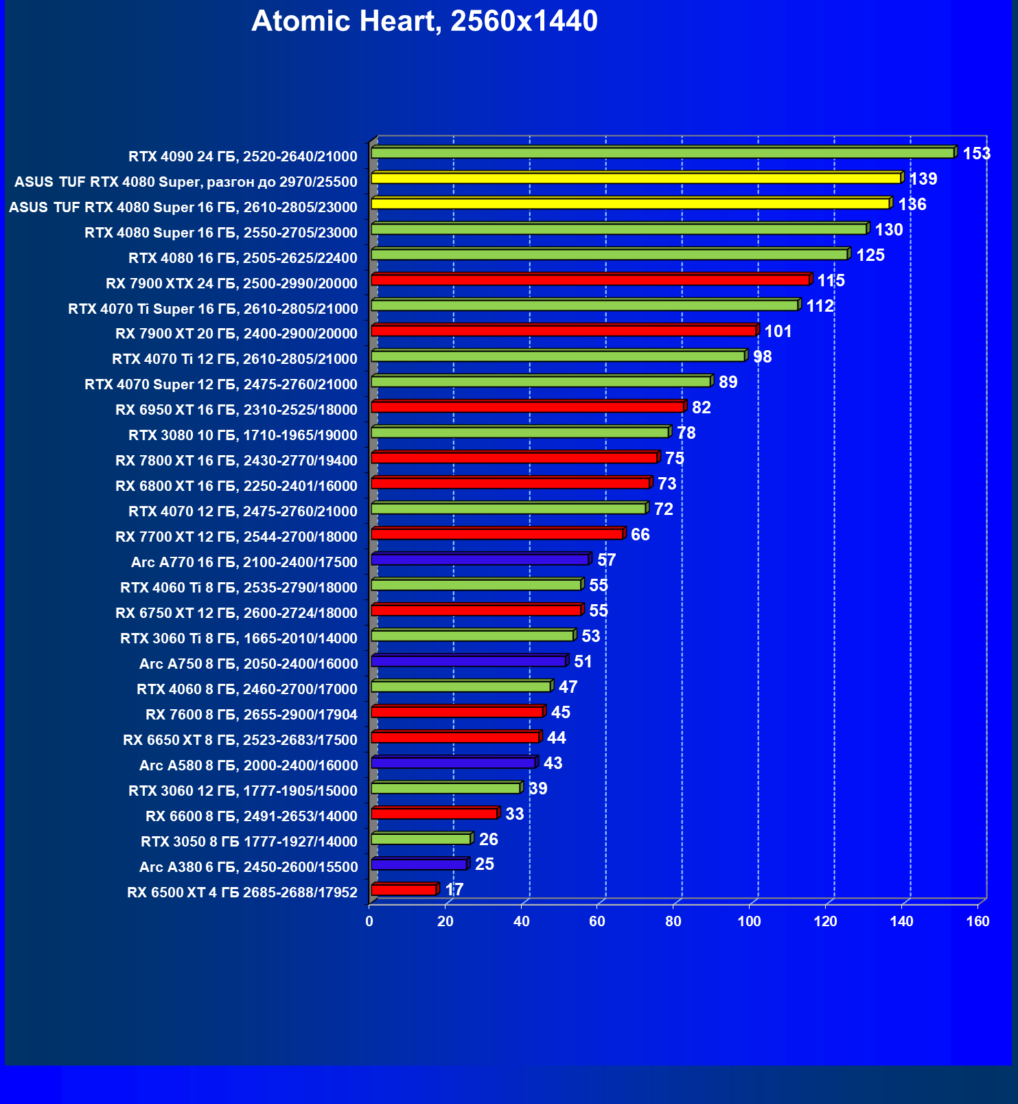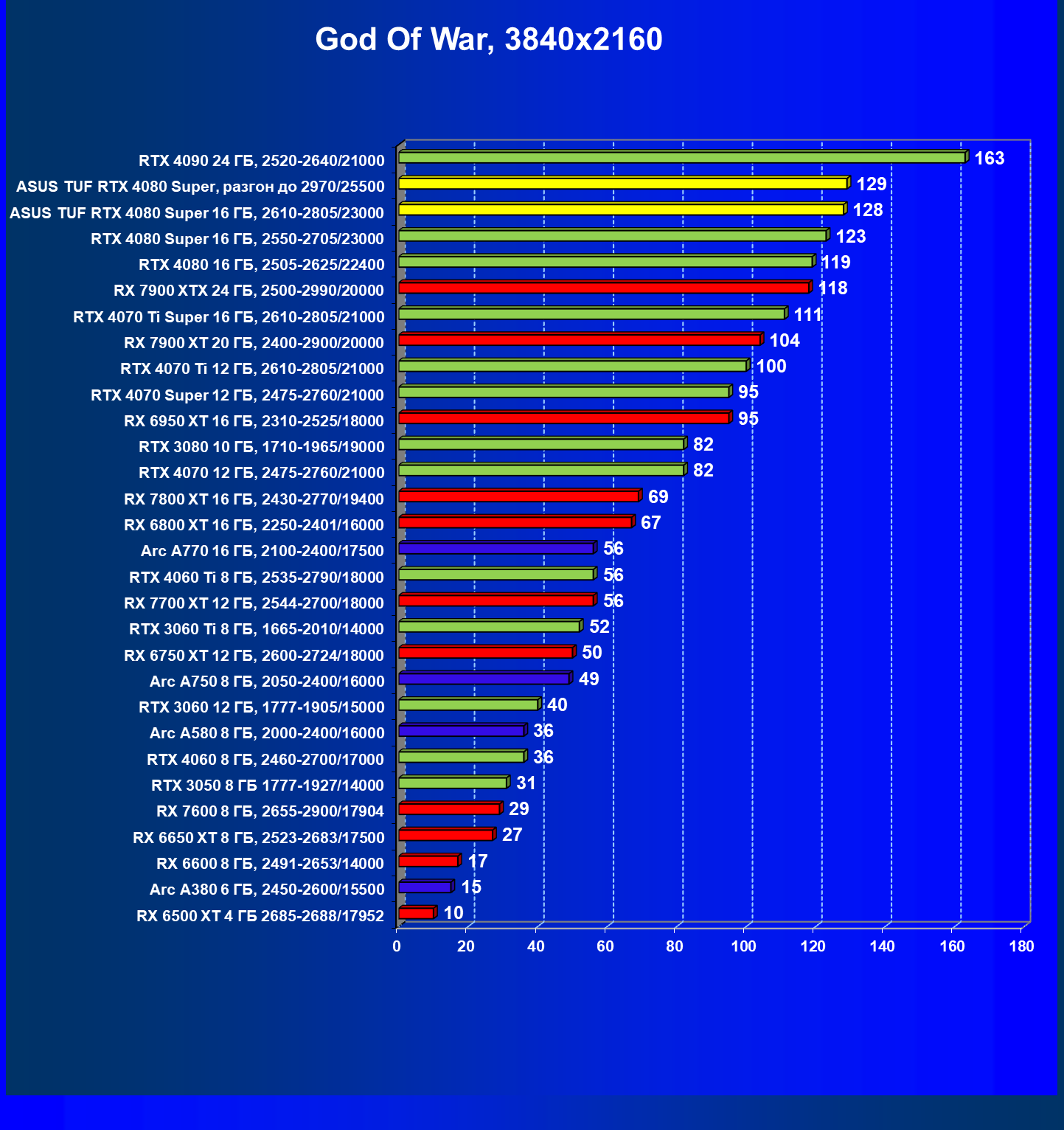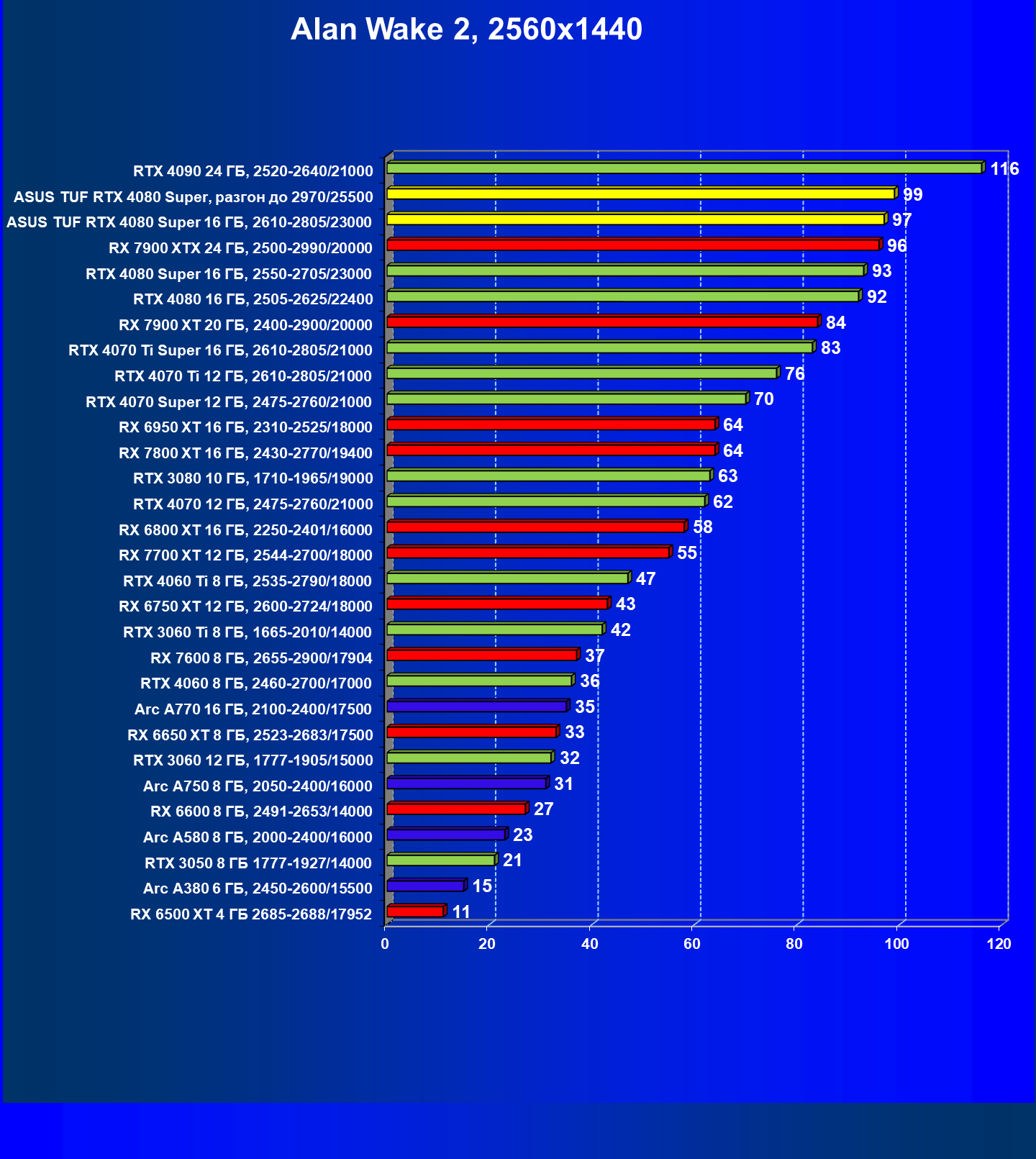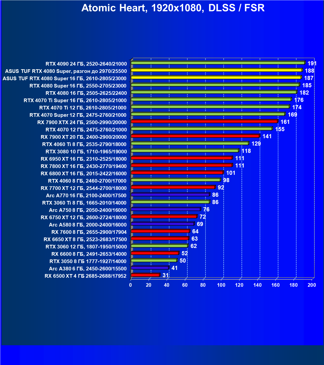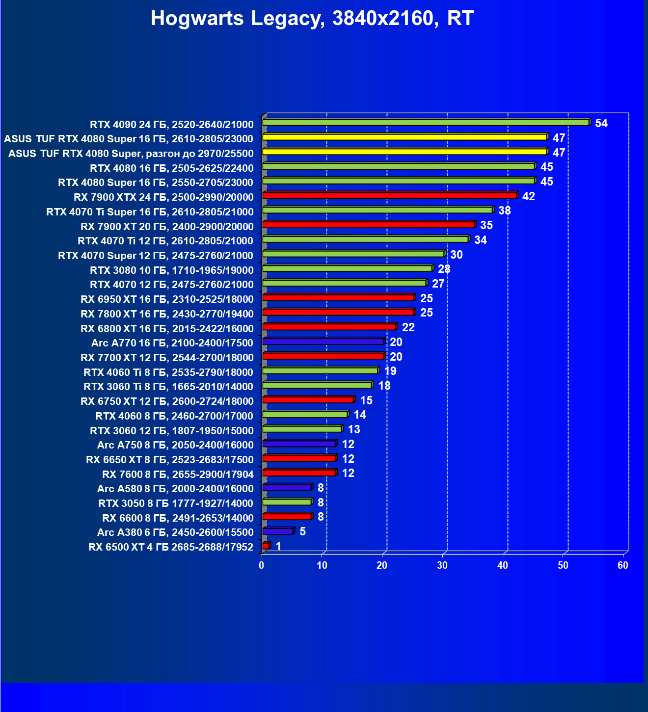 | 11 | Asus TUF RTX 4080 Super, разгон до 2970/25500 | 238 | 3218 | 135 000 |