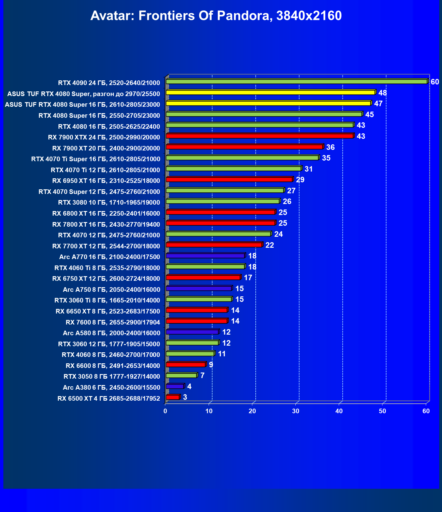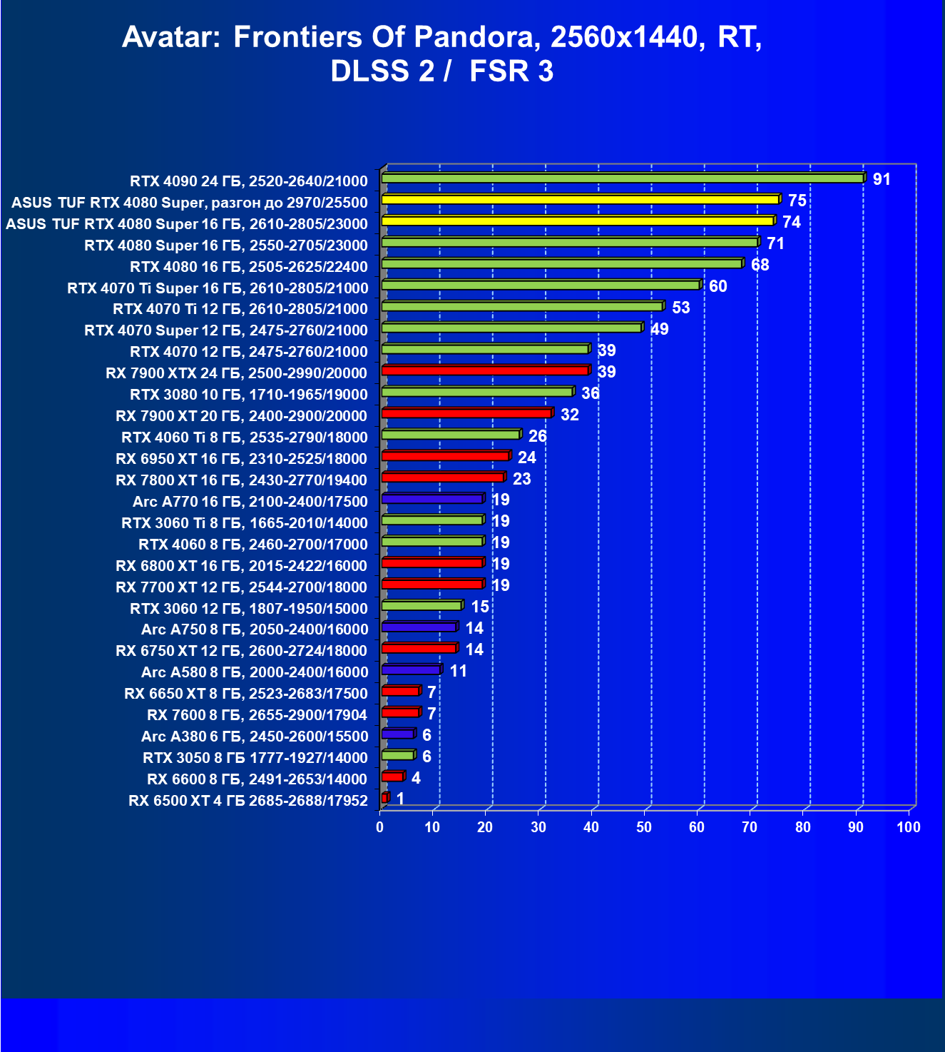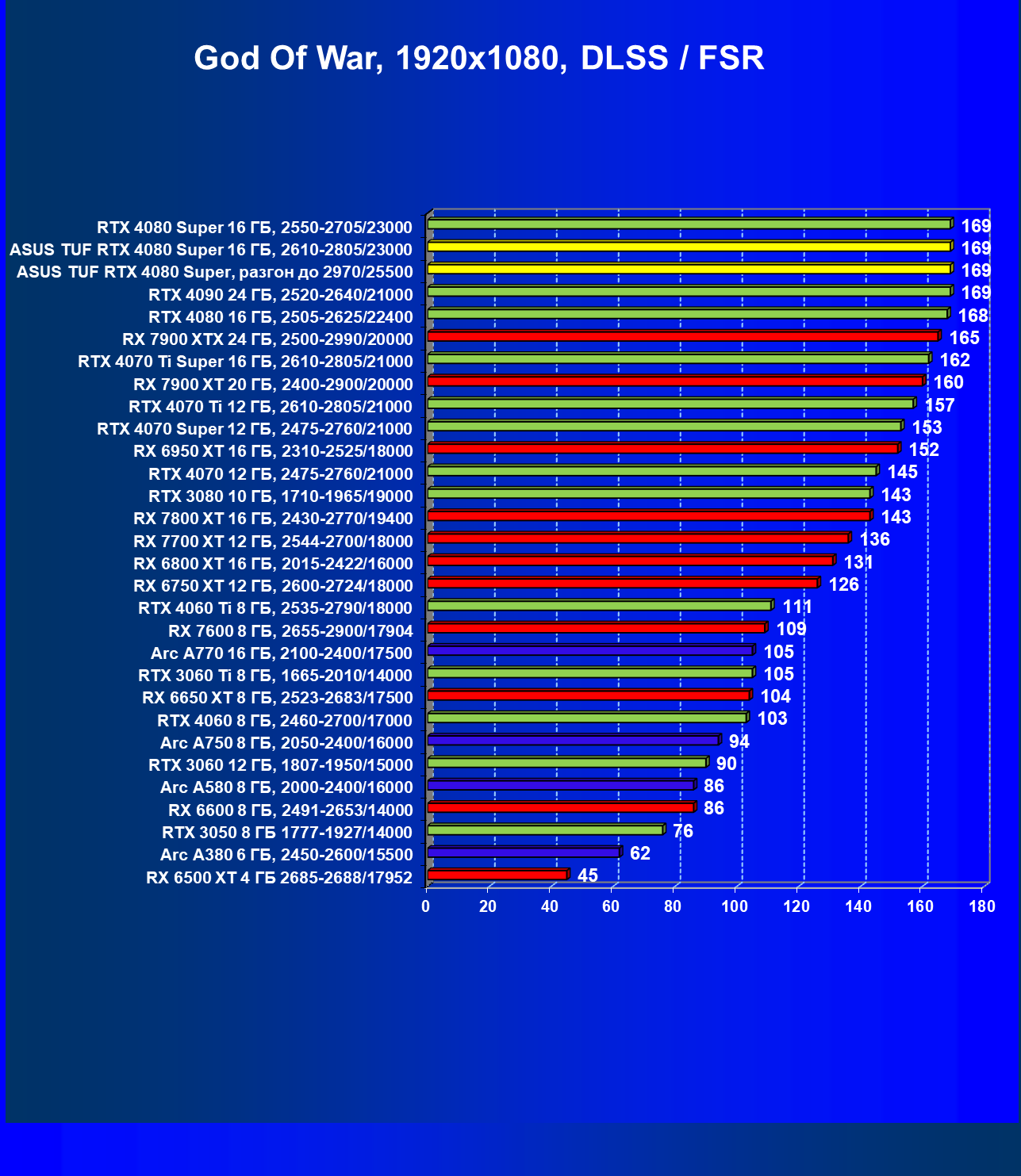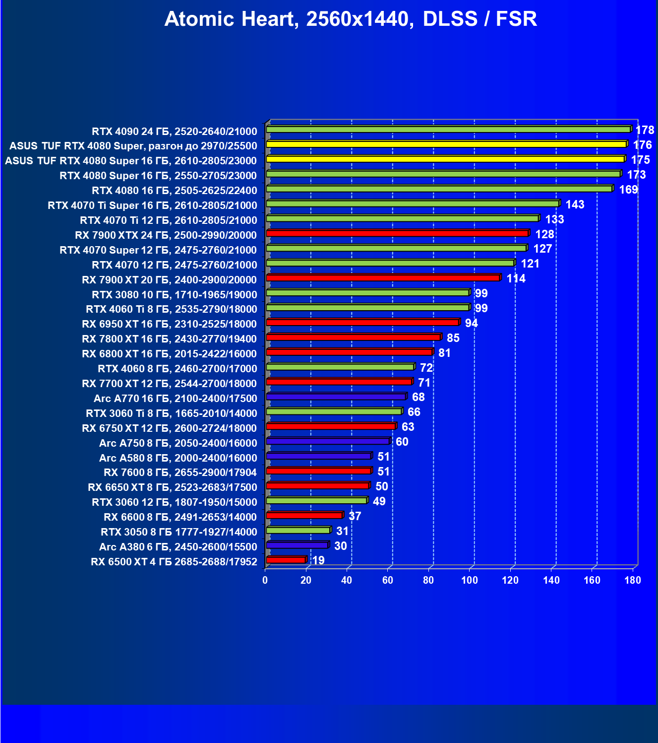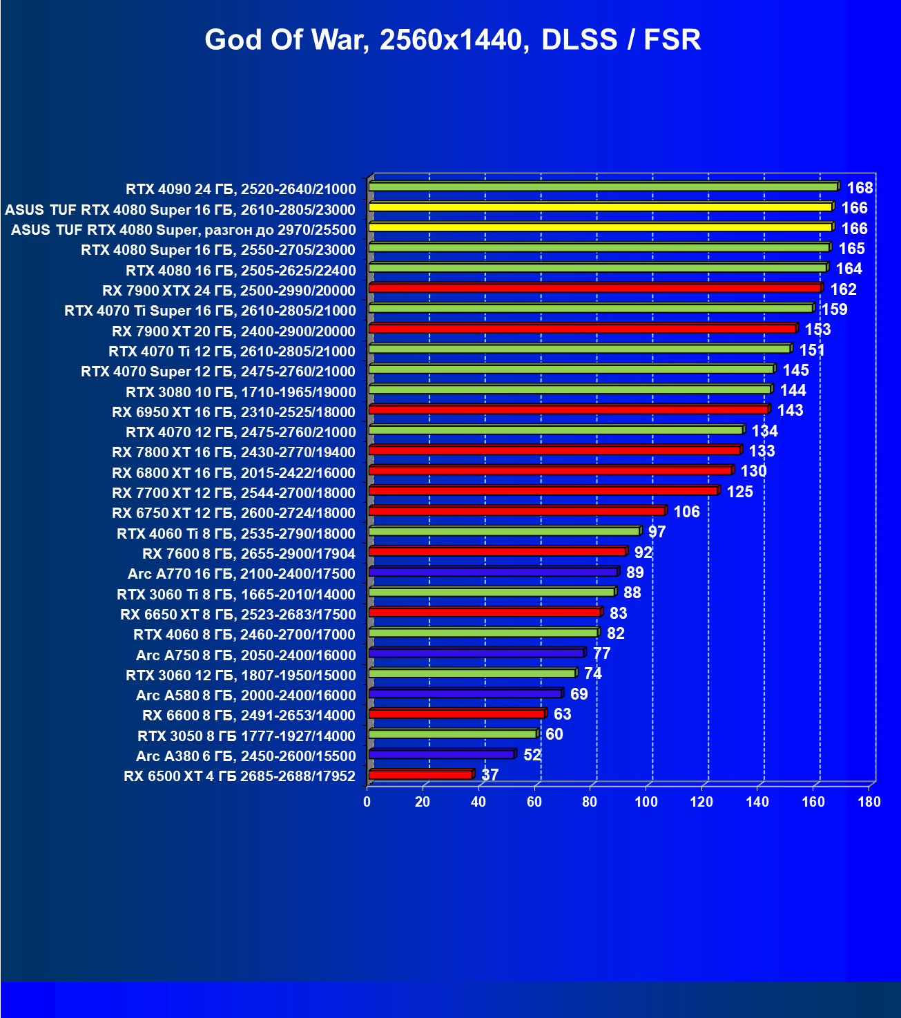| 11 | Asus TUF RTX 4080 Super, разгон до 2970/25500 | 238 | 3218 | 135 000 |