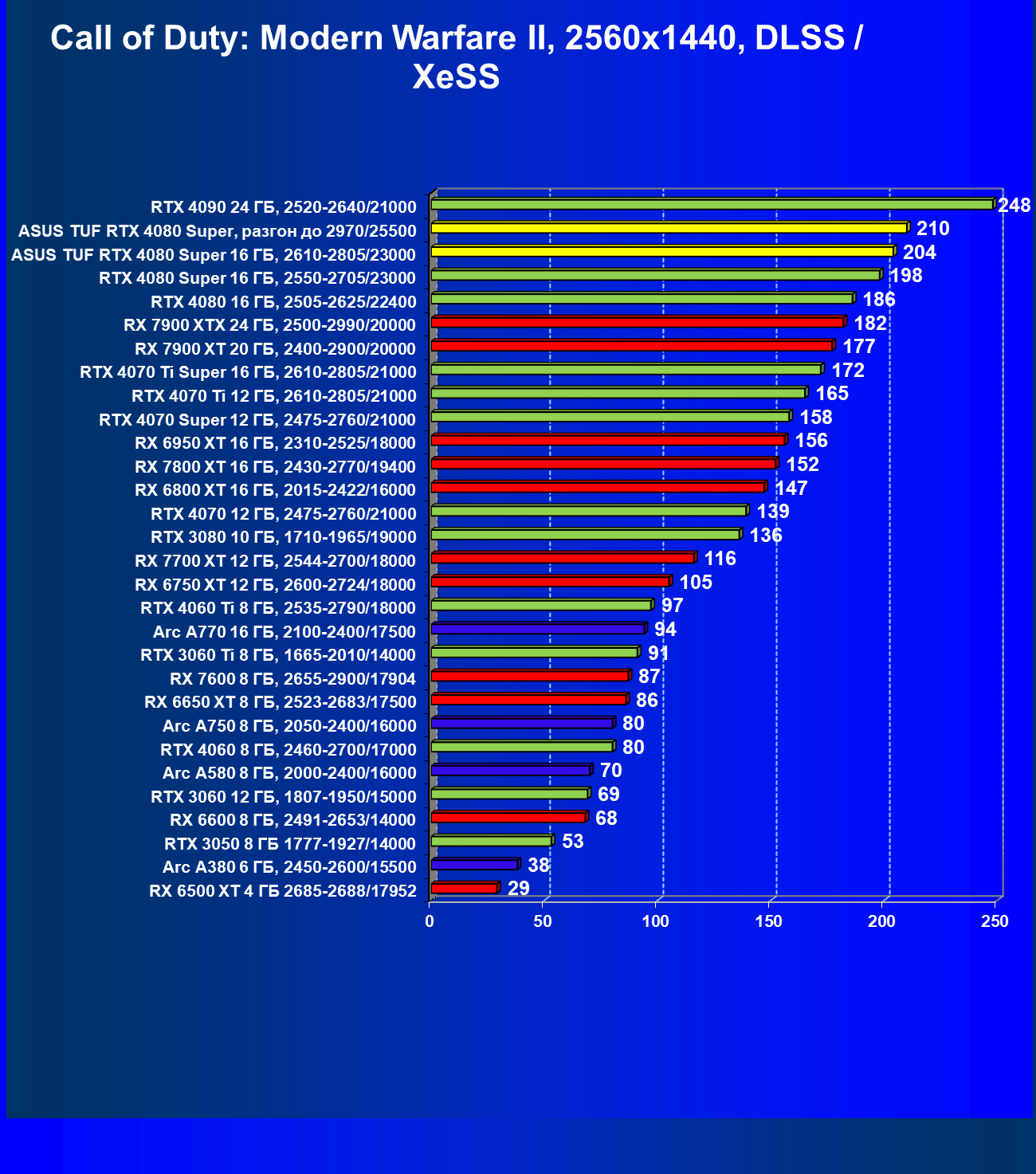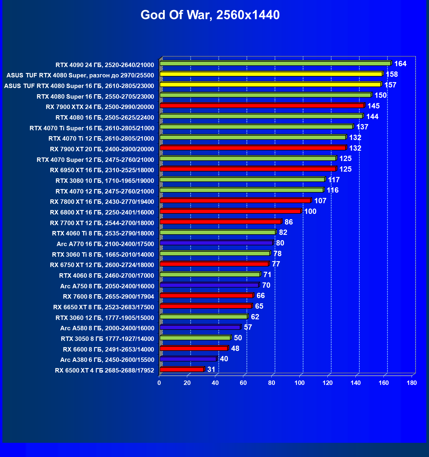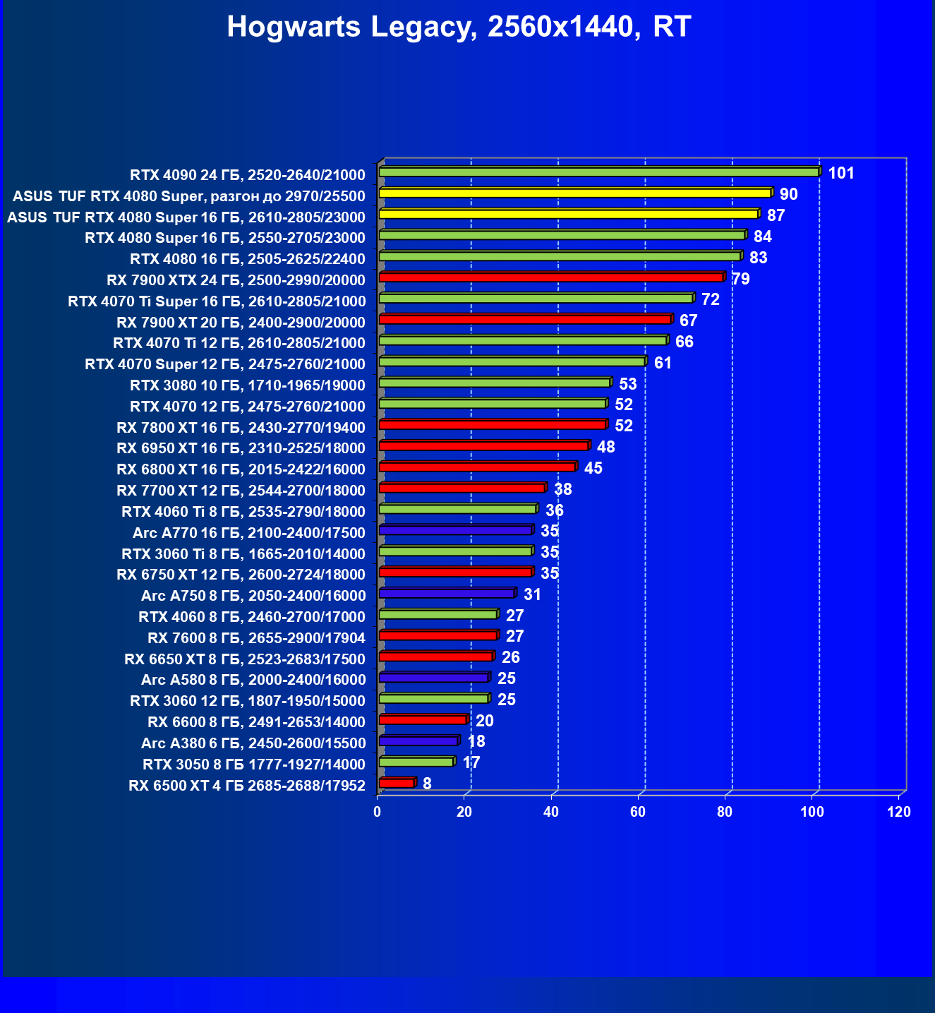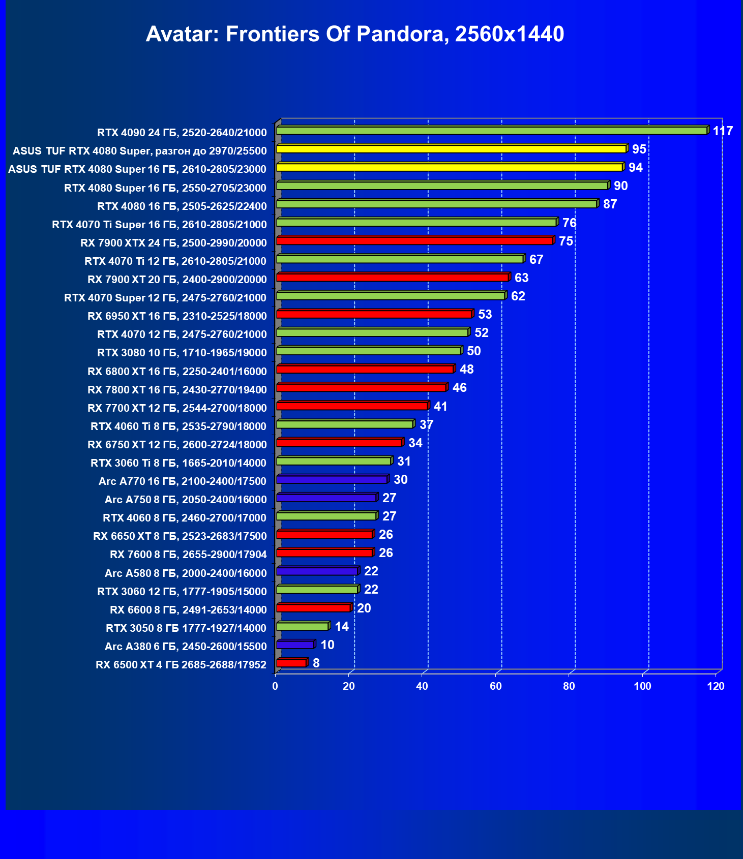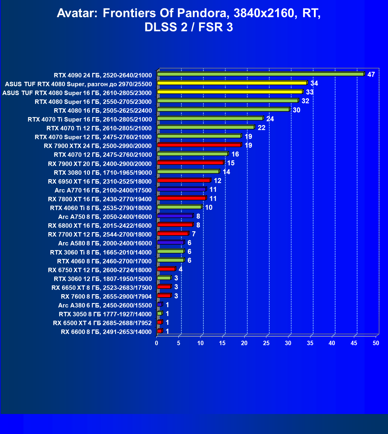 | 11 | Asus TUF RTX 4080 Super, разгон до 2970/25500 | 238 | 3218 | 135 000 |