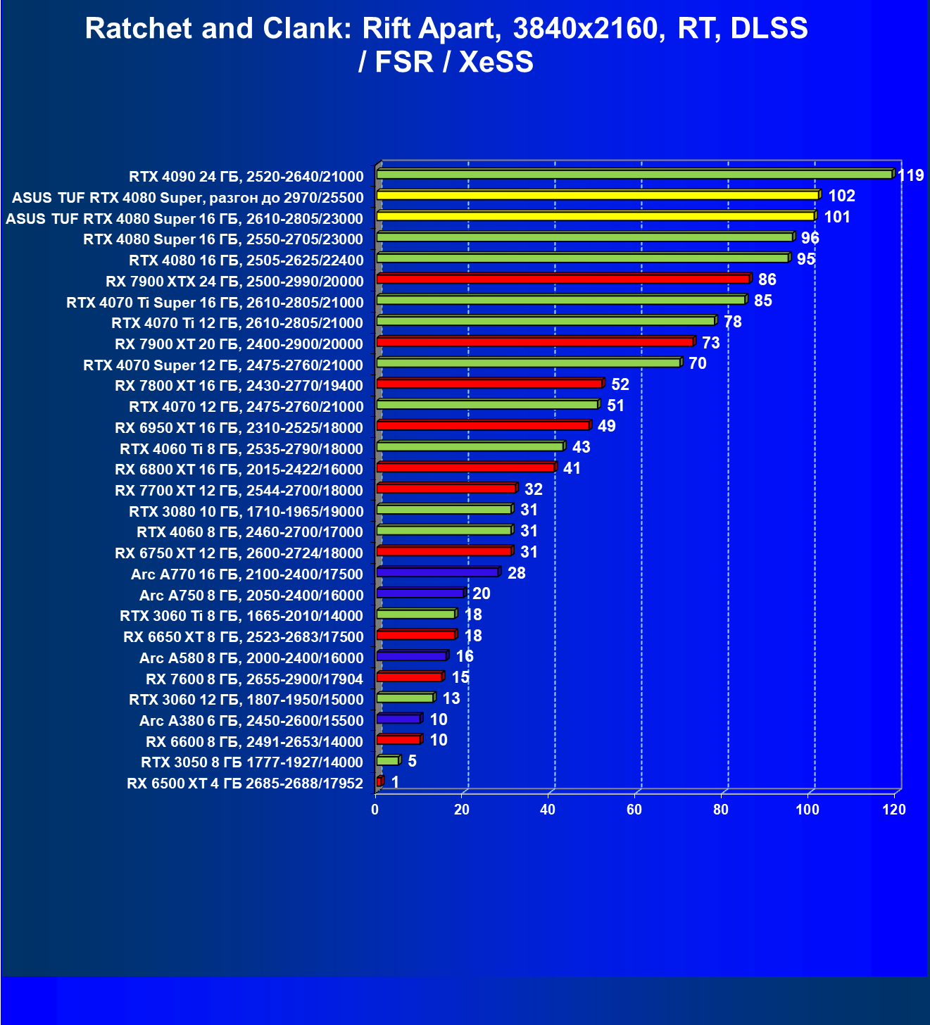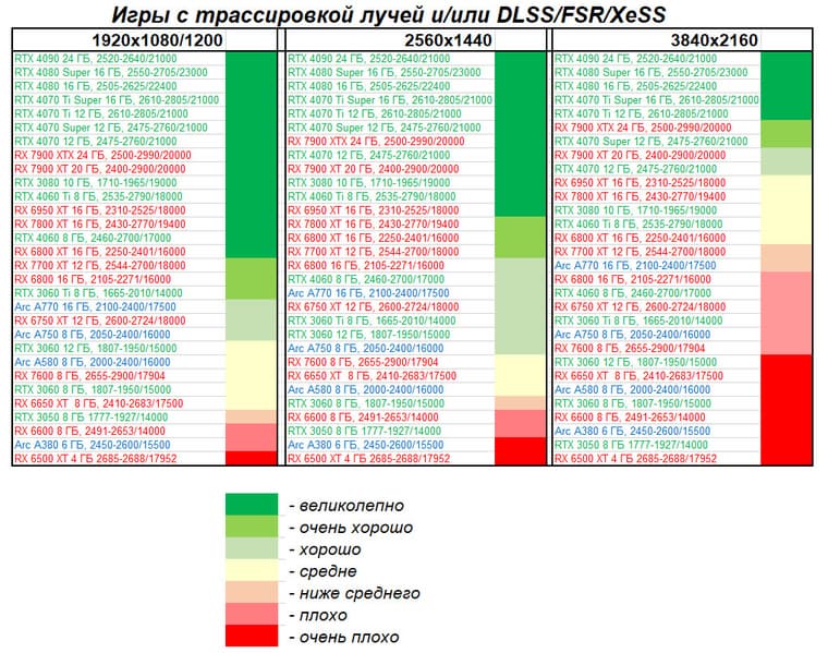 - Вариант рейтинга iXBT.com с включением RT/DLSS/FSR/XeSS