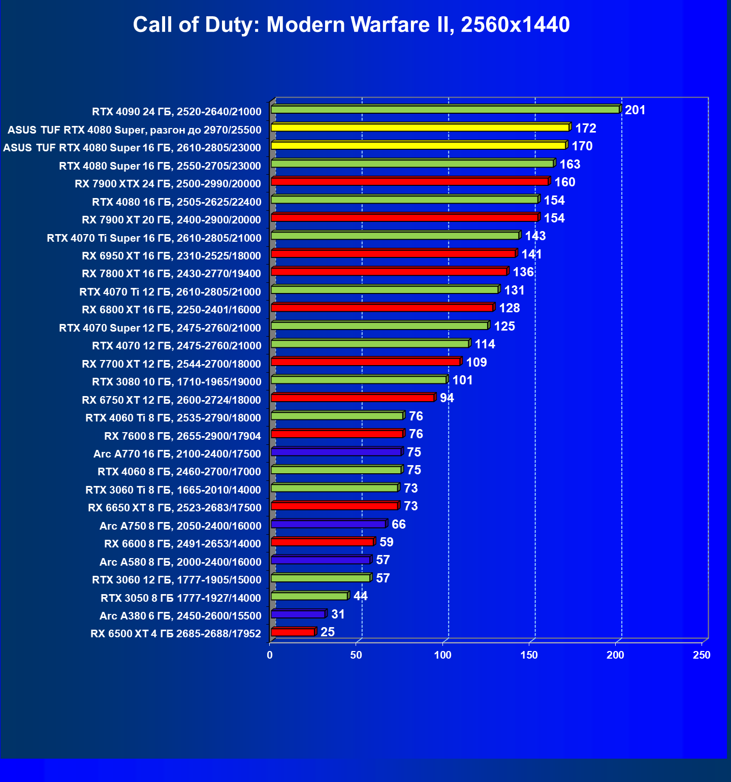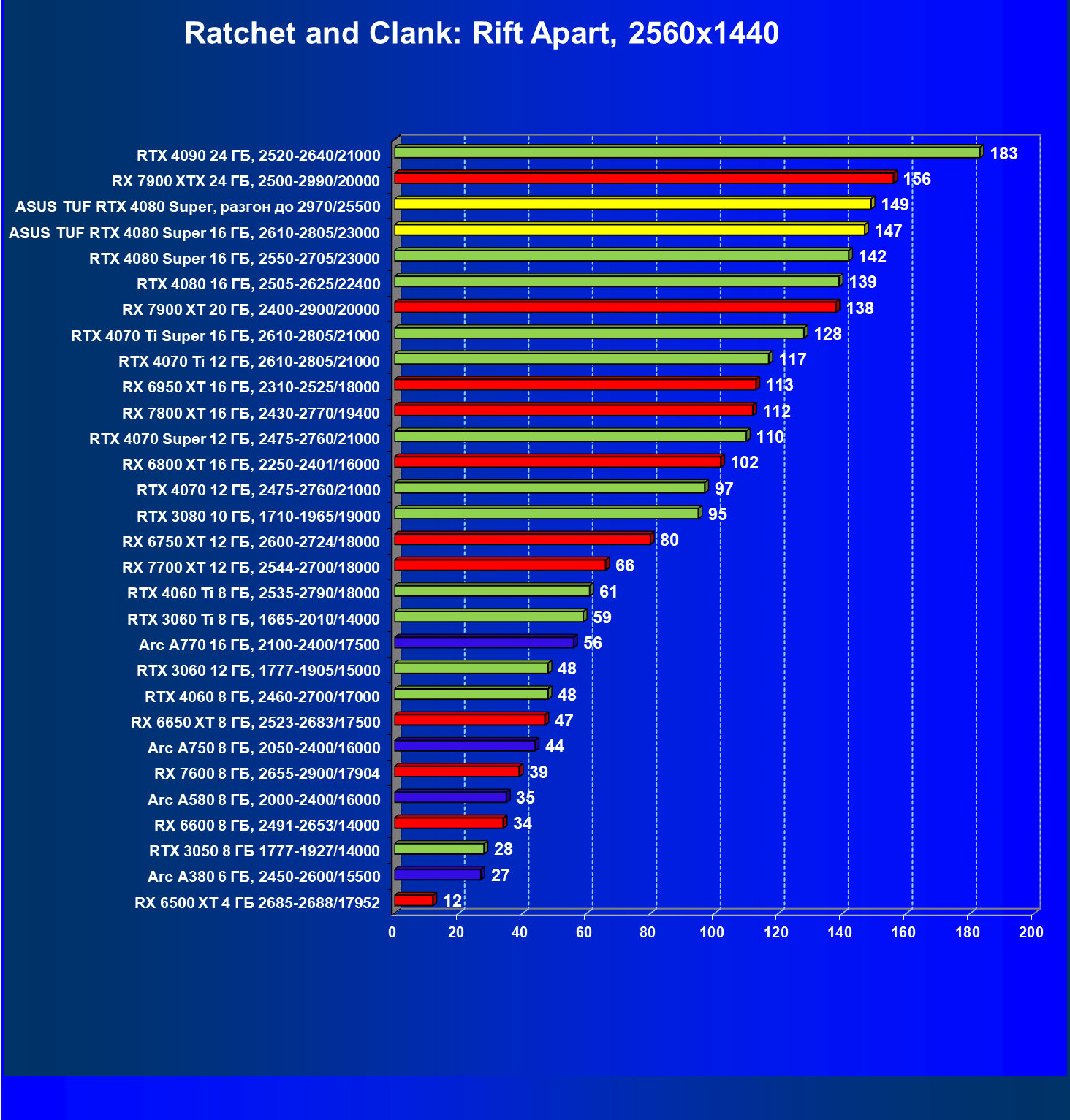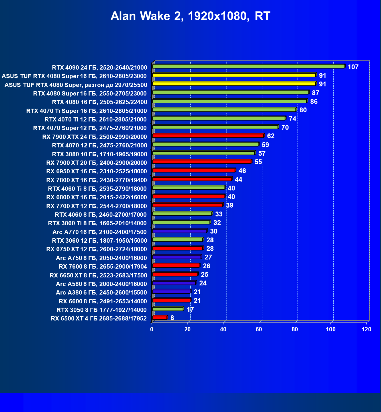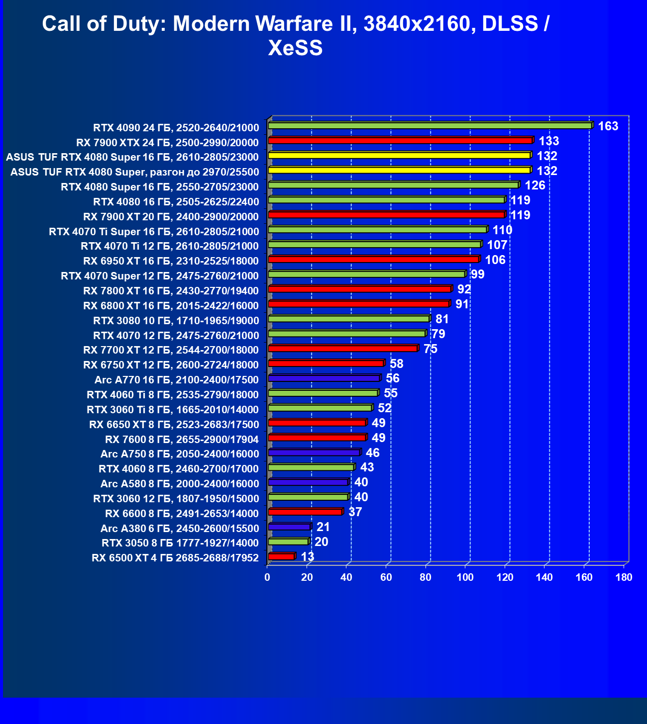 | 08 | RX 7900 XTX 24 ГБ, 2500—2990/20000 | 2163 | 219 | 99 000 |