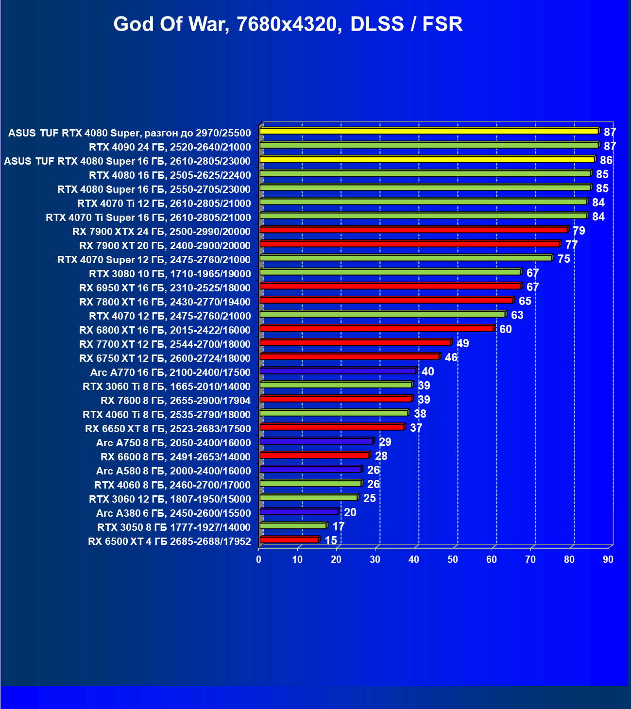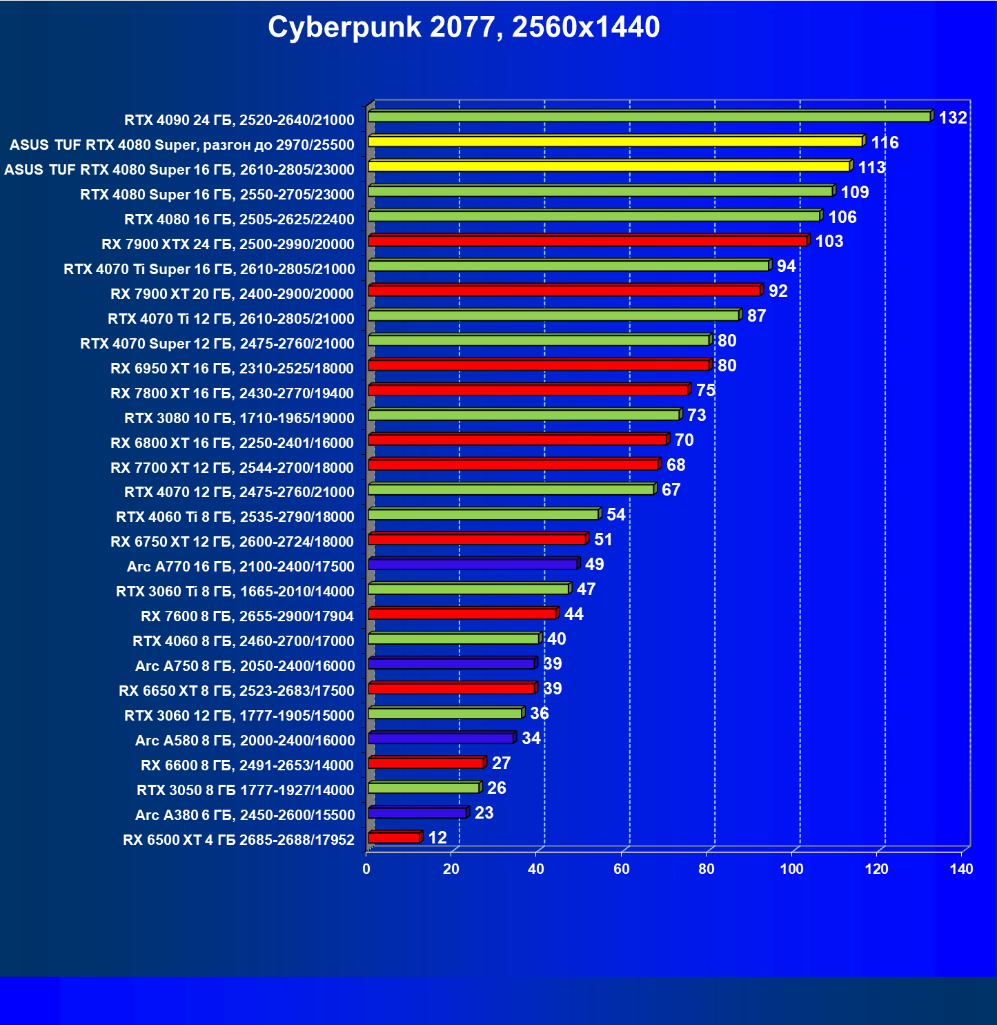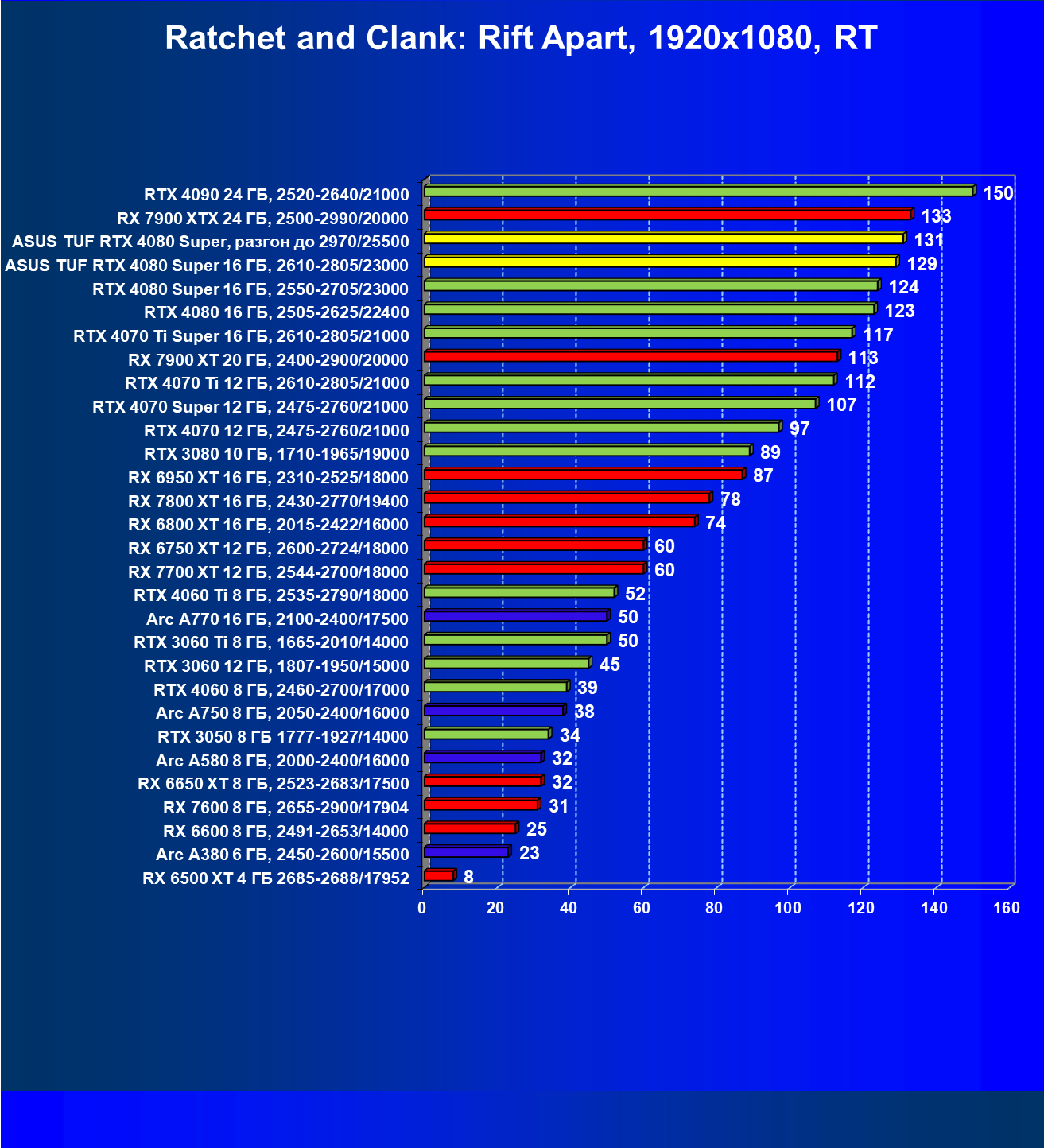 | 26 | Asus TUF RTX 4080 Super, разгон до 2970/25500 | 131 | 1771 | 135000 |