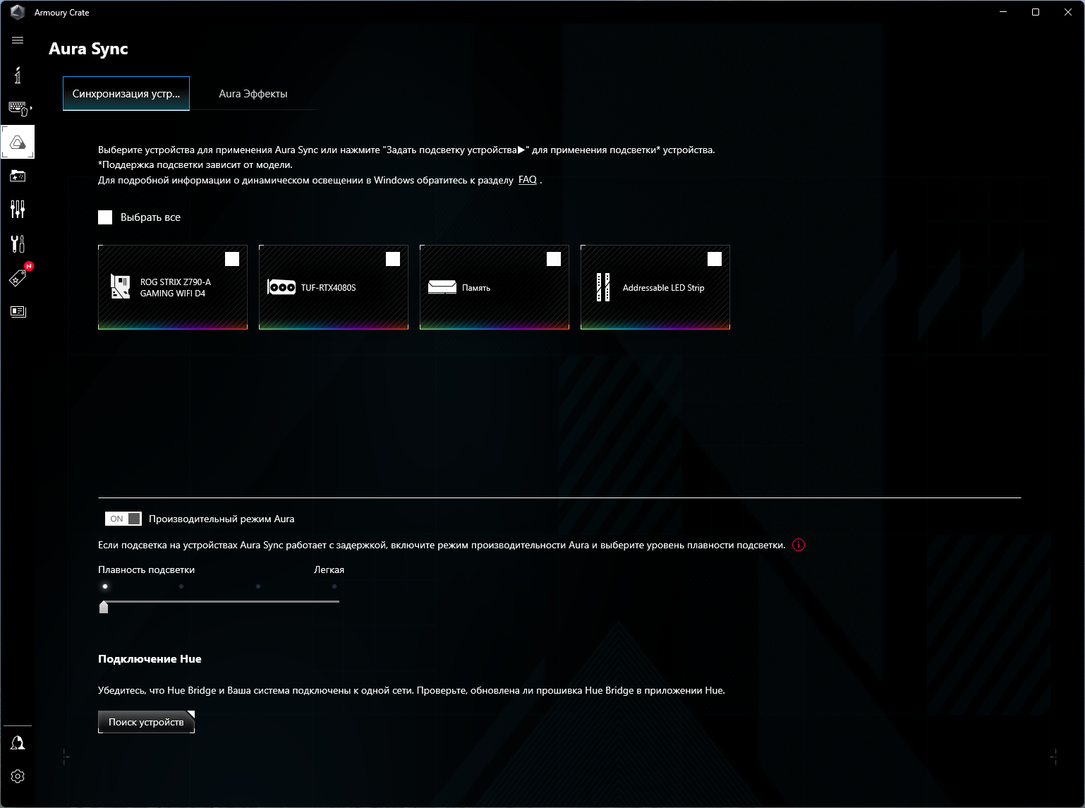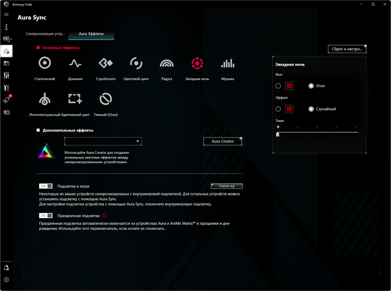 Управление подсветкой традиционно выполнено с помощью фирменной программы Asus — Armoury Crate