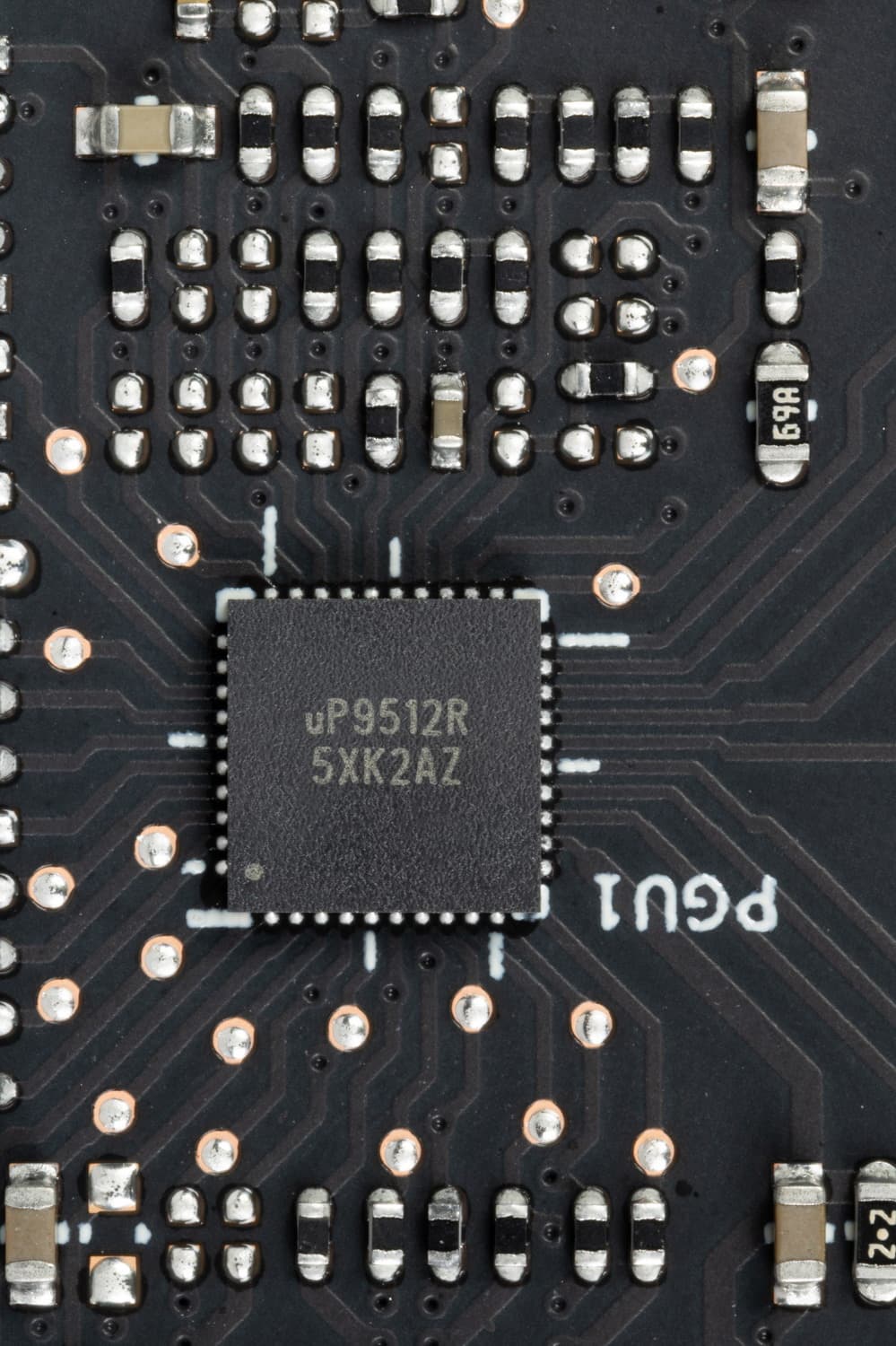12 фазами питания ядра управляет ШИМ-контроллер uP9512R (uPI Semiconductor). Он рассчитан максимум на 12 фаз.