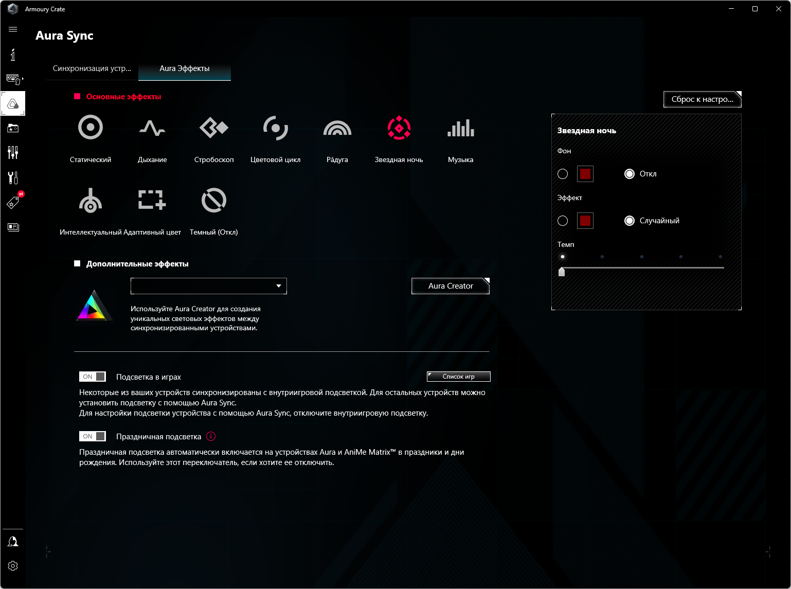 Управление подсветкой традиционно у Asus возложено на контроллер Aura.