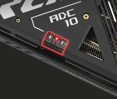 Карта Asus способна потреблять до 307 Вт (разовые всплески могут быть выше). Система охлаждения мощная, эффективная и достаточно тихая. Габариты видеокарты составляют 35 см в длину и 15 см в высоту, а по толщине она занимает 4 слота в корпусе. Набор видеовыходов — 3 DP и 2 HDMI.