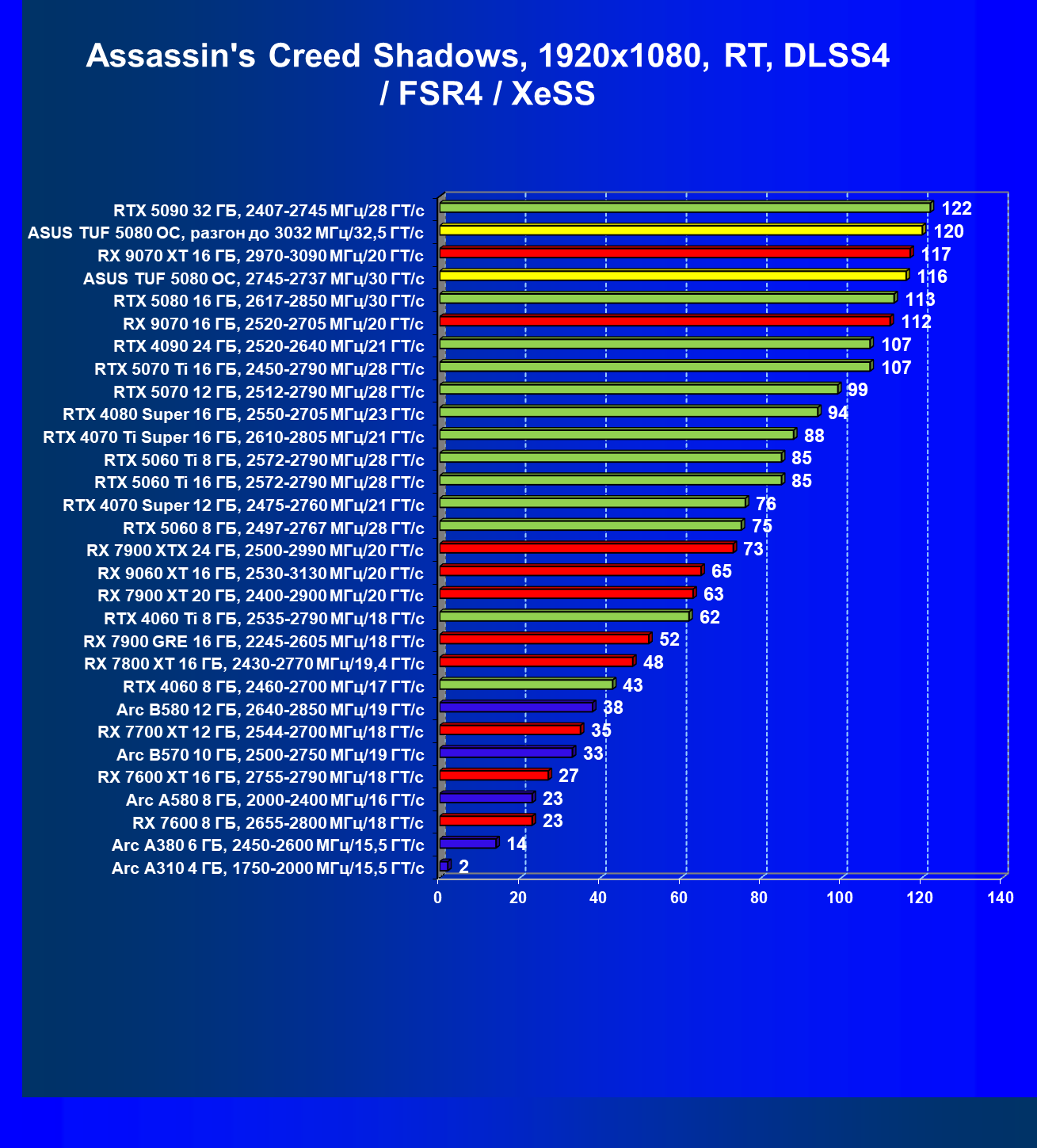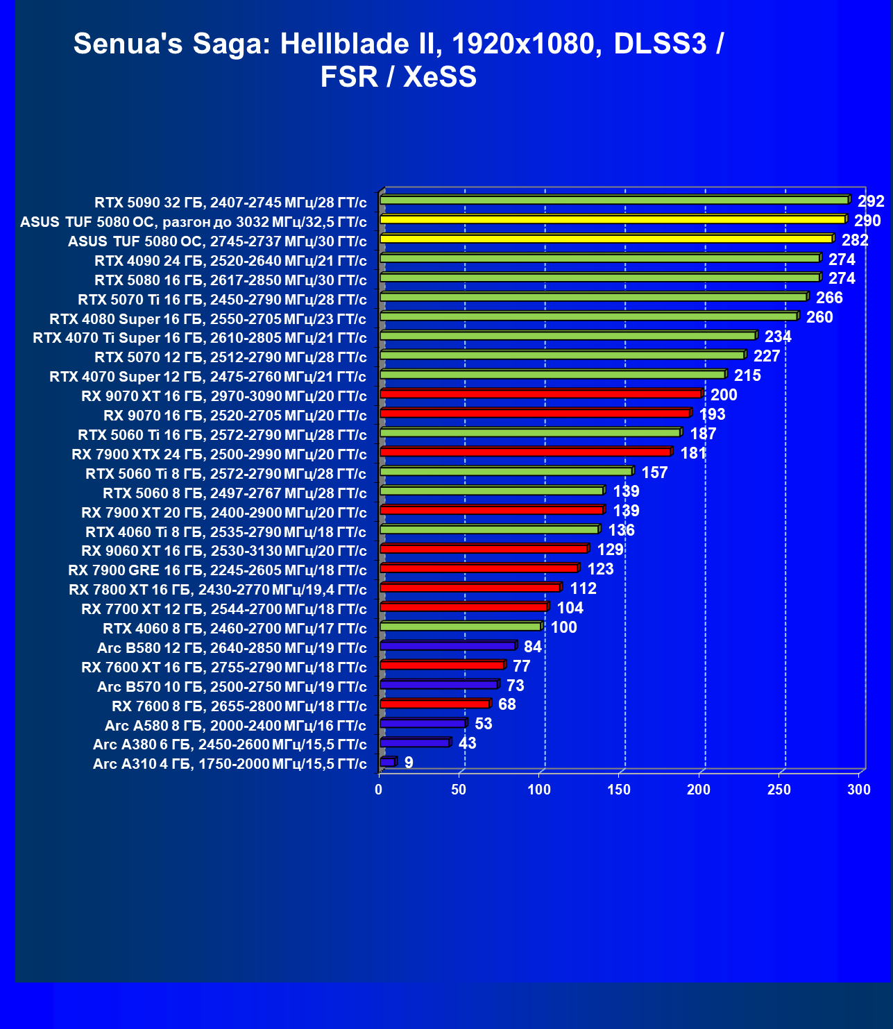 | 02 | RX 9070 XT 16 ГБ, 2970—3090 МГц/20 ГТ/с | 709 | 5247 | 74 000 |
