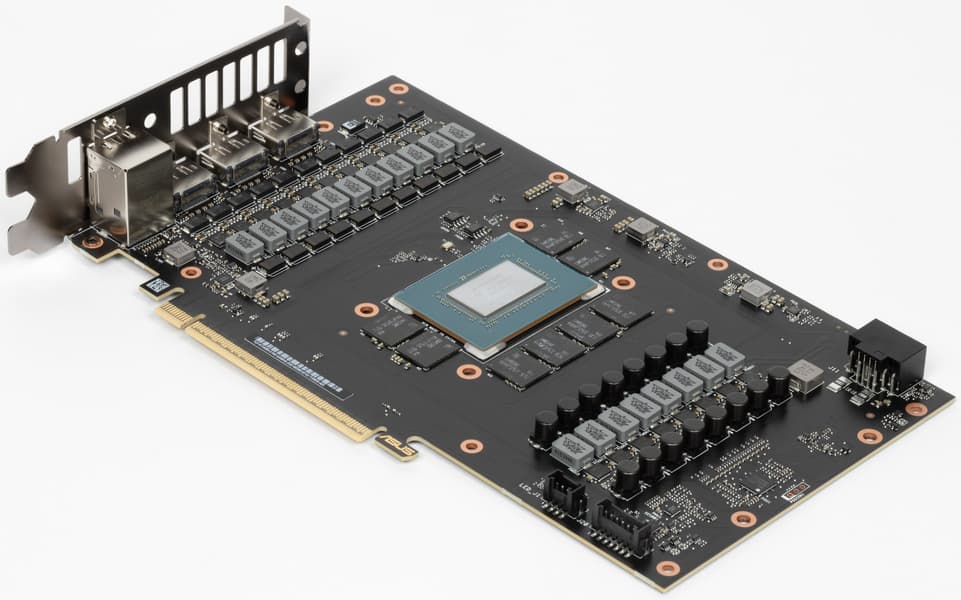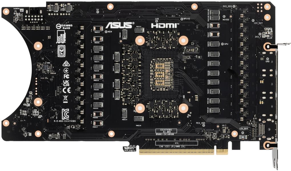 Питание на карту Asus подается через 16-контактный разъем питания стандарта PCIe 5.0.