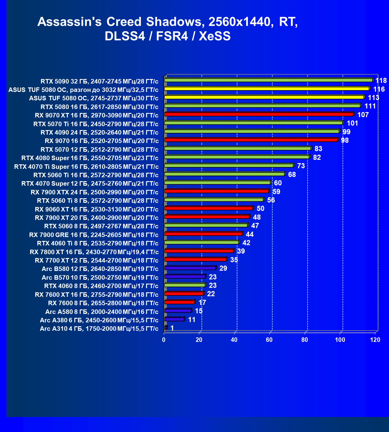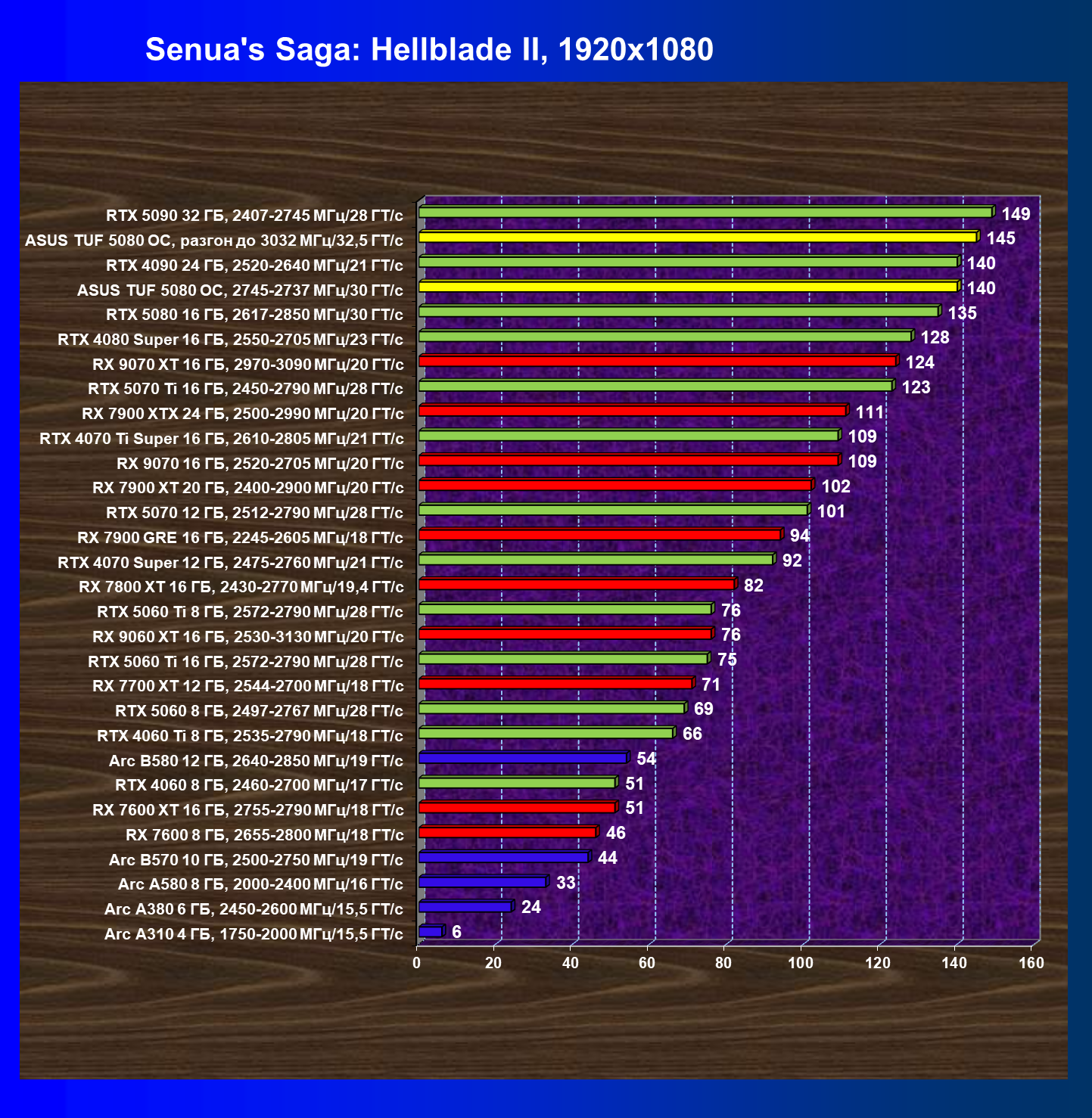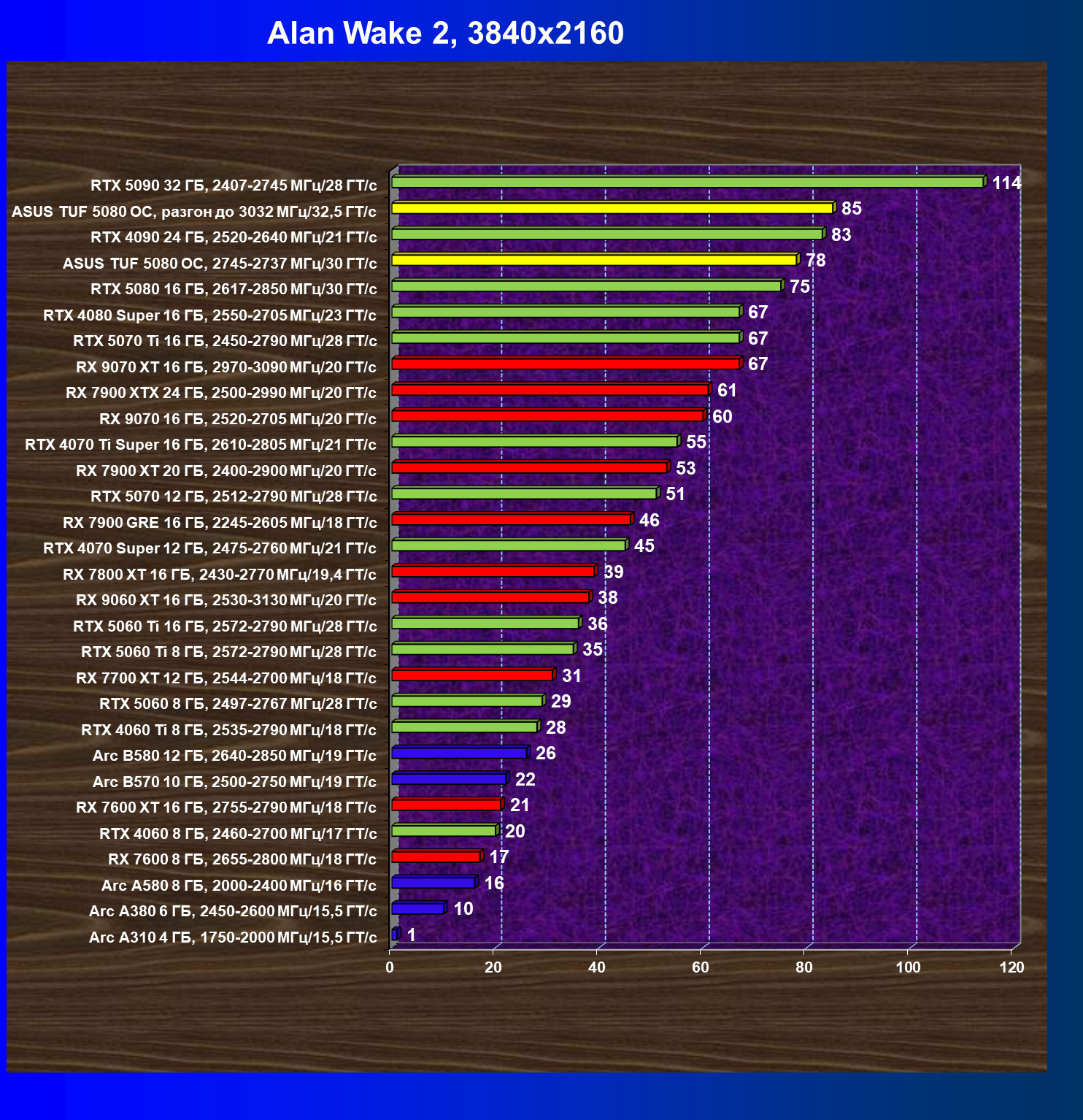 | 04 | RTX 5080 16 ГБ, 2617—2850 МГц/30 ГТ/с | 13092 | 1138 | 115 000 |