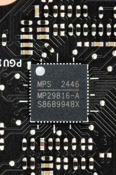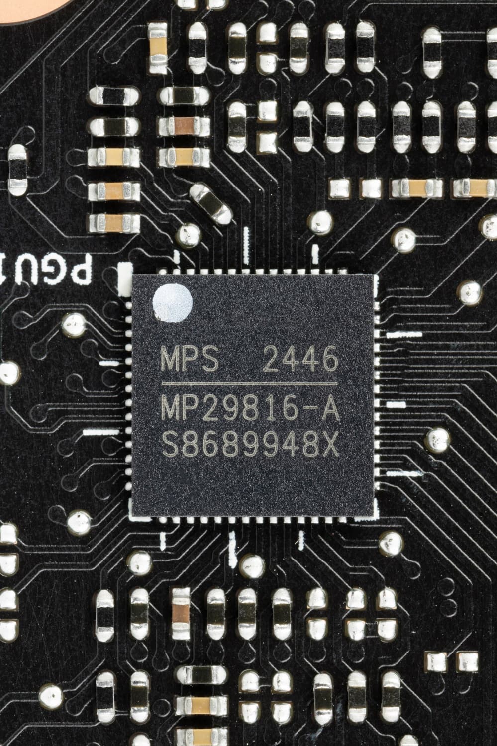 16 фазами питания ядра управляет ШИМ-контроллер MP29816 (Monolithic Power Systems).