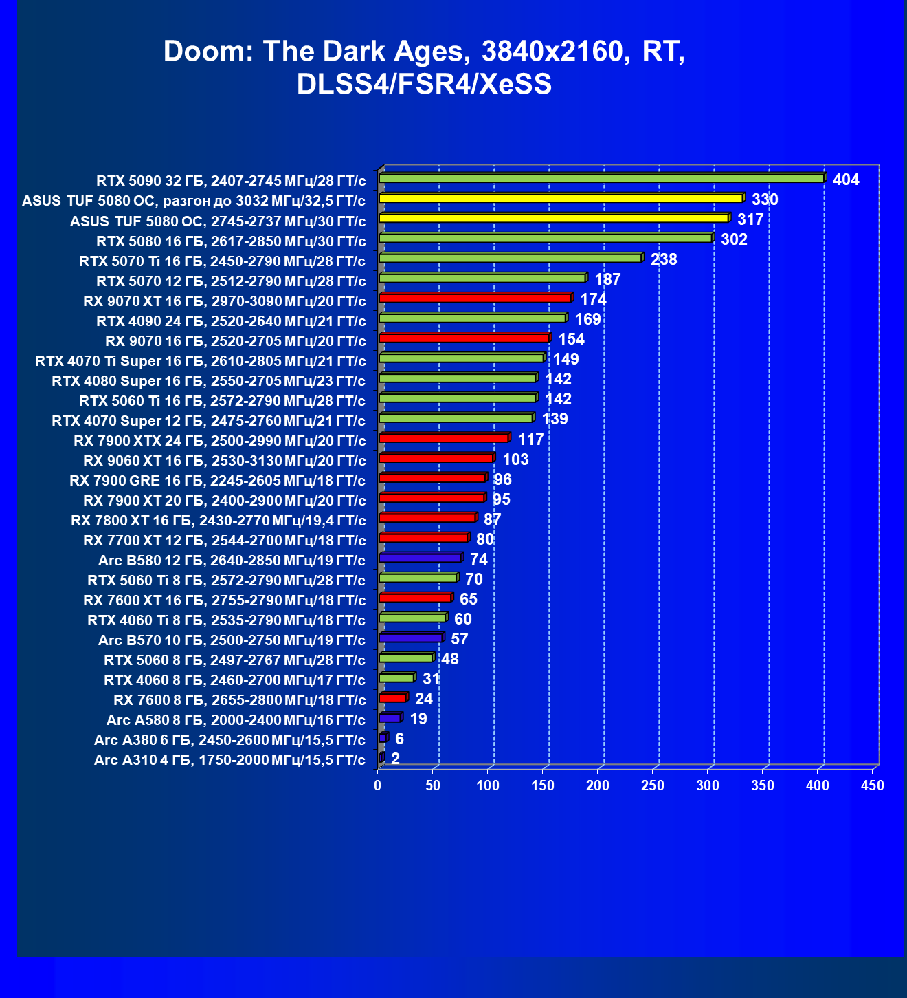 | 25 | RX 7900 XTX 24 ГБ, 2500—2990 МГц/20 ГТ/с | 395 | 4976 | 126 000 |
