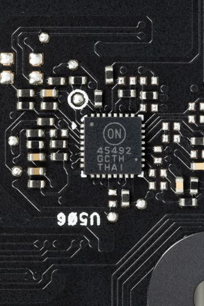 На оборотной стороны PCB имеется контроллер для мониторинга (отслеживания напряжений и температур) On Semi.