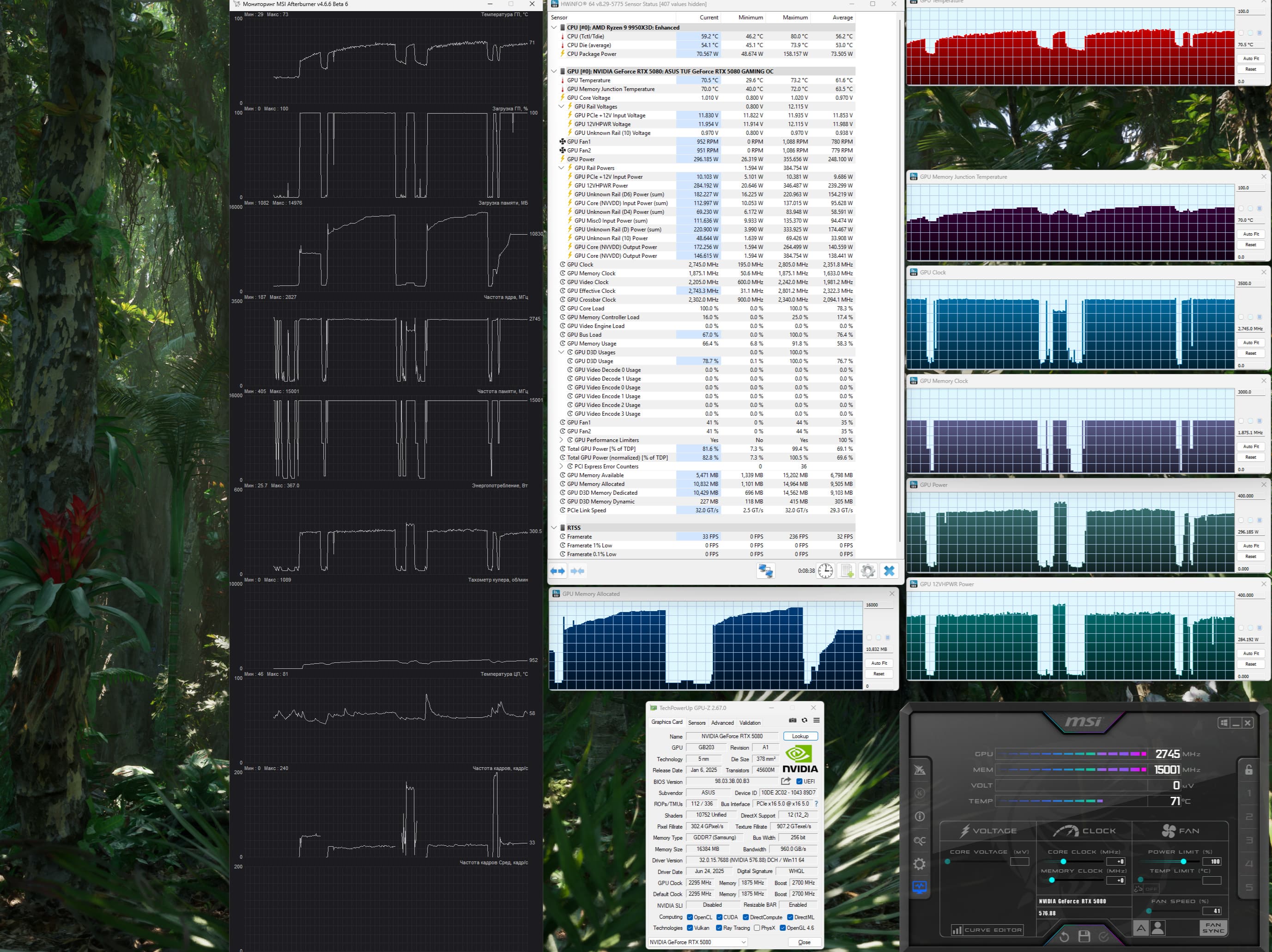| 02 | Asus TUF 5080 OC, разгон до 3210 МГц/33,7 ГТ/с | 6380 | 510 | 125 000 |