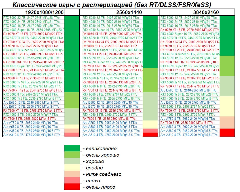 Безусловно, ценник у Radeon RX 9070 XT выглядит привлекательнее, но вот вопрос: большинство продвинутых пользователей, отдавших огромные деньги за такую видеокарту для игр, при наличии поддержки RT и/или технологий динамического масштабирования в игре будут ли игнорировать эти технологии? — Вряд ли. Так что в данном случае обращать внимание на этот рейтинг, наверное, не имеет смысла.