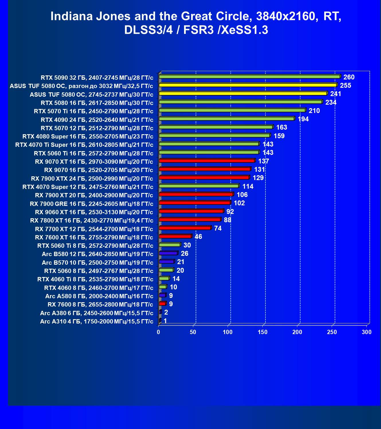 | 04 | RTX 5080 16 ГБ, 2617—2850 МГц/30 ГТ/с | 1138 | 13092 | 115 000 |