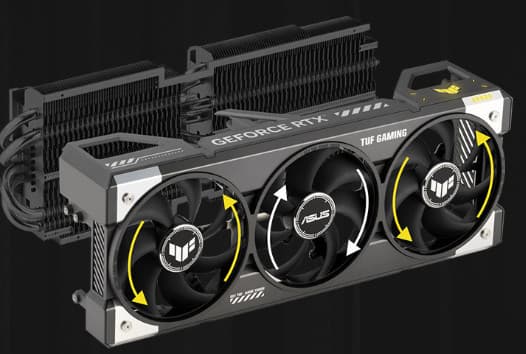 Средний вентилятор вращается в противоположную сторону, образуя с крайними вентиляторами «эффект шестеренок», помогающий бороться с турбулентностью воздушных потоков.