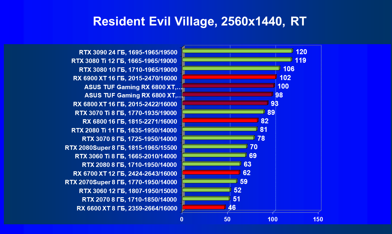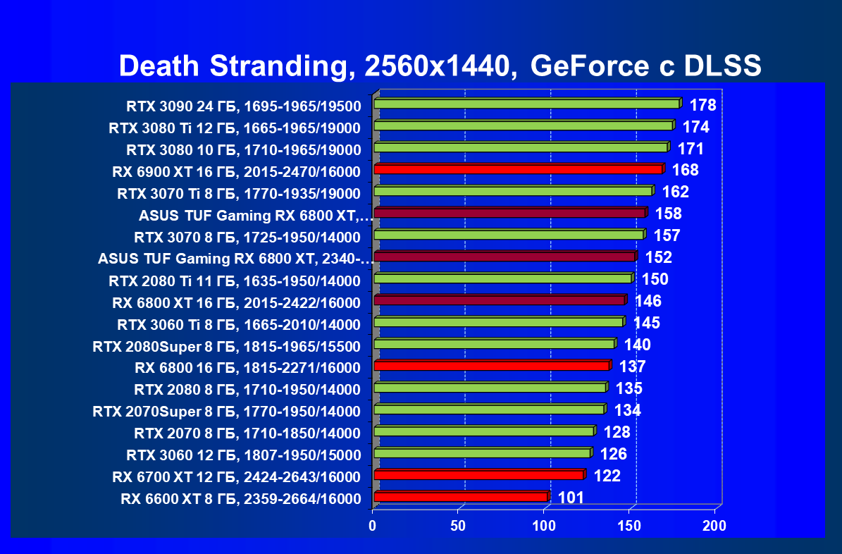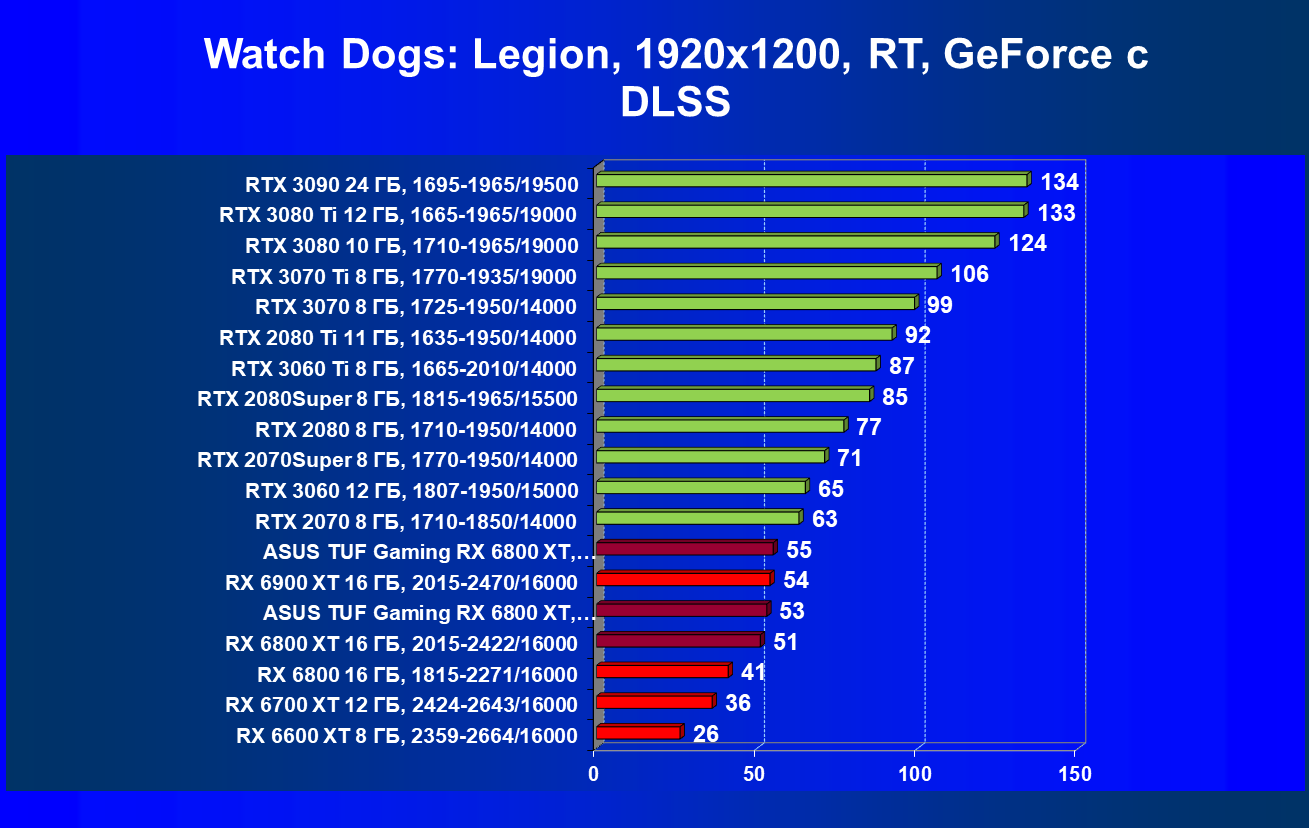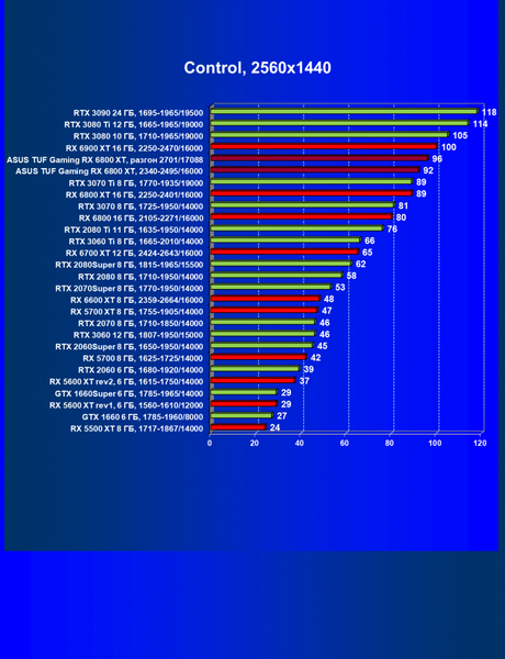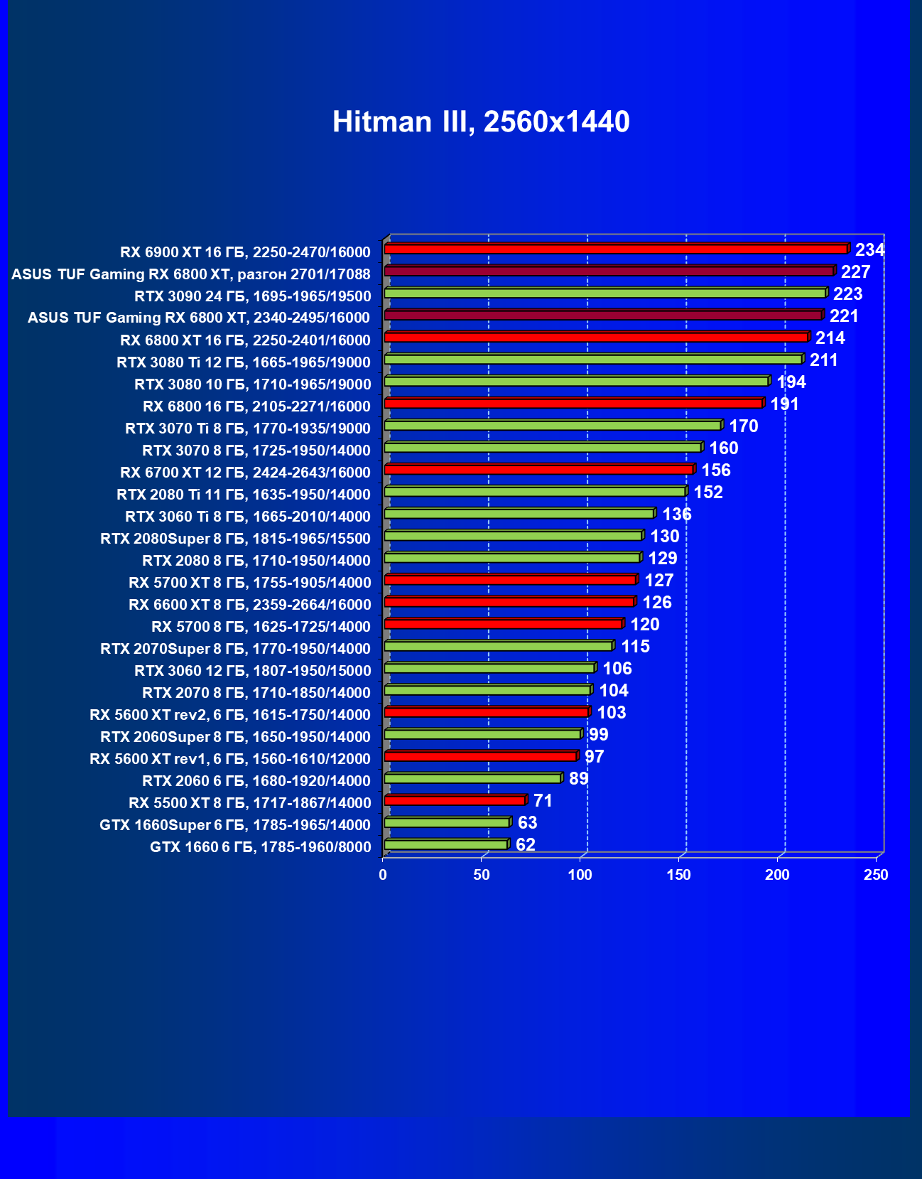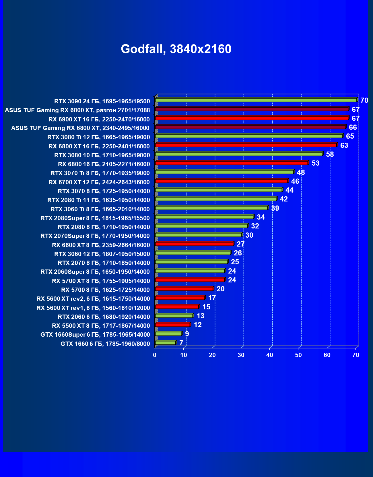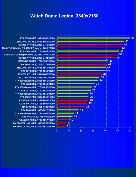 | 14 | Asus TUF Gaming RX 6800 XT, 2340—2495/16000 | 11 | 168 | 150 000 |