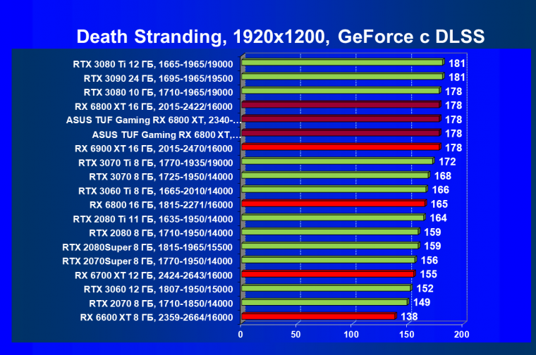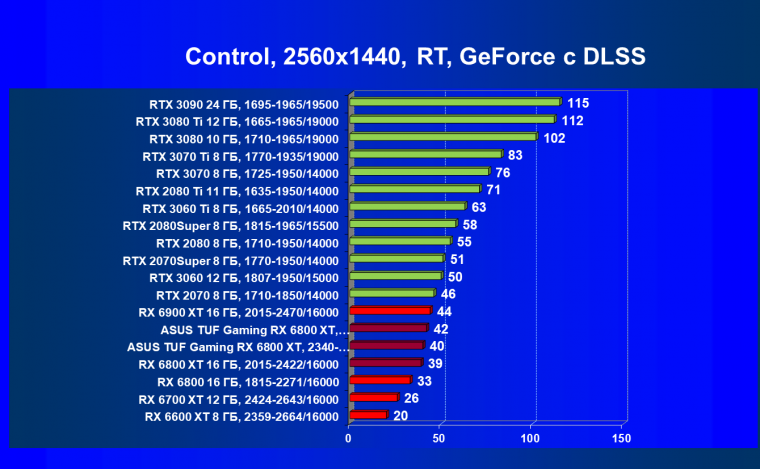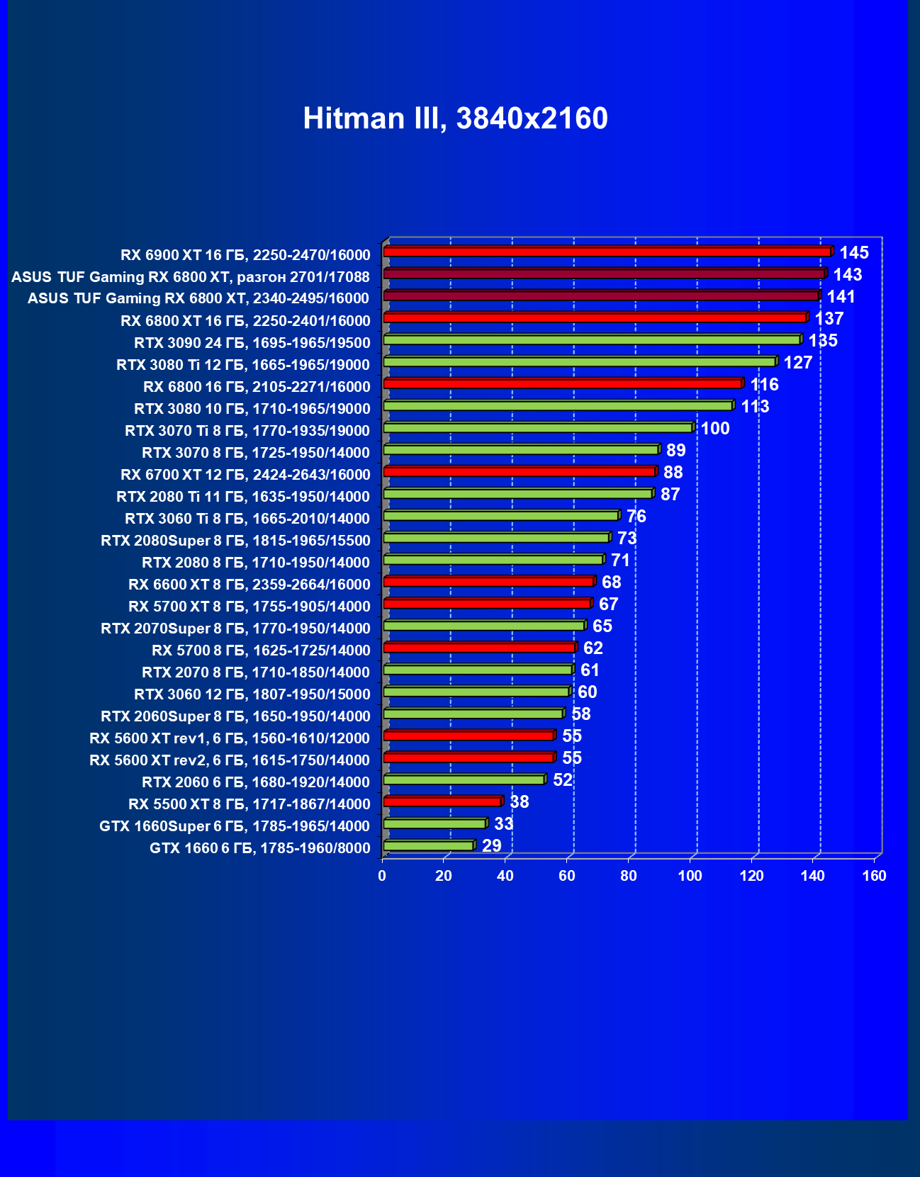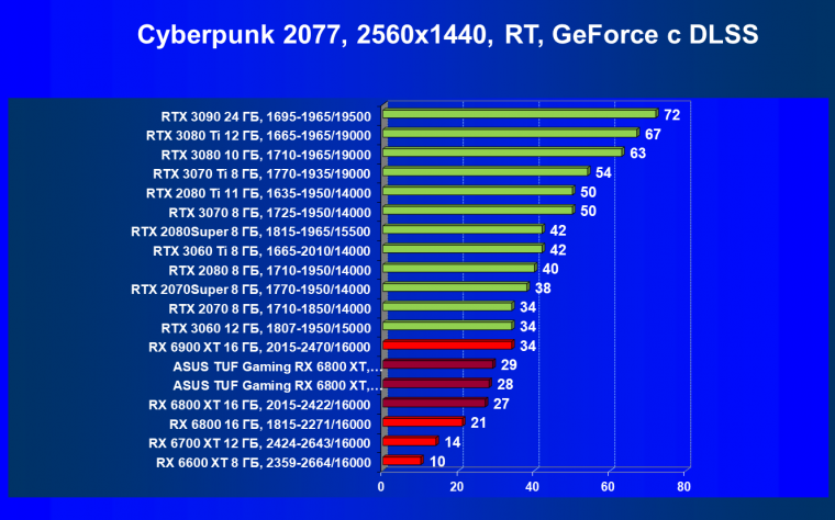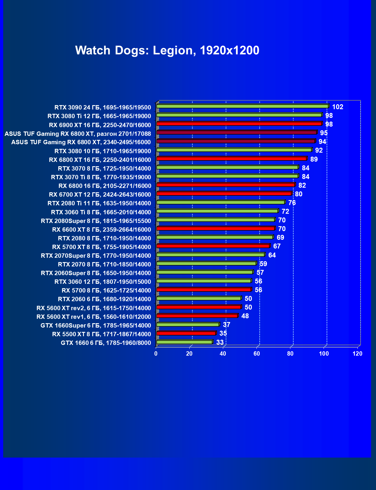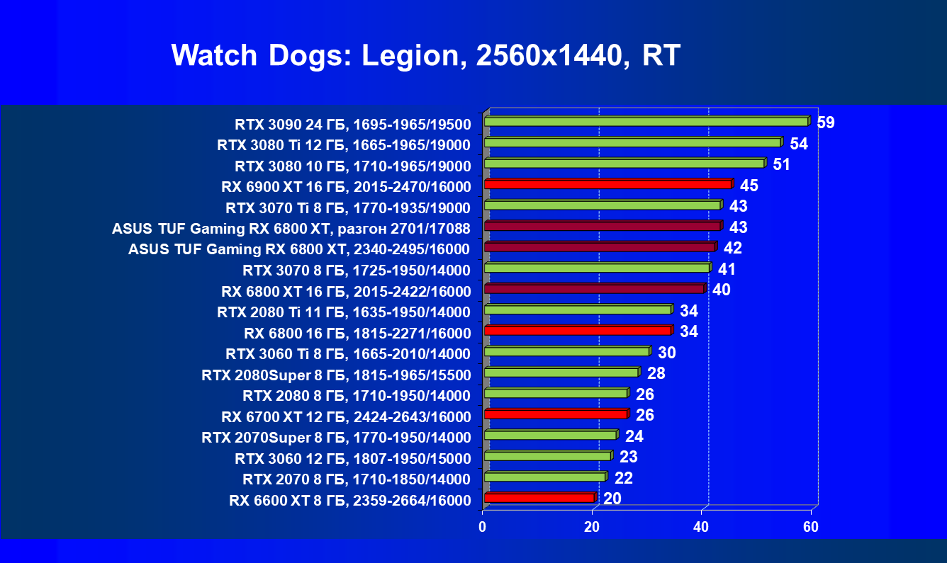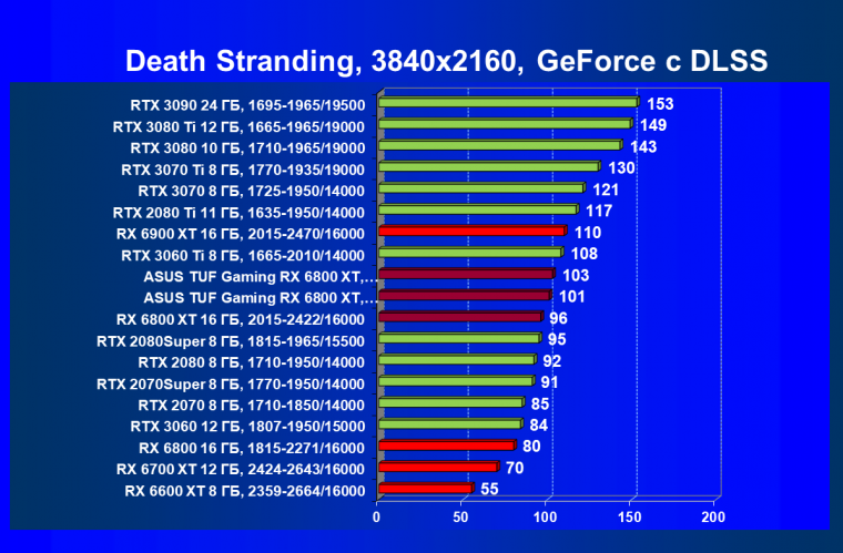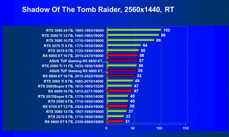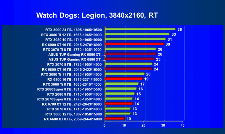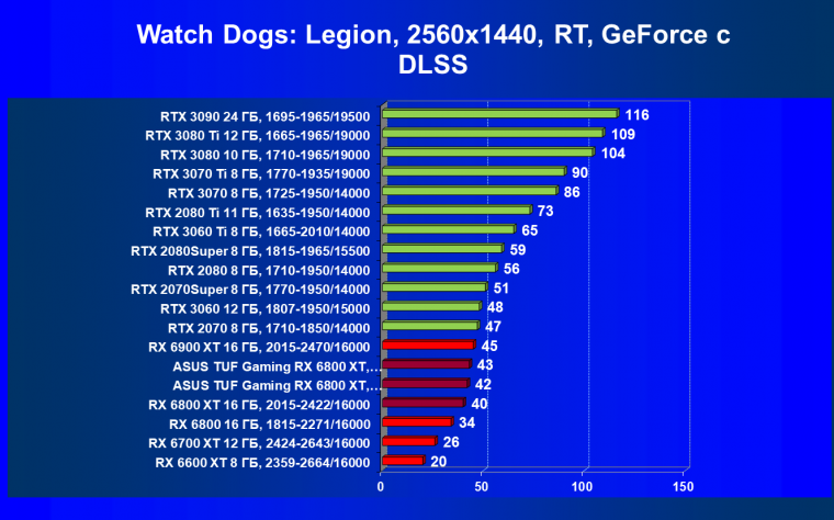 | 14 | Asus TUF Gaming RX 6800 XT, 2340—2495/16000 | 11 | 168 | 150 000 |