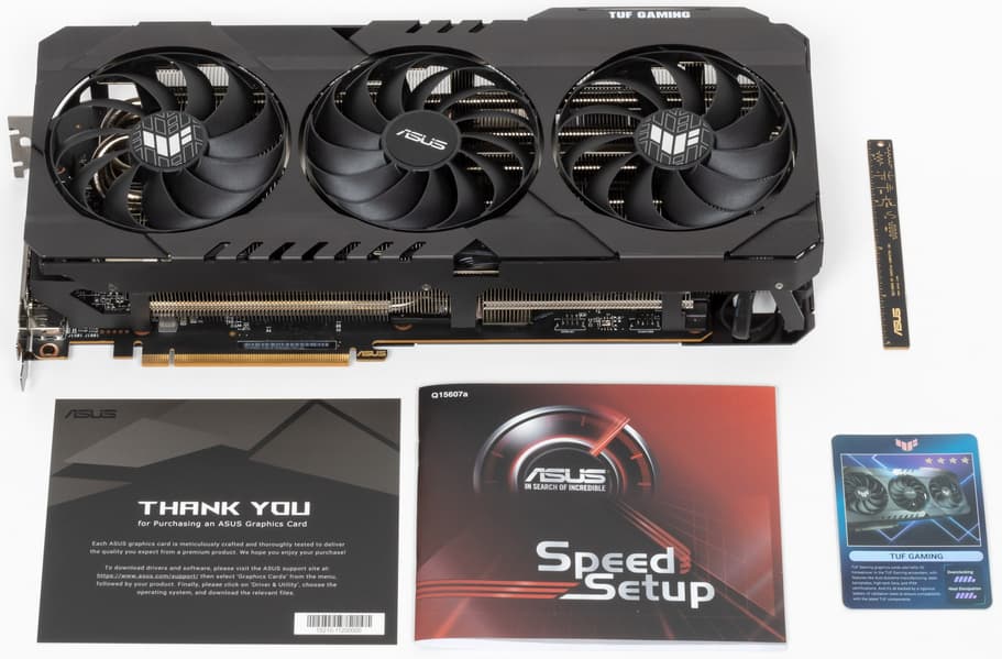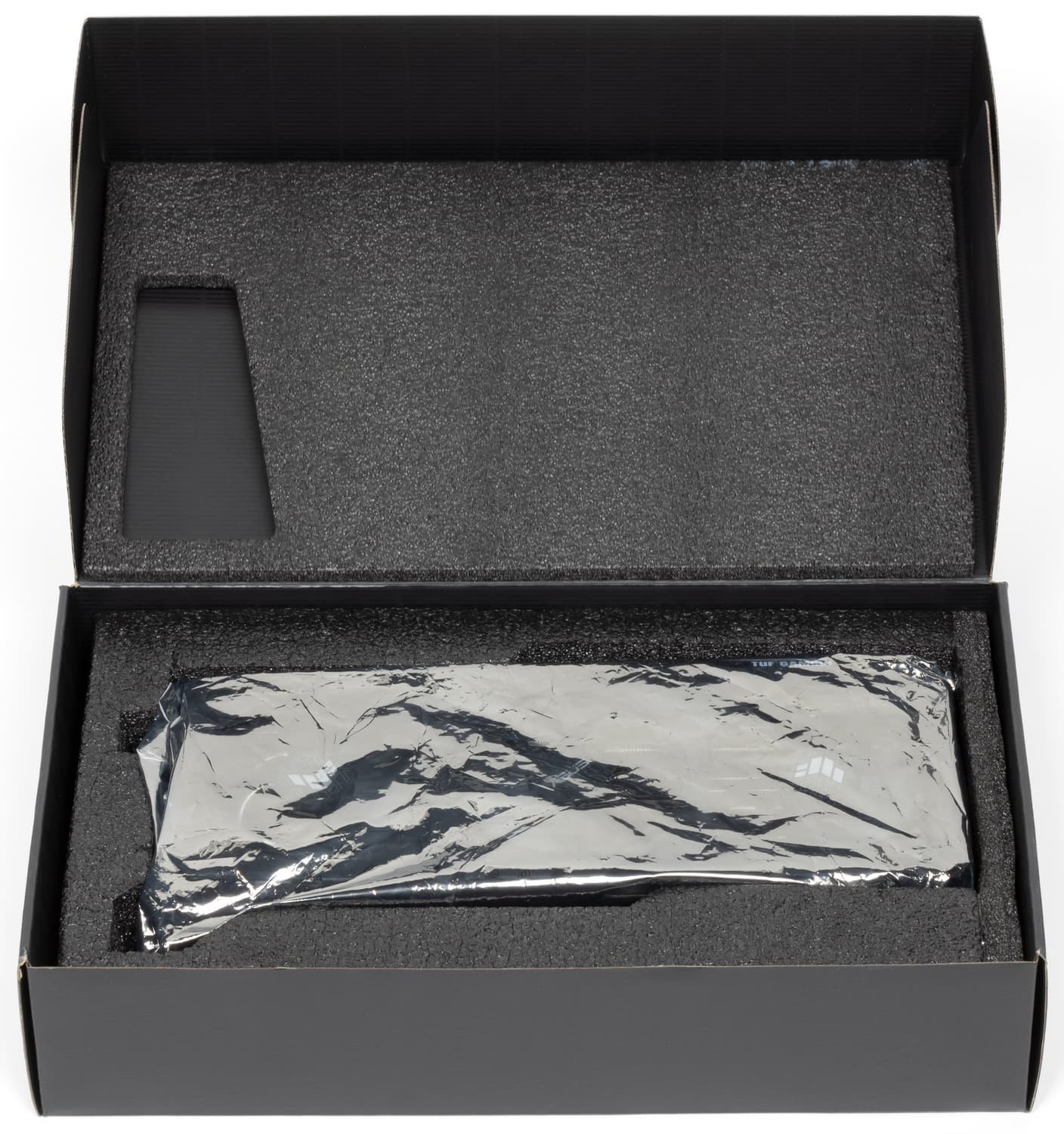 Комплект поставки, кроме традиционного руководства пользователя и карточки TUF Gaming, включает мелкий бонус в виде фирменной линейки.