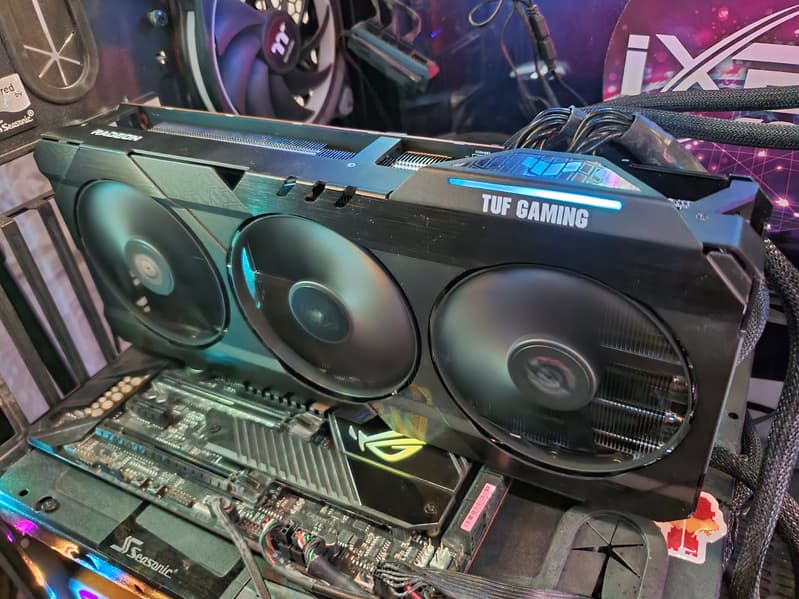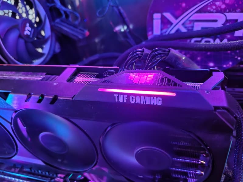 Подсветка у карты реализована на верхнем торце во вставке с логотипом TUF Gaming.