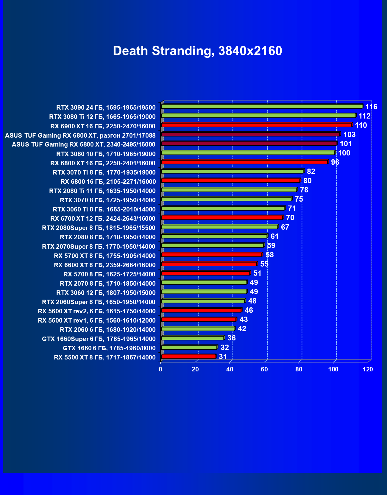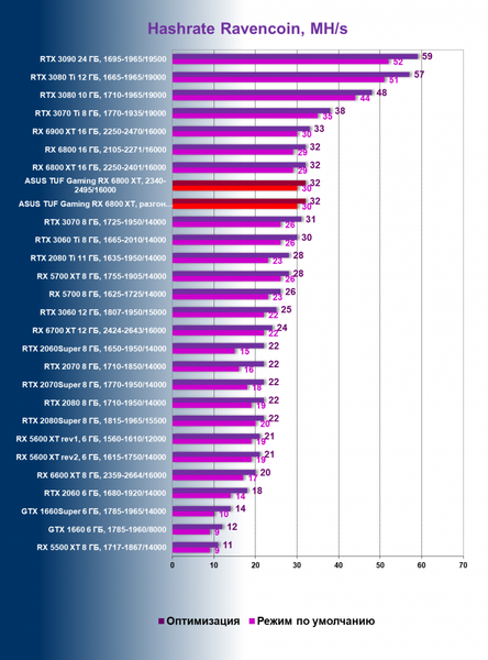 | 03 | Asus TUF Gaming RX 6800 XT, разгон до 2701/17088 | 420 | 28 | 150 000 |