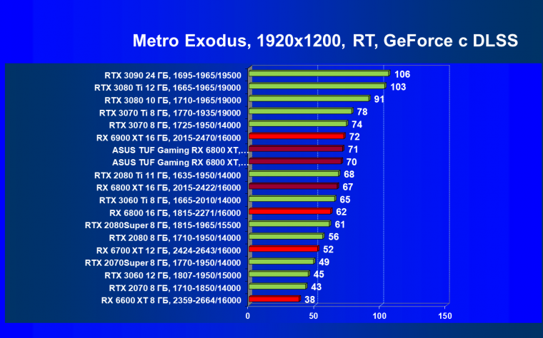 Что касается козыря в виде DLSS у GeForce RTX 30, который значительно повышает производительность, компенсируя падение скорости от включения RT, то мы знаем, что AMD выпустила его аналог — FidelityFX Super Resolution. В ближайшее время мы начнем вводить в список тестов игры с поддержкой FSR.