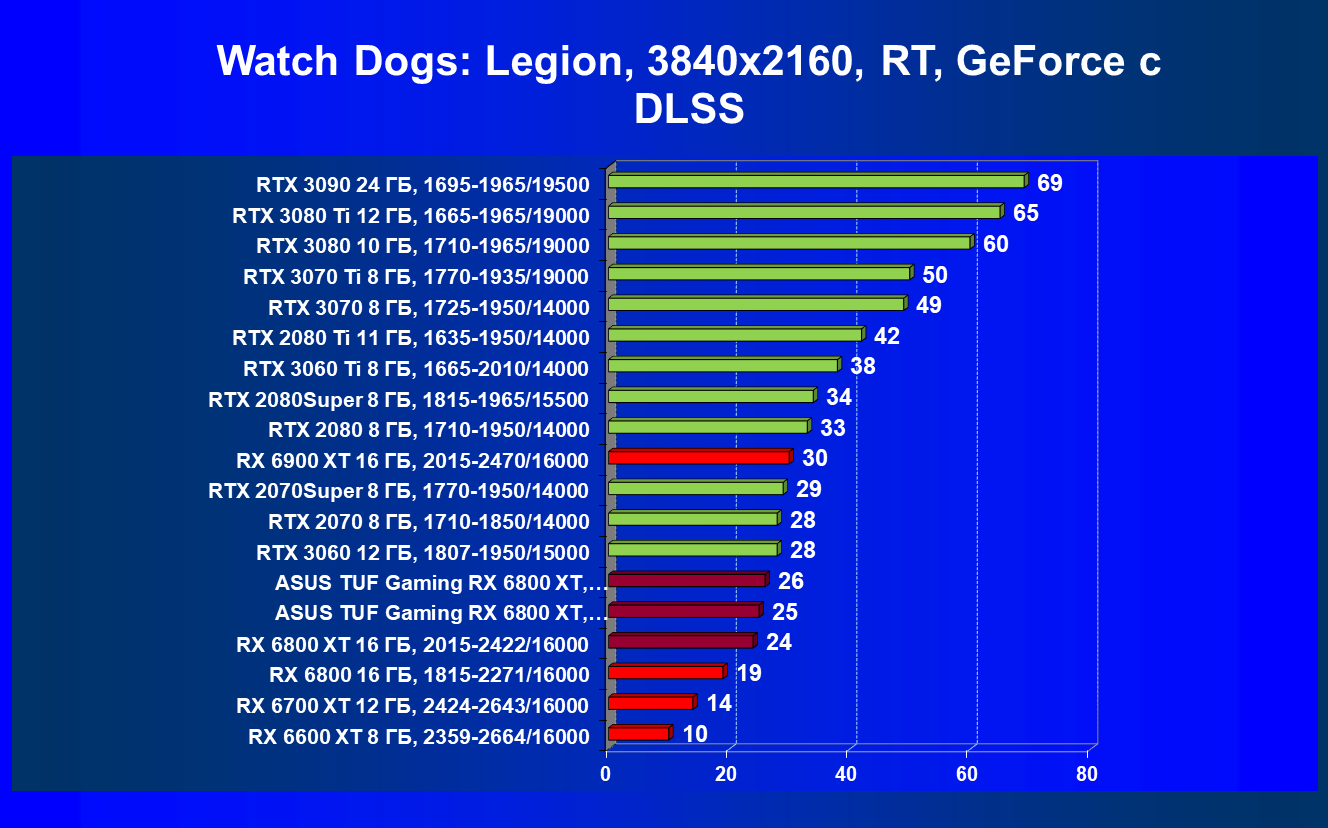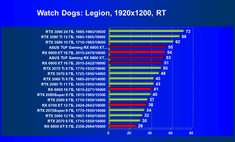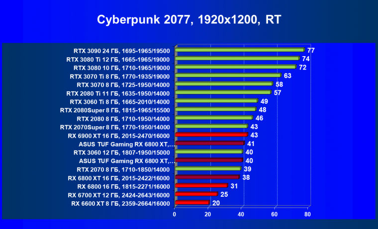 | 12 | RX 6900 XT 16 ГБ, 2015—2470/16000 | 12 | 188 | 160 000 |